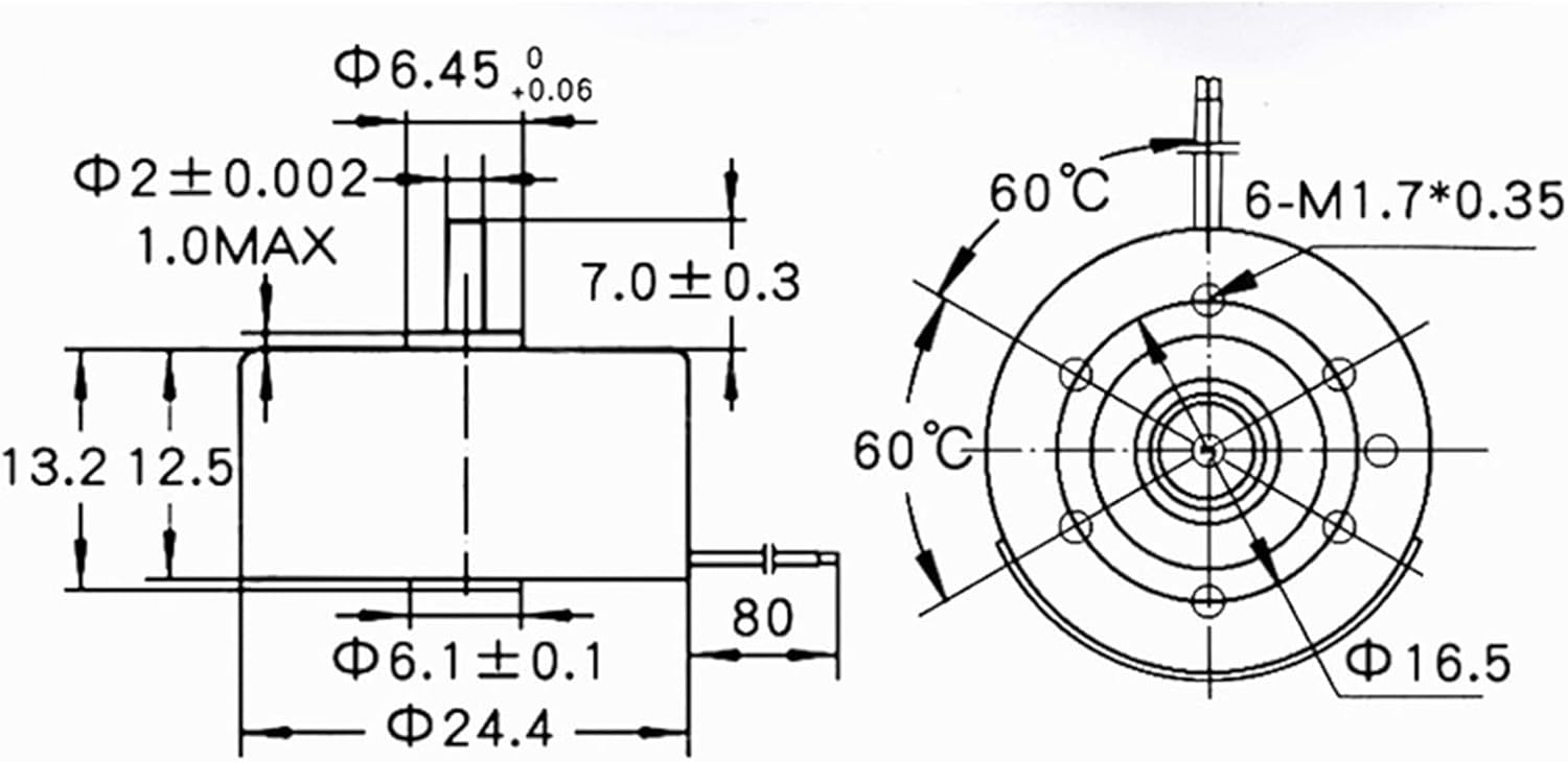 Rated power: 0.06W; Rated voltage: 3V; Rated current: 0.05A; Rated speed: 2800rpm. Voltage: 1.5-6V; 3V3500 rpm; 6V7000 rpm. Widely applicable: Widely used in toys, DVD players, game controllers, CD players, etc Dimensions: 23.5*12.5MM. Miniature DC motor is small in size and light in weight.