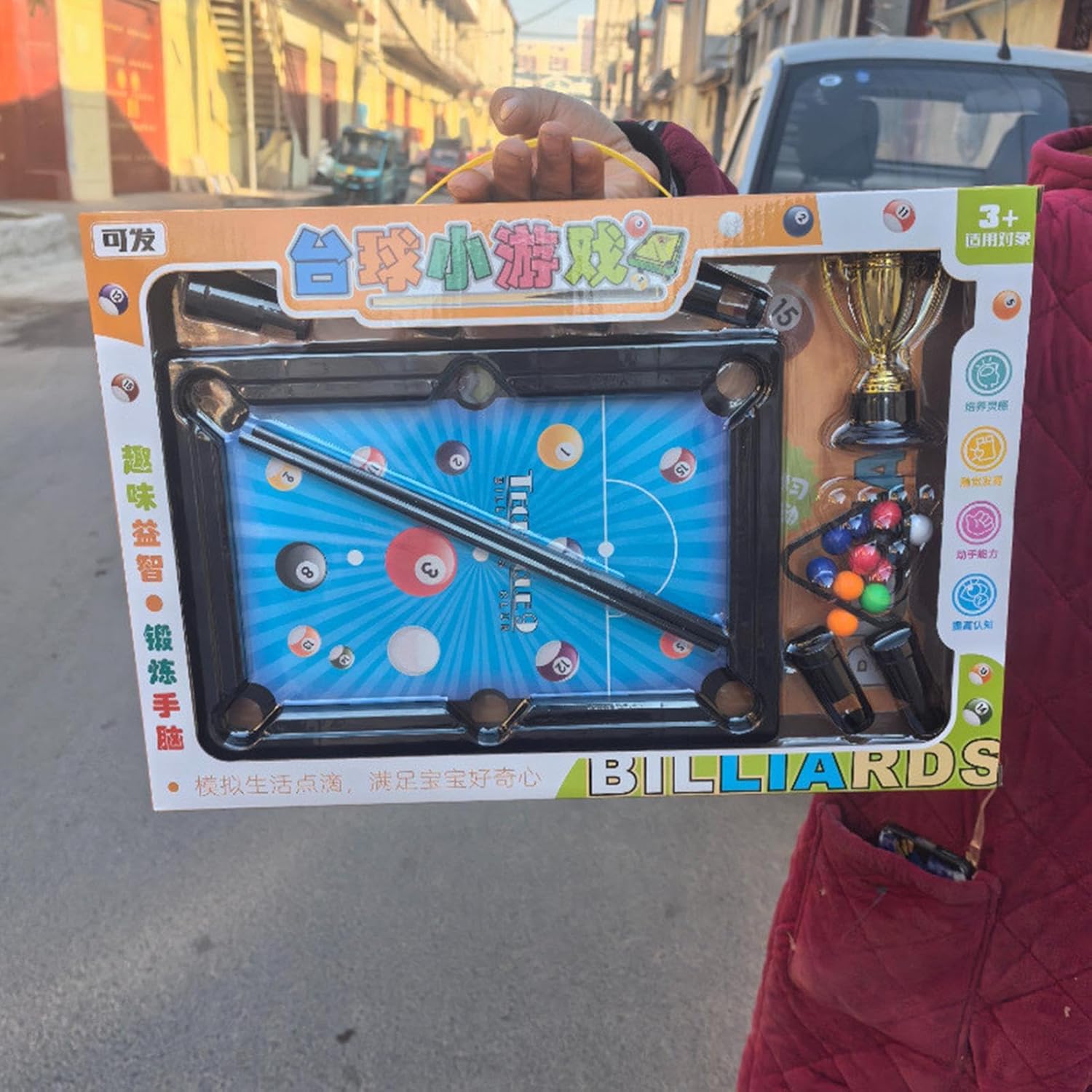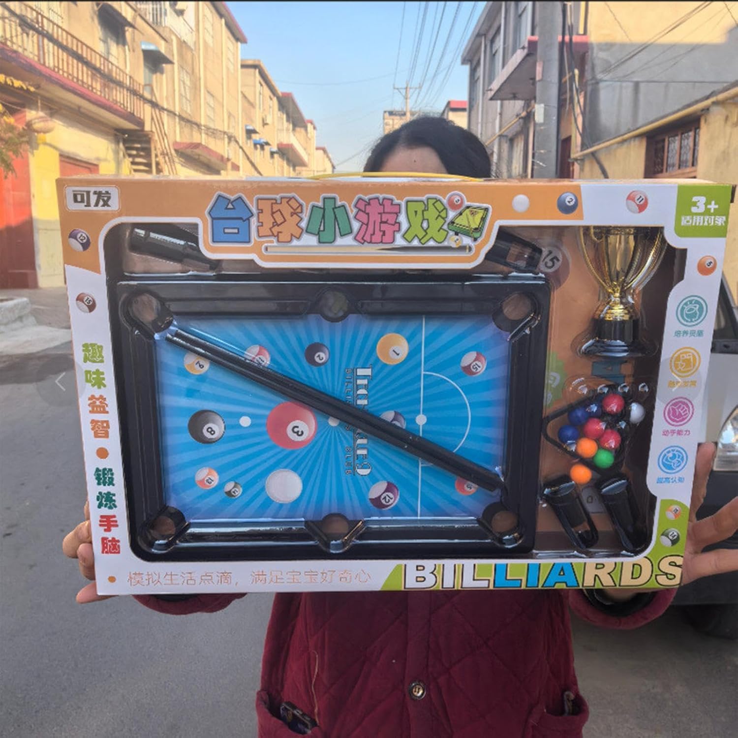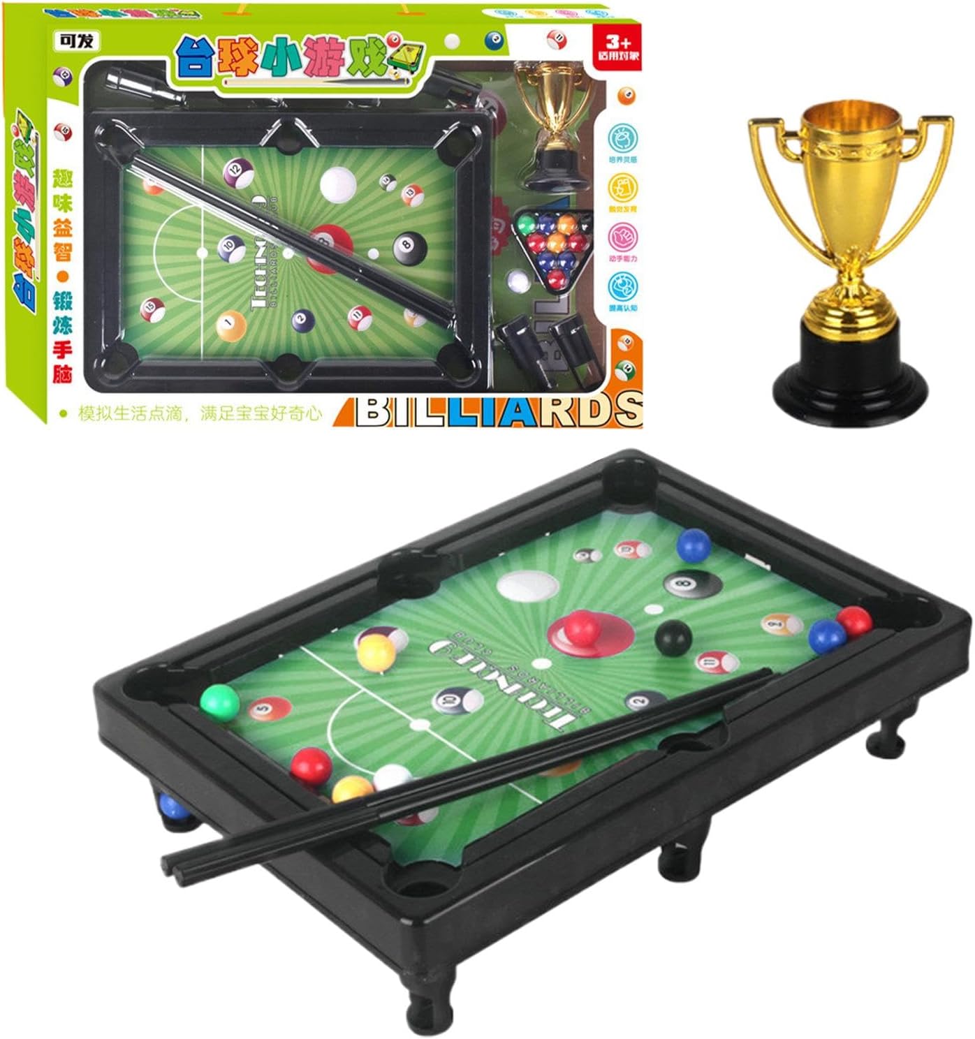 Compact and Portable Design: The Tabletop Pool Table is a version of the classic billiards game, offering a space saving solution for indoor fun, making it perfect for kids, family gatherings, and parties Complete Billiard Set Included: This miniature pool table comes with everything needed to , including balls, cues, chalk, and a rack, providing a complete billiards experience in a compact format Strong and Safe Materials: Constructed with materials, the pool table is designed for durability and safety, ensuring long lasting without compromising quality or performance Educational and Interactive: Ideal for kids, boys, and girls, this pool table helps develop hand eye coordination, fine motor skills, and strategic thinking, making it a fun and educational game for young players Best for Any Setting: Whether used at home, in the office, or at a , this billiard set an entertaining and interactive game experience that fits easily any tabletop or desk, providing hours of entertainment for all ages