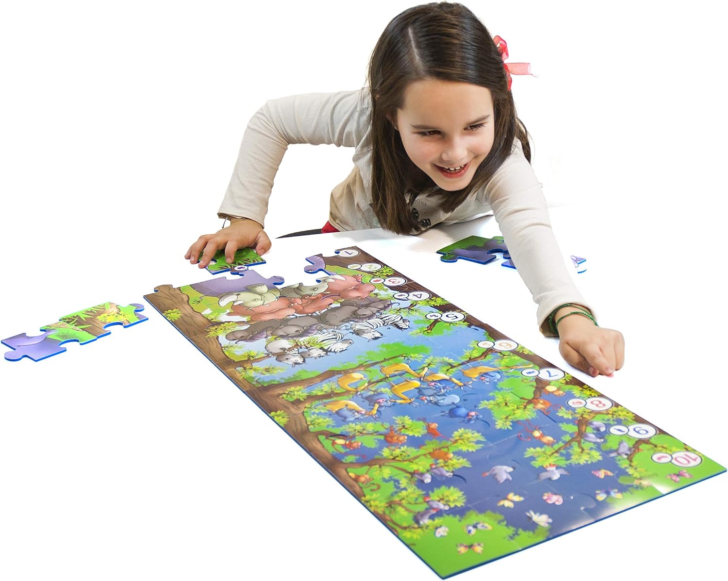 Divertente puzzle da 40 pezzi con animali per lavorare numeri e quantità. Le sue grandi dimensioni (1 m) lo rendono ideale per lavorare a terra e in modo collaborativo. Puzzle di alta qualità, realizzati in Spagna con plastica infrangibile, lavabile e molto resistente. Consigliato per bambini dai 3 ai 6 anni. Adatto per l'uso in classe. Include un opuscolo con attività per espandere l'esperienza di gioco relative agli animle raffigurati nel puzzle (quantità e numeri).