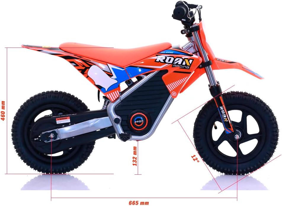 *L'uso del Minimoto elettrico Roan Warrior è consentito su terreni privati e aree private. Per la circolazione pubblica consultare le normative vigenti della vostra località in materia di mobilità.
