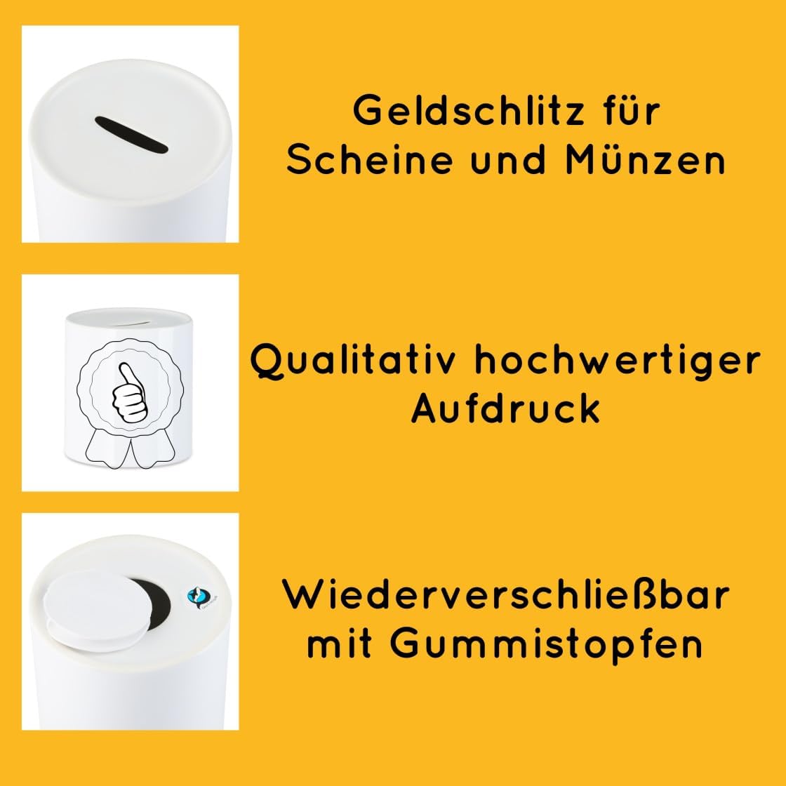 Salvadanaio personalizzato per bambini - con il nome desiderato. Salvadanaio per ragazzi e ragazze con simpatica stampa di animali di alta qualità. Salvadanaio rotondo - Materiale: Ceramica - Dimensioni: 8 x 9,5 cm - Personalizzabile individualmente. Idea regalo per ogni occasione: ad es. nascita - battesimo - compleanno - Natale. Clicca su "Personalizza ora" e inserisci il nome desiderato nell'area di personalizzazione - Il tuo nome - 1000 possibilità.