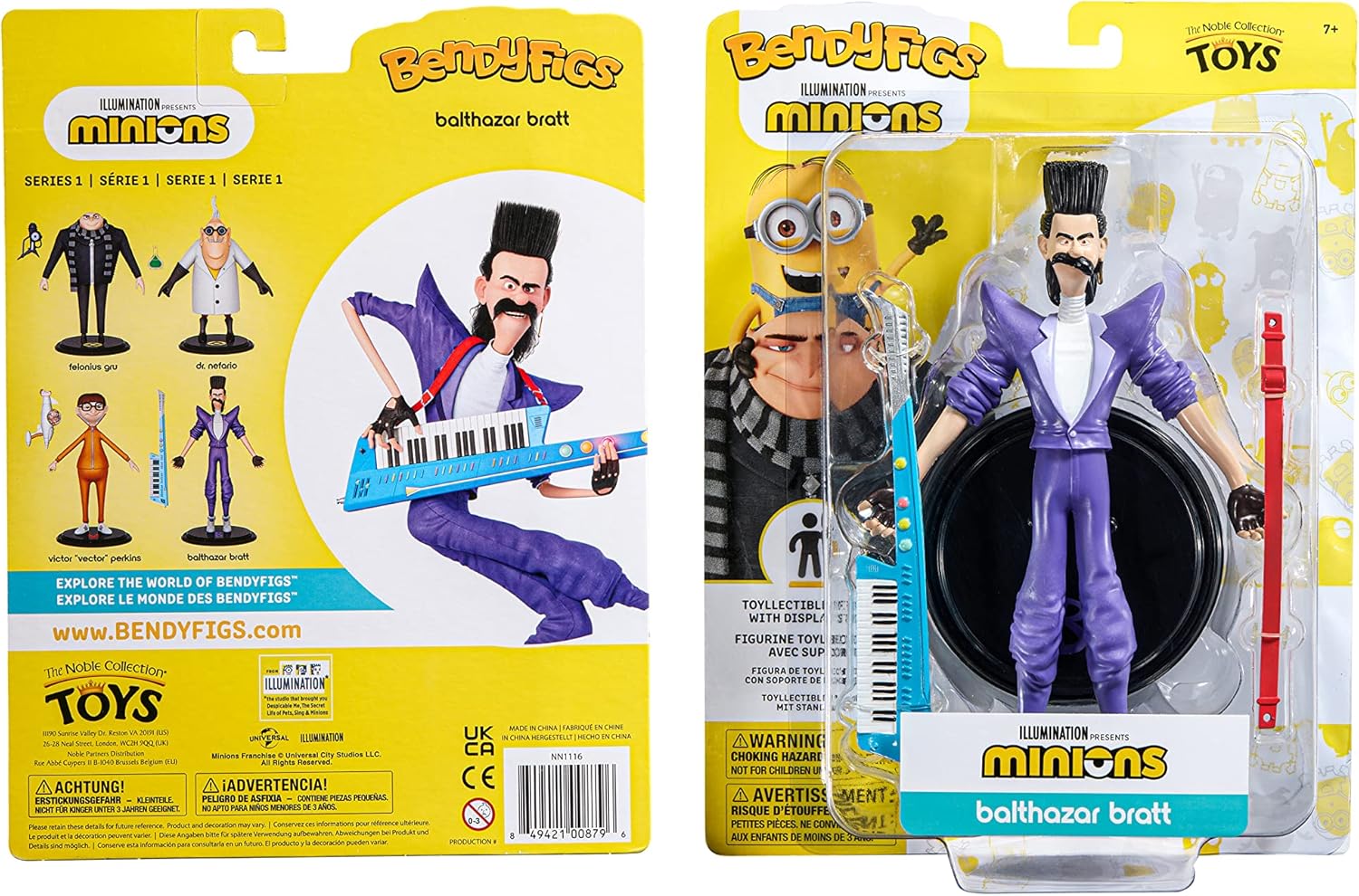 BendyFigs sono figure da collezione finemente realizzate da The Noble Collection Autentica, intricata figura di Balthazar Bratt del franchise di Minions preferito dai fan Piegabile e pieghevole, la figura misura circa 18,4 cm di altezza Include accessorio per chiavi e supporto Per età: 7+