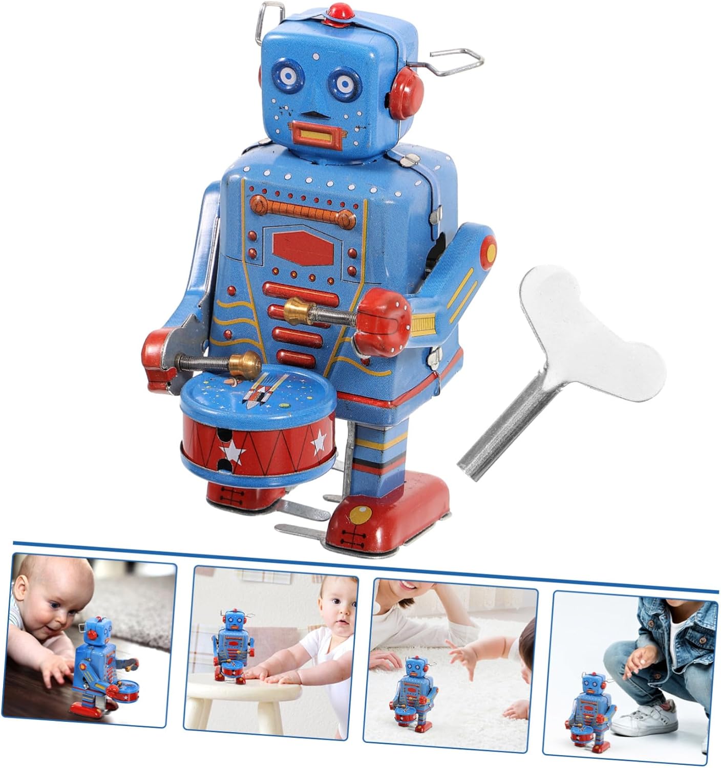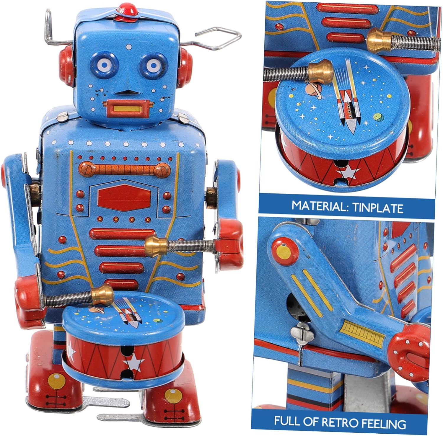 Nota: i giocattoli appartengono , giocattoli, fatti a mano, potrebbero avere graffi, robot riciclati a carica, giocattoli A carica da collezione: può anche essere un buon per la casa, l'ufficio, bar, a carica in metallo Giocattoli a carica vintage, realizzati con materiale da utilizzare, robot antico Robot in metallo vintage: usa mani per avvitare meccanismo laterale partirà, robot Robot a carica vintage: perfetto per una persona speciale o una collezione per adulti!, robot a orologeria
