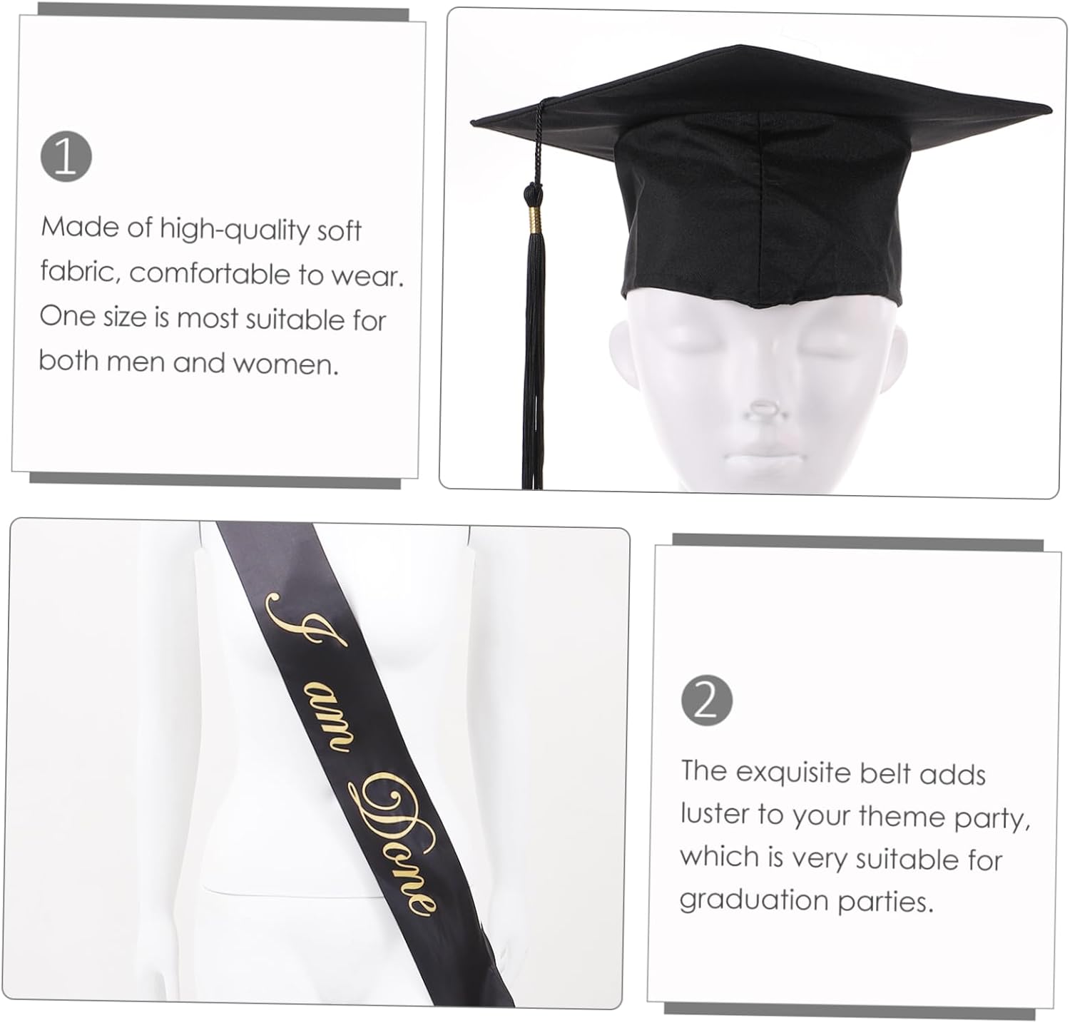 Il pacchetto include 1 x berretto da laurea 1 x fascia da laurea Caratteristiche - Dimensioni: circa 24,00X24,00X10,00 cm/9,43X9,43X3,93 pollici Cinture per galateo della laurea. - : Nero Forniture per la laurea. - Materiale: articoli per feste in stoffa. - Cintura per galateo della laurea realizzata con , comoda, morbida e resistente. - Fascia per la laurea dal design unico e colorato, per far risaltare la tua cerimonia di laurea. - tratta di un set di accessori di abbigliamento indispensabili per la cerimonia di laurea: il cappello da laureato. - Vale la pena avere non solo una decorazione, ma anche un bel : gli accessori per la festa di laurea. - Aggiungi un'atmosfera alla stagione delle lauree con la Fascia per la Laurea. Informazioni sulle merci Tracolla per laurea Adottiamo una qualità di fascia alta, che può durare a lungo. Cintura per galateo delle feste Sarebbe il tuo miglior aiuto. Cappello da laurea Se stai cercando nuovi oggetti di scena per feste a tema laurea con qualità affidabile e ragionevole, voglio consigliarti la nostra fascia. Forniture per laurea Nel frattempo, possiede un design dall'aspetto attraente