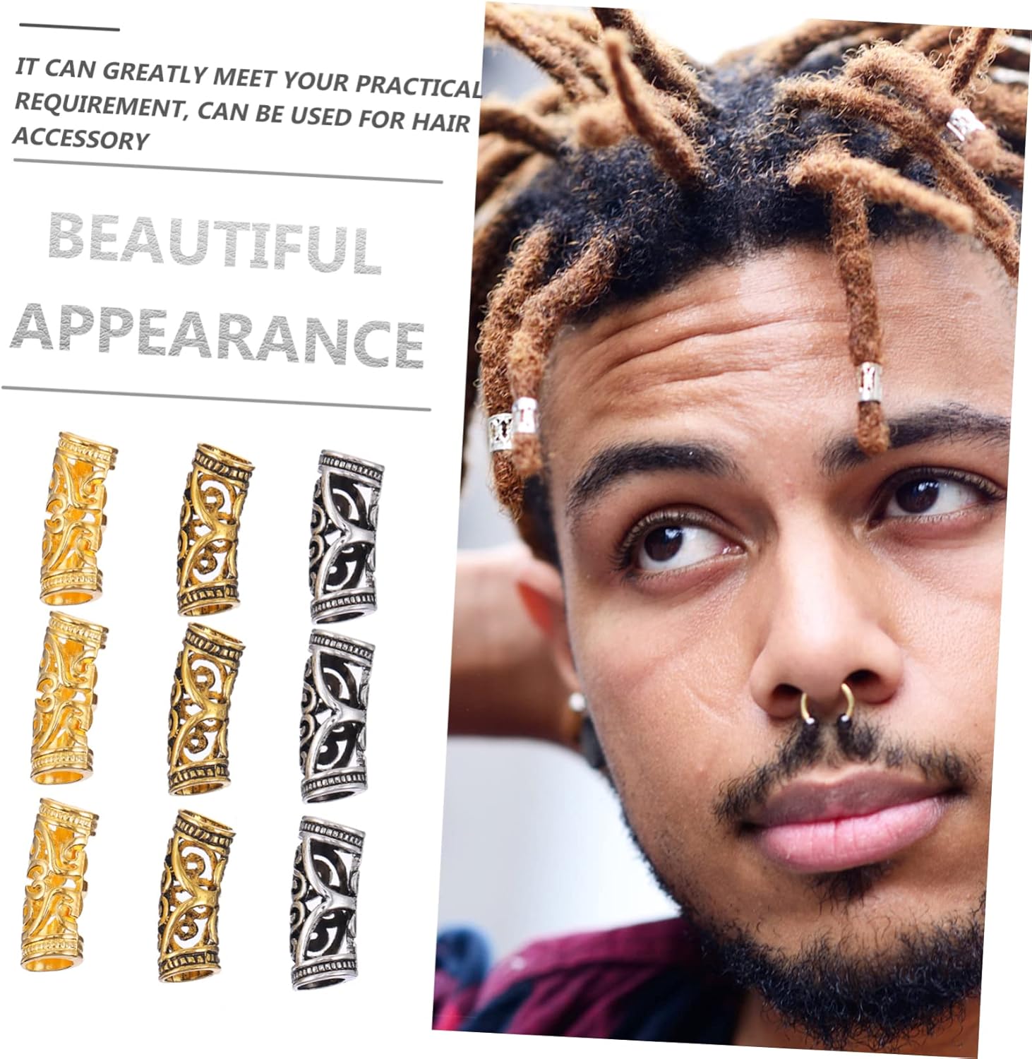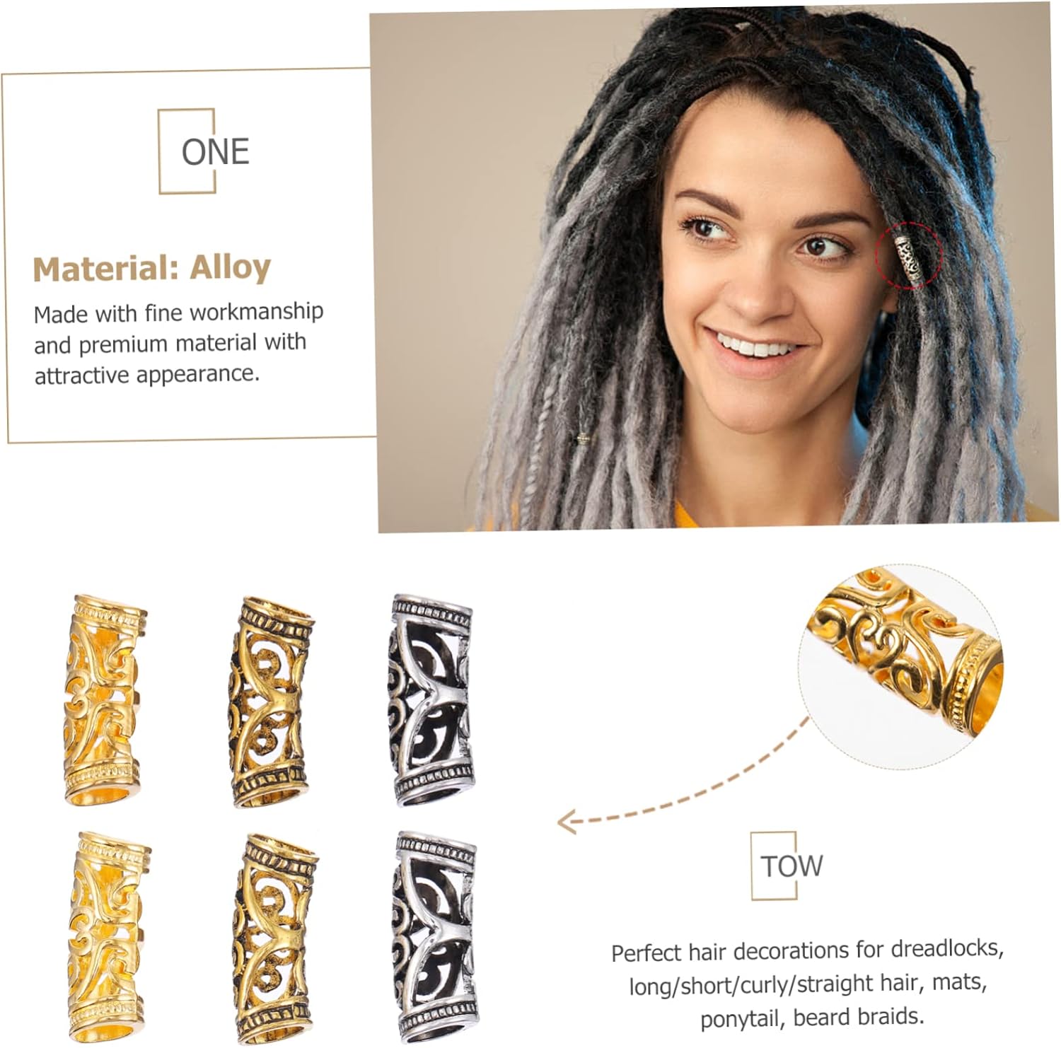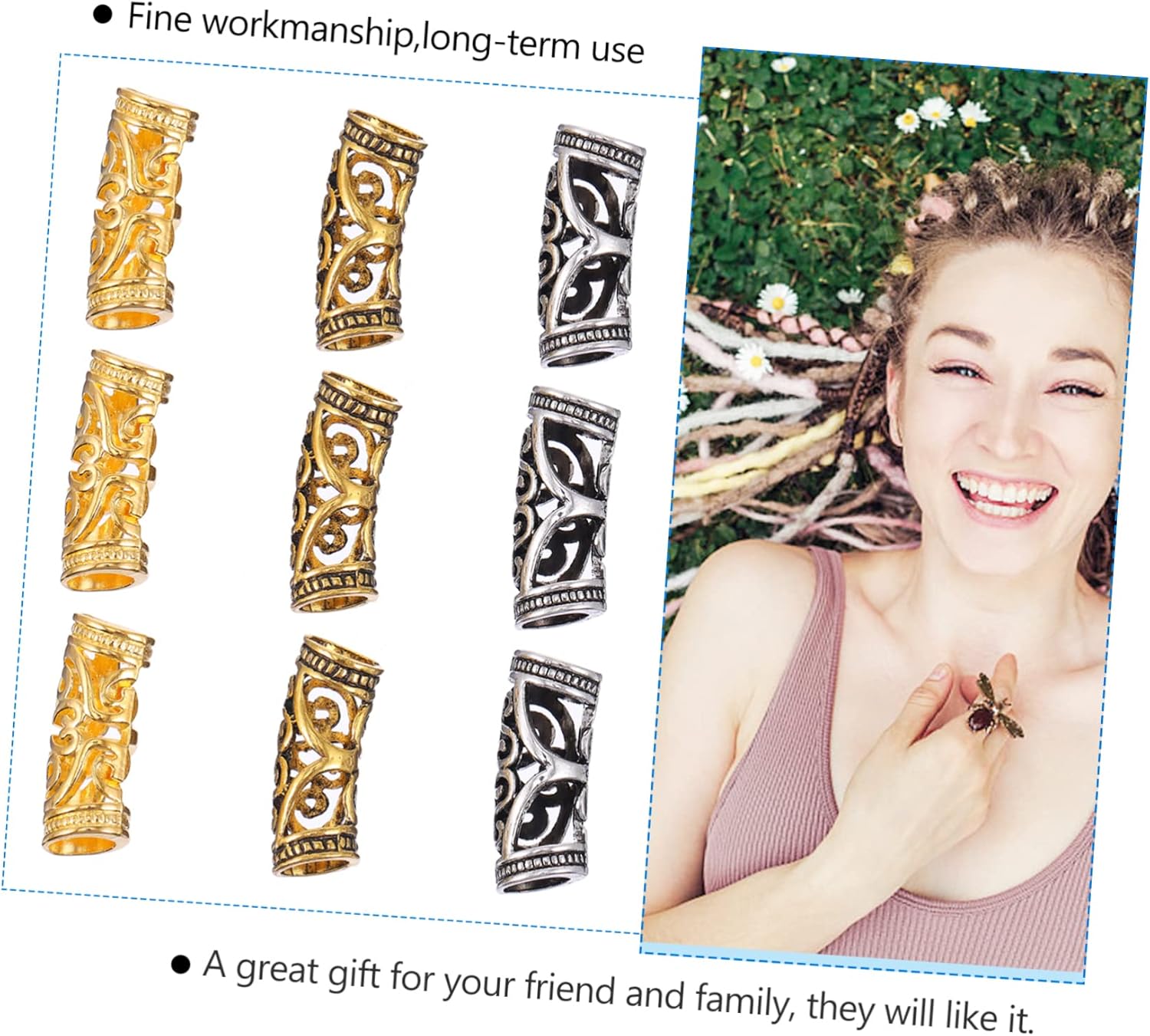 Tubo per capelli fai-da-te: grandi quantità, può soddisfare le tue diverse esigenze, uno per te, anelli in lega per trecce di capelli Polsini con dreadlock cavi: non solo possono essere utilizzati per la decorazione di capelli/barba, ma sono adatti anche per realizzare collane, braccialetti e altri strumenti fai-da-te, nonché accessori per intrecciare i capelli Ornamento dei dreadlocks: è facile da usare, comodo da usare, l'anello a treccia e le perline decorative del tubo per capelli Ciondolo braccialetto fai-da-te: facile da attaccare e piegare attorno ai capelli. Intreccia o dividi i capelli nello stile che desideri. Accessori per capelli Anelli per gioielli per capelli: puoi facilmente acquistare questo set di pratiche perline per tubi per capelli fai-da-te dai polsini per capelli con dreadlocks
