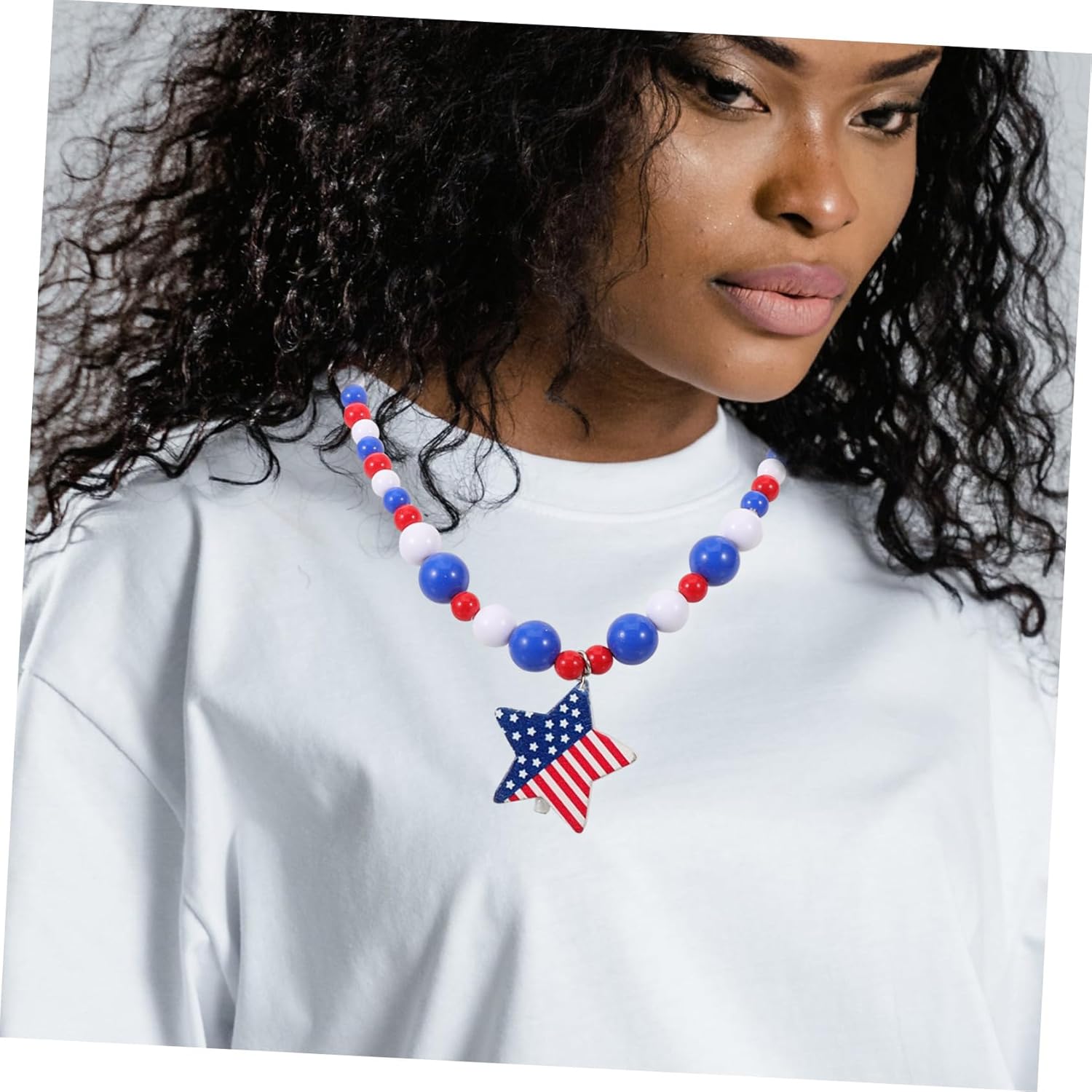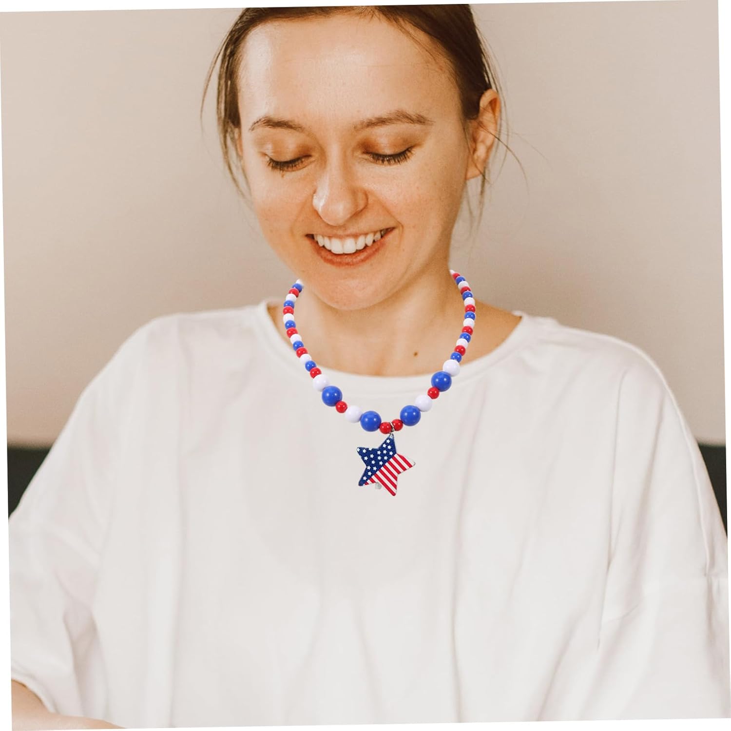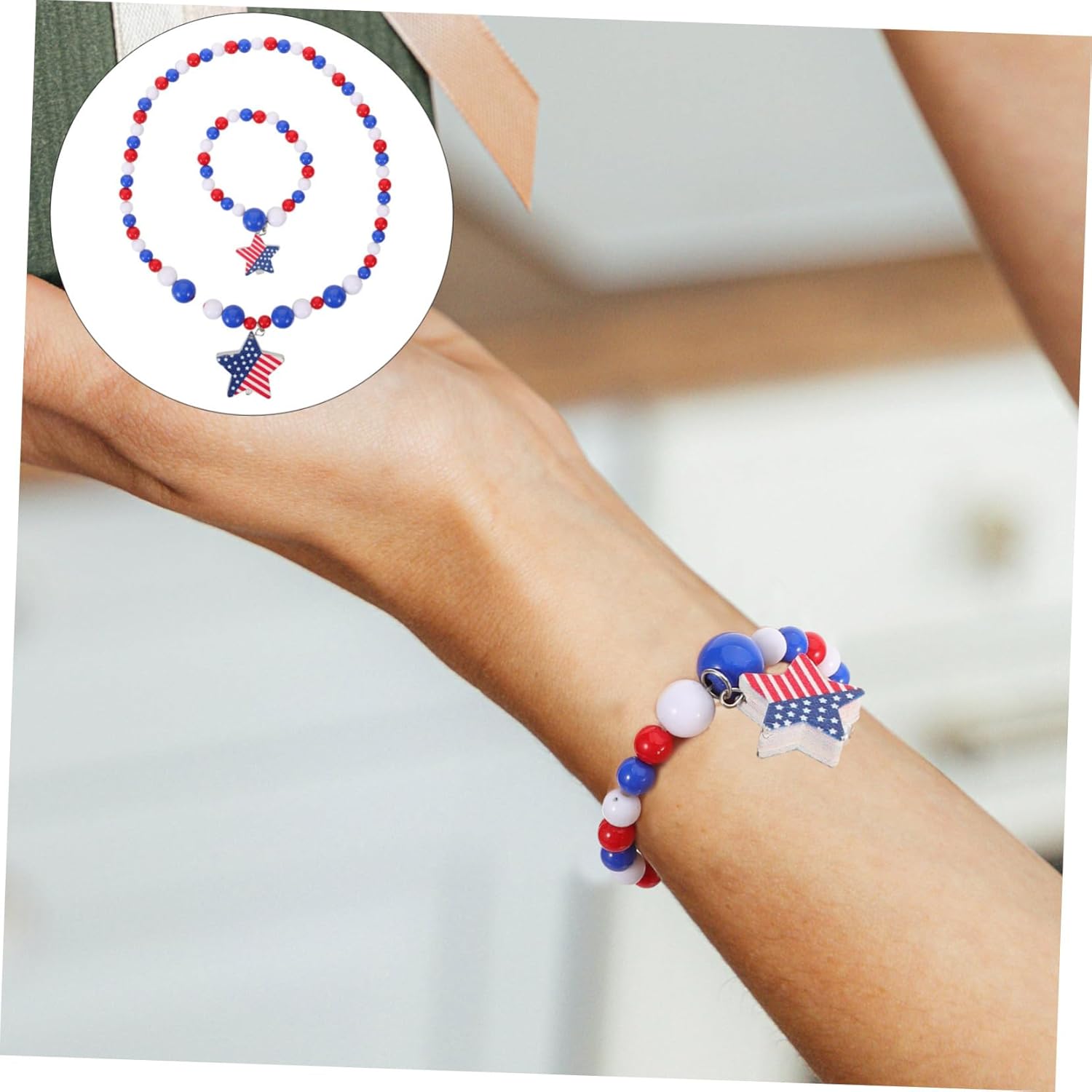 Gioielli di moda: possono essere utilizzati per banchetti, feste, balli e abbigliamento quotidiano, compleanni, dell'indipendenza, braccialetto del dell'indipendenza Decorazioni per braccialetti da ragazza: realizzate in legno, adatte anche a chi ha la pelle sensibile, collana con ciondolo Collane di perline patriottiche all'ingrosso - design creativo di perline di legno, la collana e il braccialetto sono facili da indossare, infilali subito collo e polso, ciondoli creativi per il collo Ghirlanda di perline di legno: ideale sia per un look formale che casual, la collana e il braccialetto saranno splendidi per una donna, kit di ornamenti con perline Collana da donna - realizzata in materiale di legno con una piacevole sensazione tatto, e durevole, e di buona consistenza, collana di perline usa