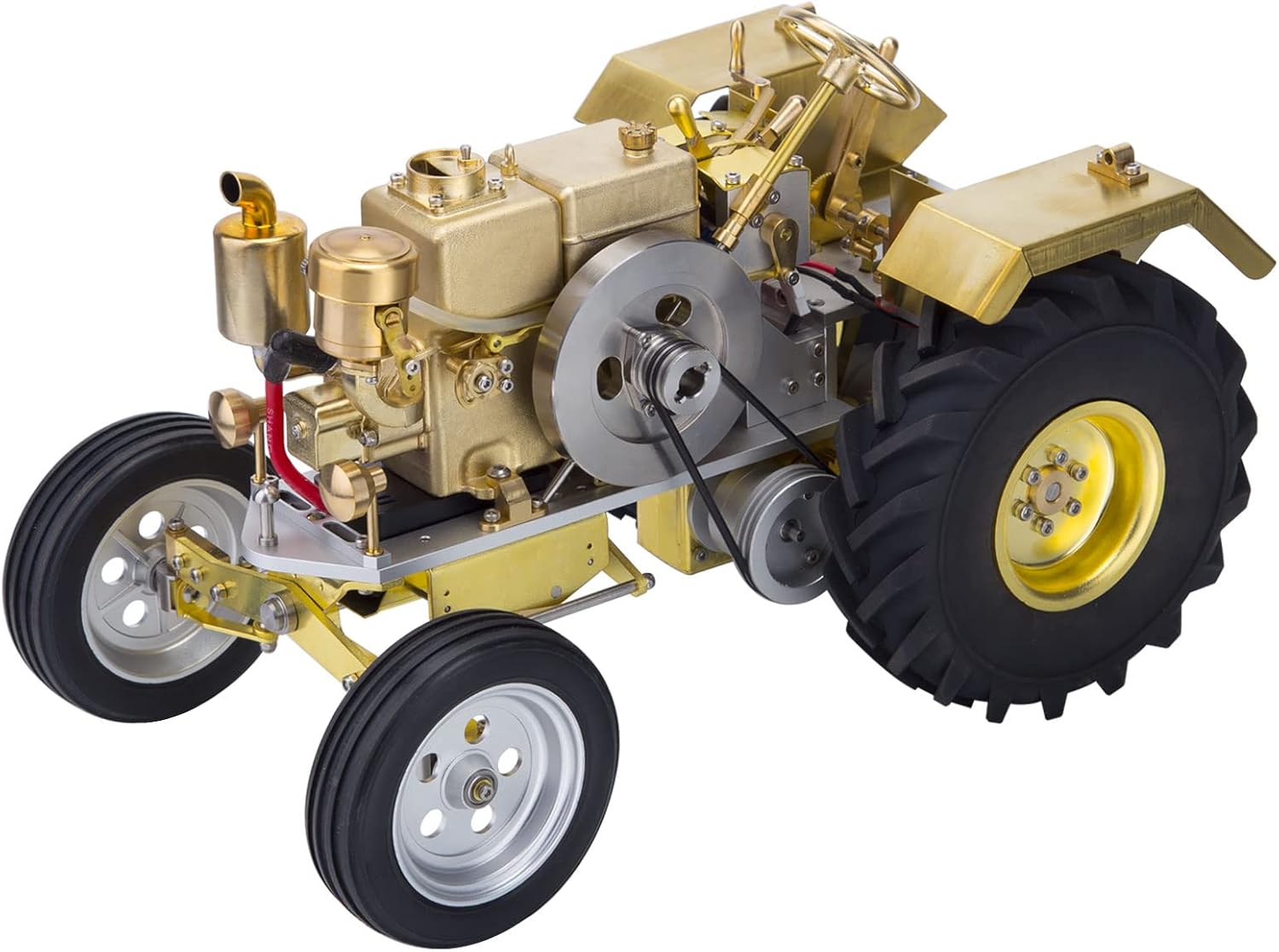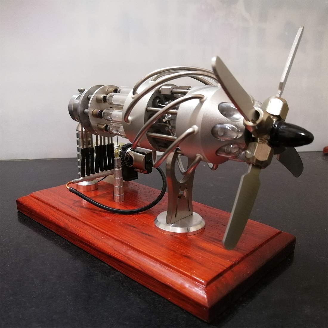 Design inconfondibile: composto da 16 cilindri - 8 caldi e 8 freddi - montati su un supporto in legno duro, davanti al quale è presente un'elica metallica. Costruzione di prima classe: telaio in lega di alluminio, base in legno di mogano, elica e cilindro caldo in acciaio inossidabile, pistone di vetro, minimizzazione dell'attrito, garantisce durata e durata Manuale dell'utente: utilizzo del gas butano per l'accensione; seguire alcuni passaggi per la messa in servizio: premere la manopola del serbatoio, ruotare le valvole, riscaldare, avviare l'elica, regolare la velocità tramite la manopola delle valvole, regolare delicatamente l'uso per prolungare la durata del modello Strumento di apprendimento: facilita la trasmissione pratica dei concetti di motore, funge da efficace strumento STEM e didattico, promuove l'interesse scientifico, è ottimo per dimostrazioni in classe Pezzo da collezione: l'artigianato esteticamente gradevole in combinazione con la qualità costruttiva di prima classe lo rende un'aggiunta ambita a collezioni di alta qualità