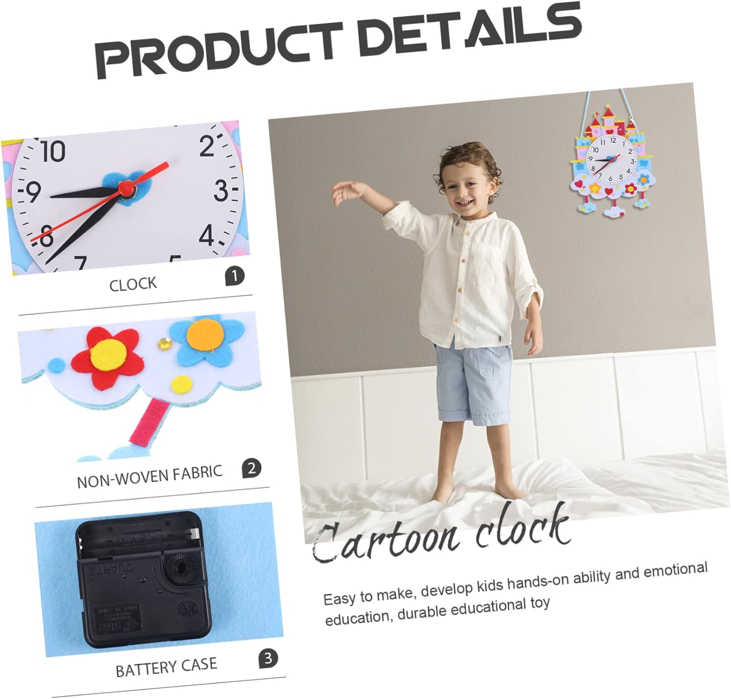 Kit da te per : l' a forma cartone animato è un perfetto accessorio fotografico per feste, lasciando un'impressione sulla , orologi didattici Kit artigianale: un pacchetto completo materiali per orologi da cartone animato con accessori sufficienti, puoi completarlo facilmente, kit per la creazione orologi Didattico: un fantastico set materiali da te per orologi a forma cartone animato, design adorabile e cartoonesco, aggiunge un'atmosfera festosa, un artigianale per Kit didattico: con colori vivaci e brillanti, i saranno attività da te e kit per Da te in tessuto non tessuto: realizzato con materiali qualità in tessuto non tessuto, sicuro per i possono giocare con colori vivaci, divertente da te, ottimi giochi artigianali per , kit cucito artigianale