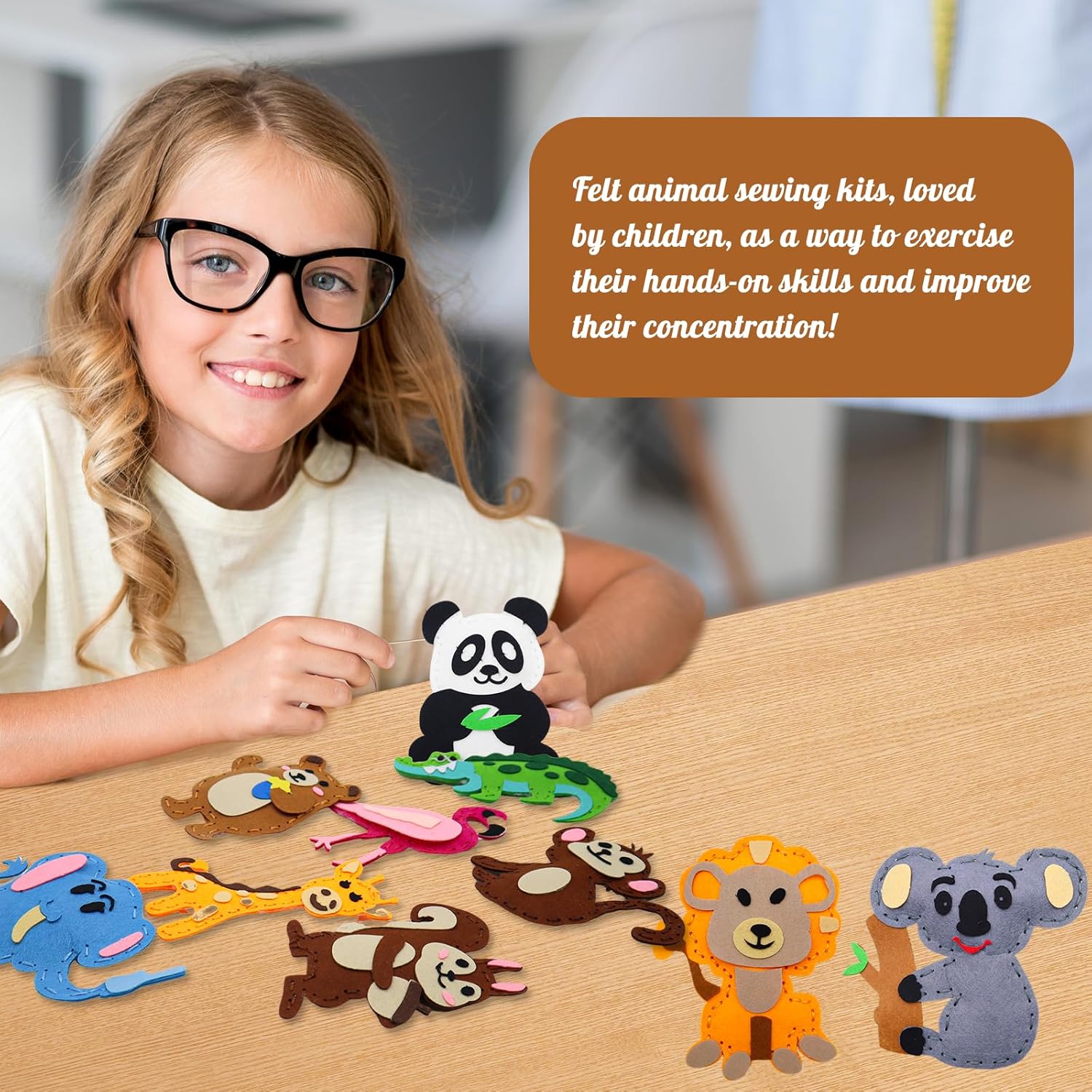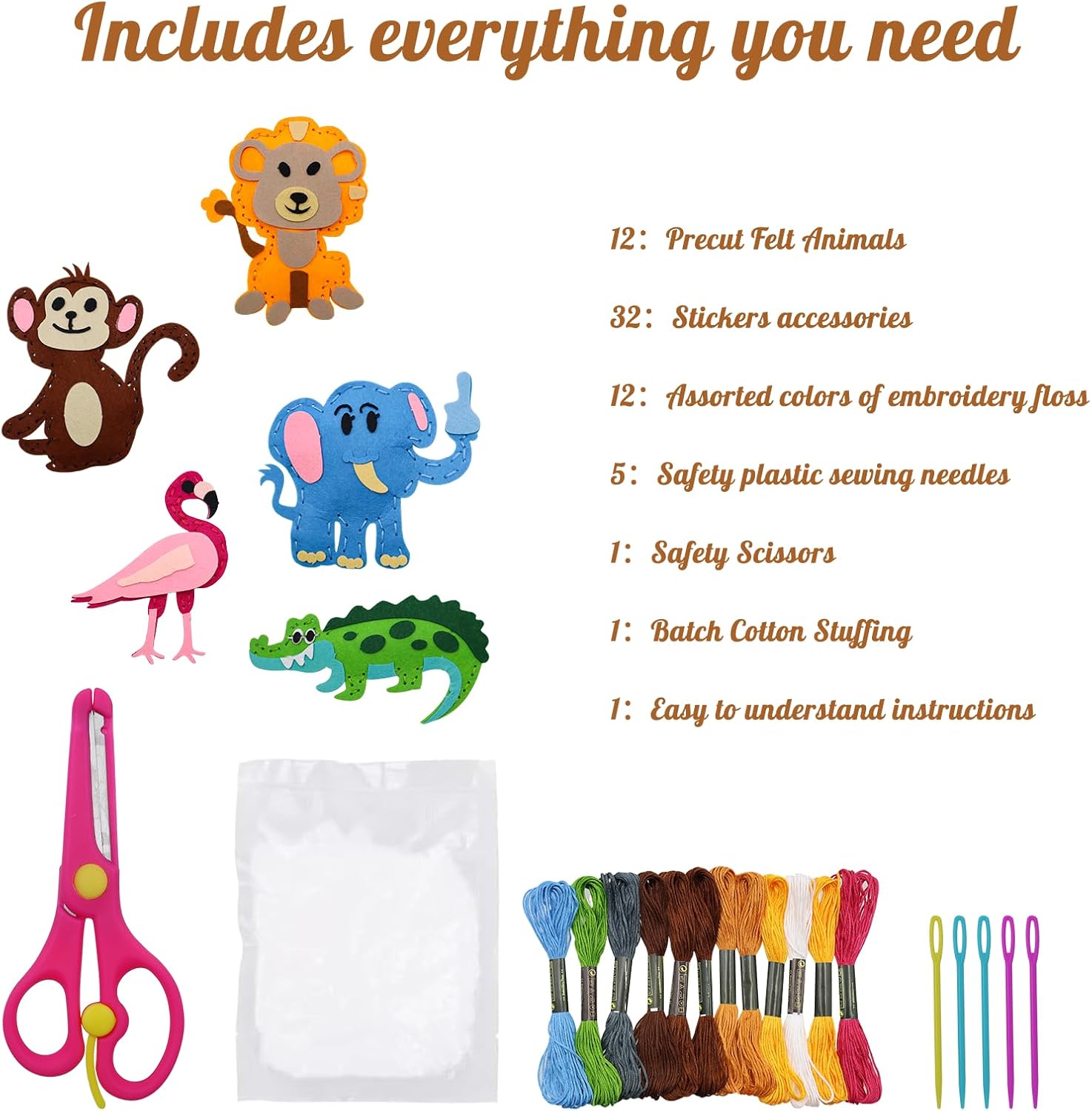 Kit da Cucito Animali della Foresta Feltro: Questo kit contiene 12 sagome di in animale feltro pretagliate,12 x fili da ricamo,5 x aghi da cucito in plastica sicuri,1 x imbottitura di cotone,1X Manuale utente. Materiali Di Alta Qualità:Bambini Artigianato Cucire Set sono realizzati con materiali in feltro di alta qualità,ecologici e durevoli,molto adatti a bambini, principianti di cucito, hobbisti. Fácil de Usar:il design del kit è semplice e facile da capire e viene fornito con istruzioni dettagliate, Poiché il feltro dell'animale è preforato,El bebé puede hacer sus propias obras de arte, lo que lo hace sentir lleno de satisfacción. Aumenta l'interazione Genitore Figlio:Con l'aiuto dei genitori, imparare a cucire e imbottire piccoli animali è una grande attività per genitorie figli per impegnarsi insieme in attività creative, migliorare le relazioni genitore-figlio e godersi felici momenti di creazione insieme. Usi ampi:Cucito per Bambini Lavoretti Creativi adatti come regalo di compleanno o di Natale per i bambini che amano il fai-da-te, Es una excelente opción para manualidades en la escuela o en casa,promueve el desarrollo cerebral y la creatividad de los niños.