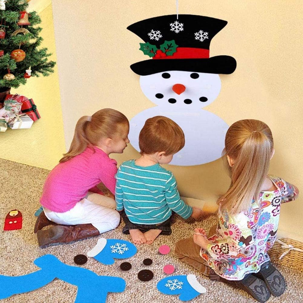 [ORNAMENTS INCLUDES SNOWMAN'S BODY, HAT, SCARF, SNOWFLAKES, GLOVES AND MORE] Crafted with premium felt, non-sticky, odorless, suitable for wall, door, or ground play. [ HOLIDAY GAME FOR GROUPS OF 2-8] Ideal for family, friends, or guests to enjoy together, sparking creativity and imagination in children. [VERSATILE USAGE FOR HOLIDAYS, PARTIES, AND DECOR] Enhances hand-eye coordination, fine motor skills, and color recognition in a fun and engaging way. [IDEAL GIFT FOR KIDS' CHRISTMAS] Allow children to unleash their creativity and make the most of their imagination, a holiday present. [HIGH-QUALITY MATERIALS FOR ENDLESS FUN] Encourage interactive play and bonding, fostering a joyful and festive atmosphere during Christmas festivities.