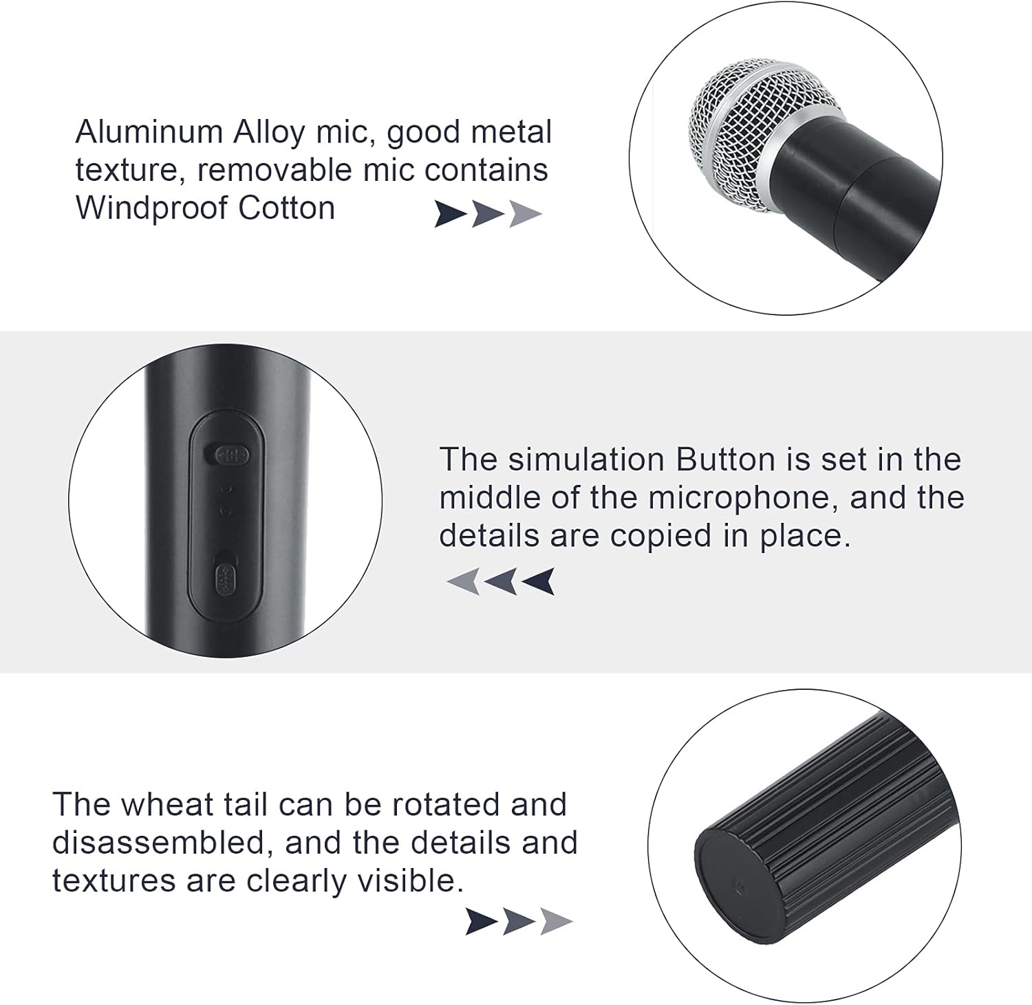 Design altamente realistico: presenta una testa in lega di alluminio e un corpo in plastica per una struttura metallica, che lo rende molto realistico per le prestazioni. Uso versatile: può essere abbinato a tutti i tipi di staffe, coperture per microfono e didascalie delle stazioni, perfetto per spettacoli teatrali, oggetti di scena fotografici e giocattoli per bambini. Simulazione dettagliata: include un design di interruttore ed è simulato nei dettagli per un'esperienza microfonica autentica. Incoraggia la creatività: per il gioco di ruolo, permettendo ai bambini di fingere di essere cantanti o star del cinema, promuovendo creatività e fiducia. Ottima idea regalo: aggiunge divertimento alle attività di vacanza dei bambini, feste di compleanno e altro ancora, rendendolo un regalo perfetto per i giovani artisti.
