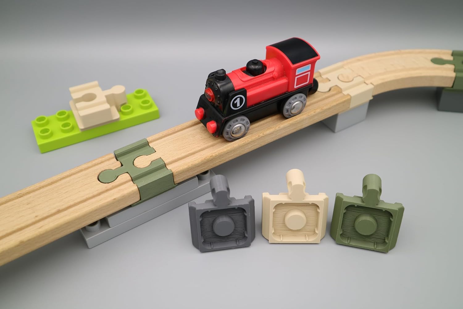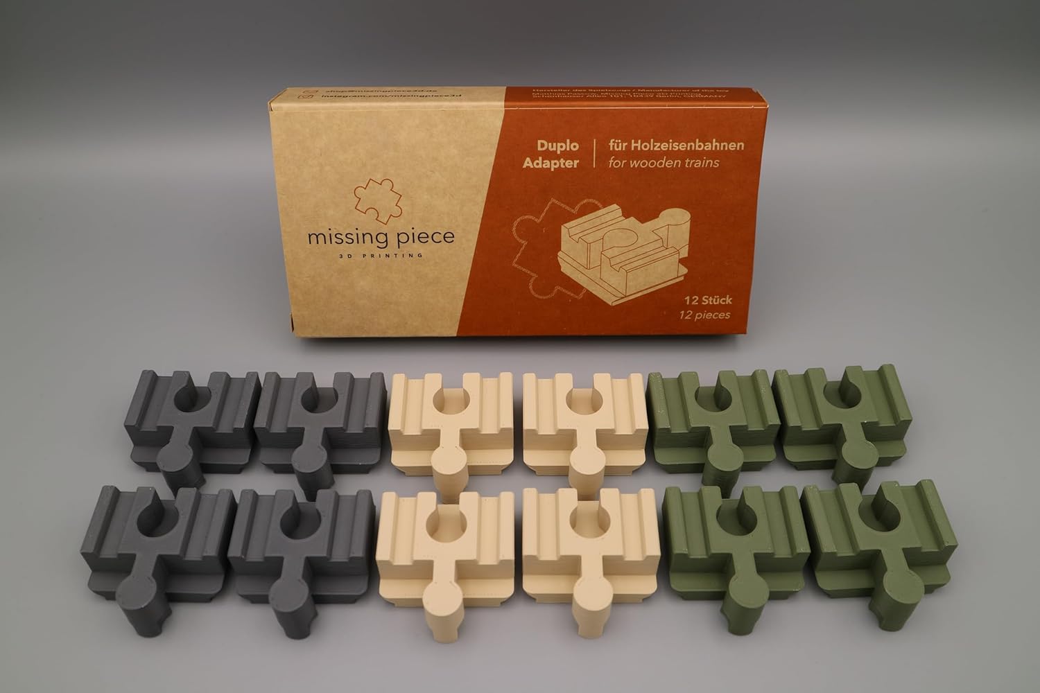 Include 12 adattatori per il collegamento di Lego Duplo e treni in legno giocattolo. I connettori sono compatibili con le guide in legno di tutti i produttori più diffusi come Brio, Hape, Eichhorn, Lillabo, ecc. Divertimento garantito per i bambini grazie alle parti particolarmente precise: gli adattatori non si collegano né troppo stretti né troppo sciolti e possono essere facilmente installati anche su pietre Duplo più grandi e sui pannelli da costruzione. In questo modo si possono costruire in modo semplice e particolarmente stabile anche pilastri alti e percorsi creativi. La creatività non ha limiti e si evita la frustrazione! Gli adattatori Duplo sono realizzati in plastica PLA riciclabile e sono realizzati da me con processo di stampa 3D in Germania. Particolare enfasi è posta su materiali di alta qualità e rispettosi dell'ambiente. L'intera catena di fornitura è europea. Quindi gli adattatori sono di assoluta qualità – Made in Germany. Aspetto di alta qualità grazie alla finitura opaca e ai colori vivaci e raffinati, particolarmente attraenti per i bambini e i loro genitori. Ogni prodotto è stato progettato e realizzato da un padre con ingegneria e attenzione ai dettagli. Fornito in cartone naturale ecologico – Il regalo perfetto che non può mancare in nessuna collezione di giocattoli e rende i vecchi giocattoli interessanti grazie all'unione di due mondi giocattoli.