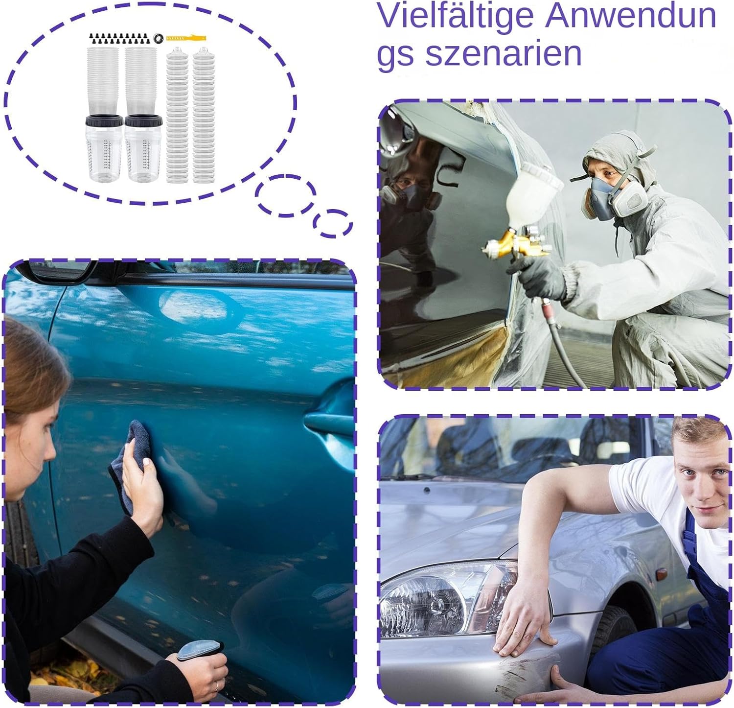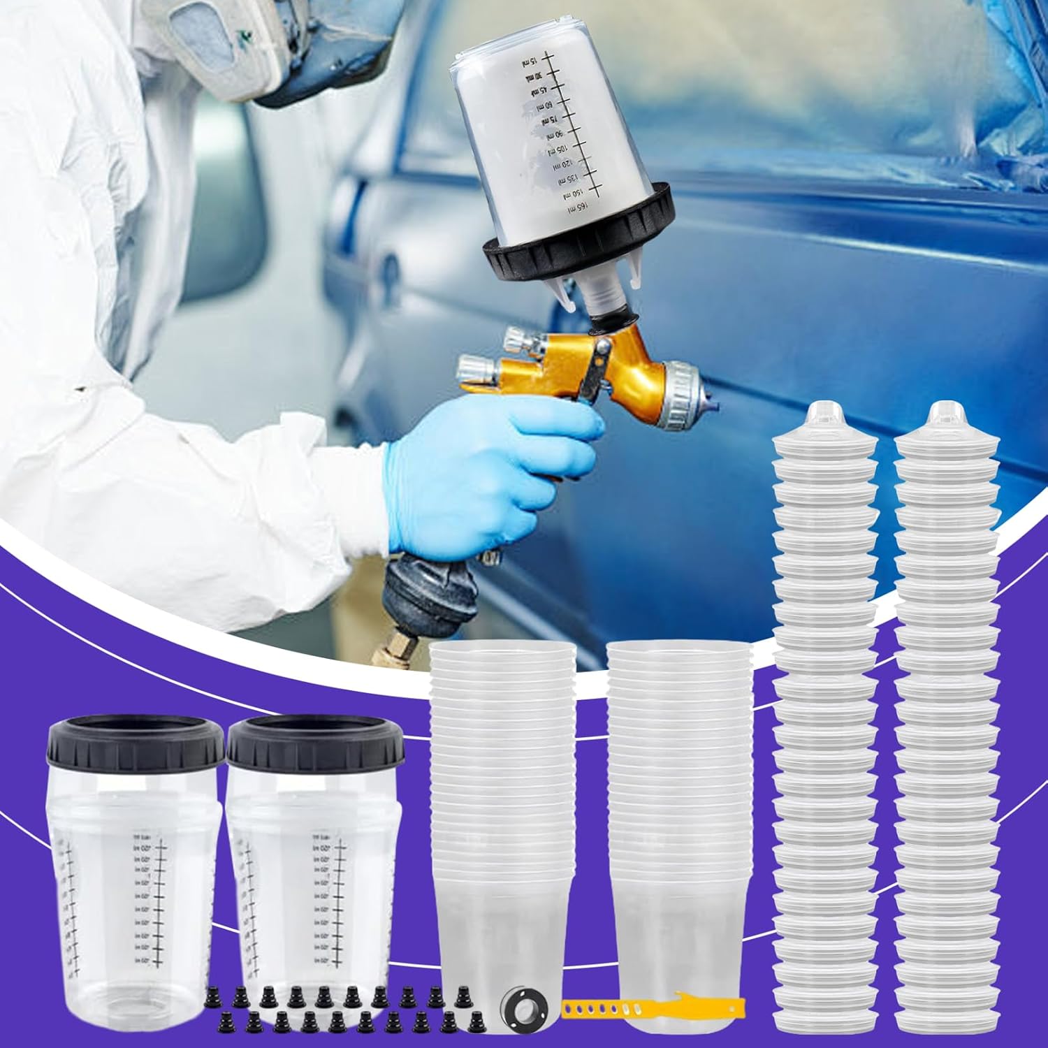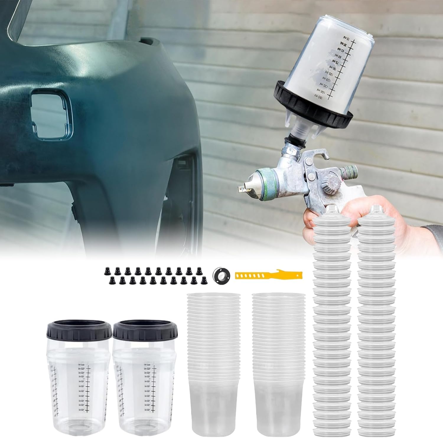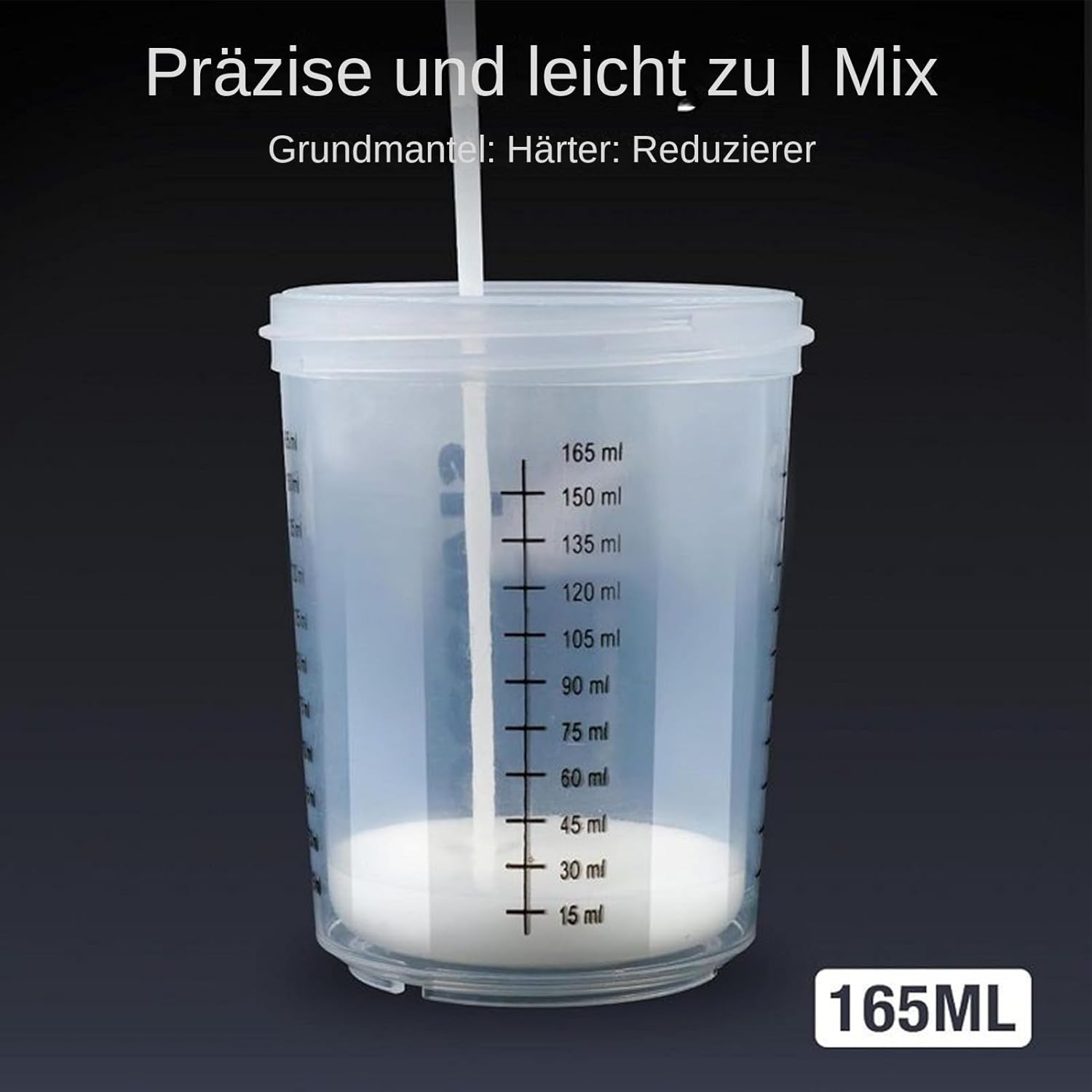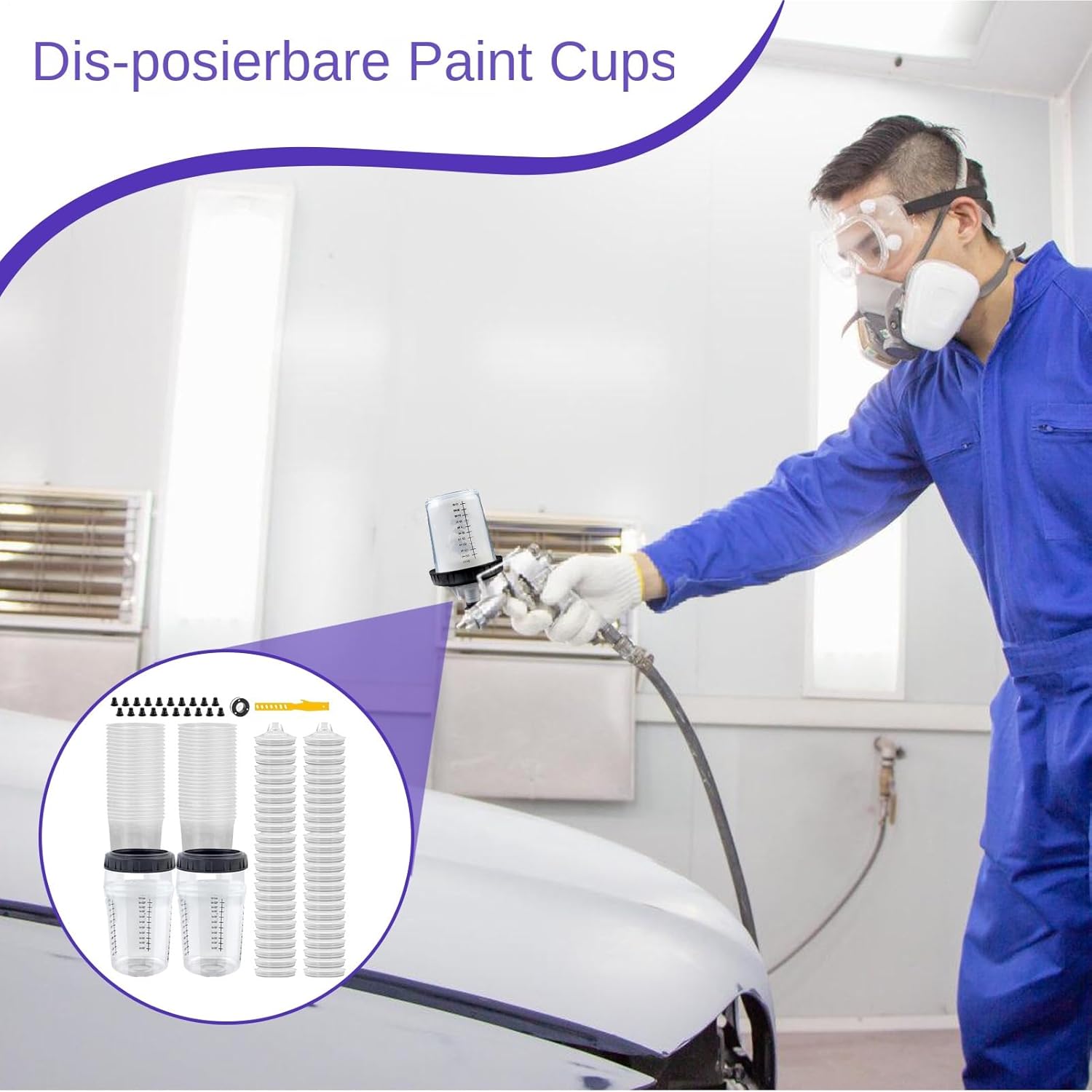 Design ottimizzato dei componenti: la tazza fissa, la tazza interna e il coperchio del filtro garantiscono una miscelazione omogenea del colore grazie al collegamento a scatto. La funzione smontabile e il nastro sigillante migliorano la maneggevolezza e l'igiene del posto di lavoro. Le istruzioni allegate supportano un uso efficiente Efficace risparmio di materiale: il design rinforzato per la protezione dalle perdite garantisce un'applicazione uniforme e la spruzzatura in tutte le direzioni senza fuoriuscite, ideale per un uso efficiente su superfici irregolari o rotonde Accessori pratici: dotato di tazze interne di ricambio e materiale necessario per un uso ininterrotto per riparazioni di mobili o lavori di modelli dettagliati Tazza di miscelazione versatile: si adatta ai comuni spruzzatori e semplifica i processi di lavoro. Combina le funzioni di miscelazione, riempimento e conservazione con scala di misurazione integrata per un dosaggio preciso e tappo di chiusura per una conservazione sicura. Flusso della vernice migliorato: un efficace blocco della contaminazione grazie al rivestimento preciso del filtro favorisce un flusso omogeneo del colore e una distribuzione uniforme della rete, riduce lo sforzo di levigatura per una qualità di finitura ottimale in ogni applicazione