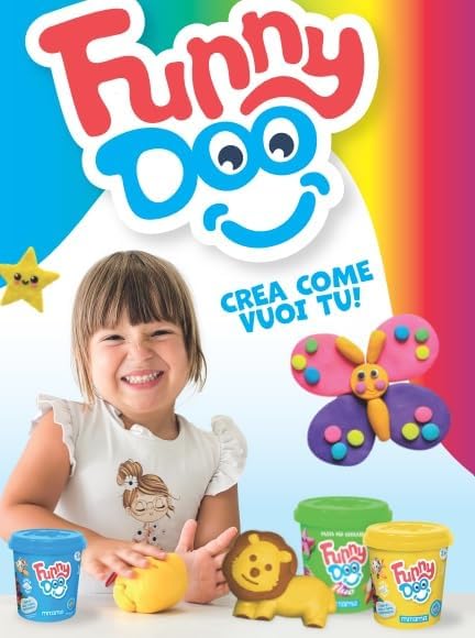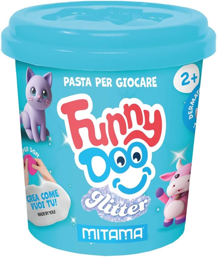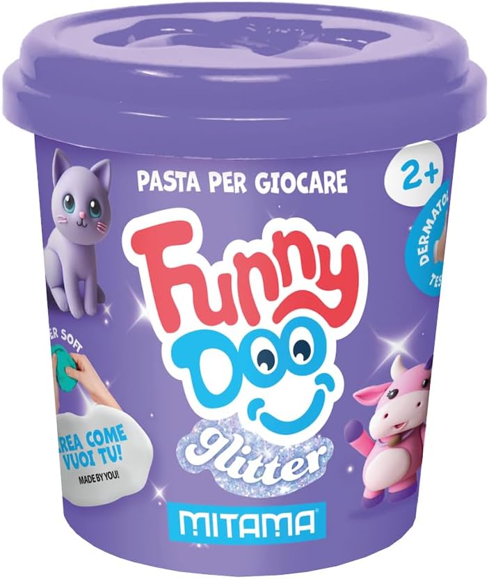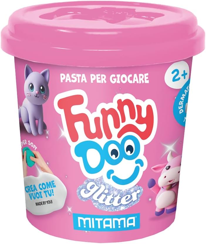 Dimensioni: 19 cm(L) x 7 cm (H) x 6 cm (P) CONTENUTO: -3 barattolini di pasta modellabile GLITTER Funny Doo da 120 grammi -Colori: ROSA GLITTER, LILLA GLITTER, CELESTE GLITTER FASCIA DI ETA': 2+
