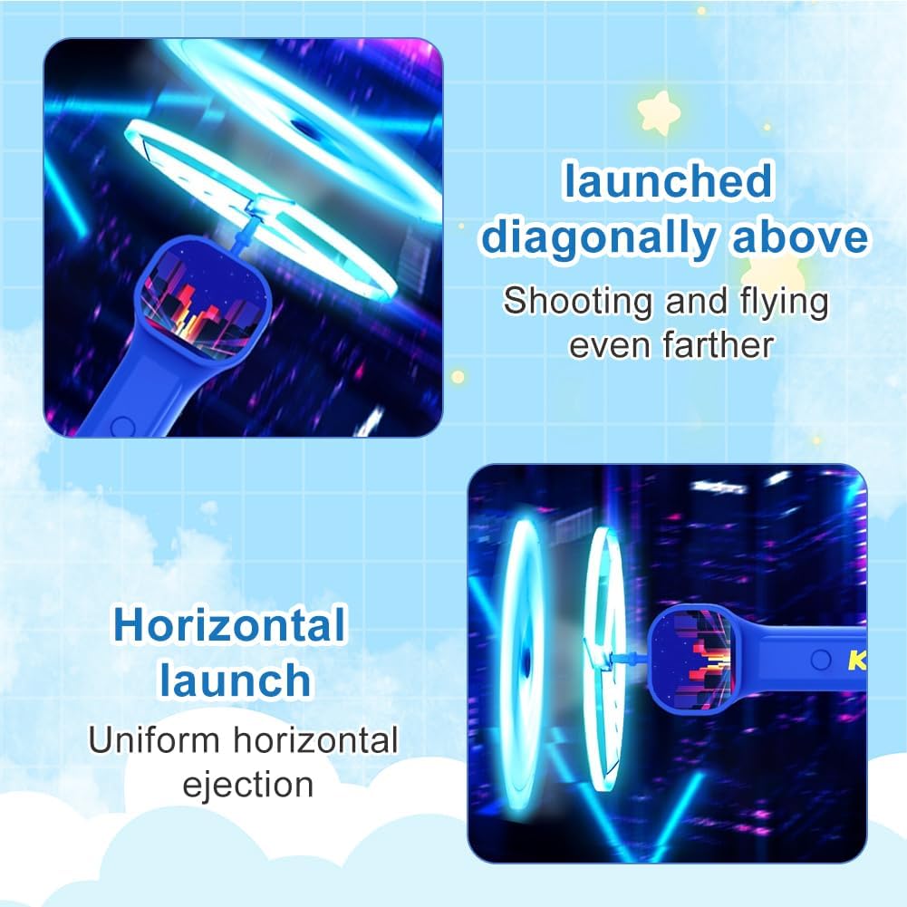 Avvio elettrico a clic: una pressione a clic può avviare l'avviamento elettrico senza forza manuale; supporta angoli di avvio sia verticali che obliqui con un'altezza massima di volo di 4 metri, che soddisfano le diverse esigenze di gioco dei bambini. Il funzionamento è semplice e conveniente e offre un'esperienza di avvio senza precedenti e senza precedenti. Luci colorate: c'è un interruttore di controllo della luce sul lato – premere verso l'alto la luce superiore si accende e i giocattoli volanti emettono luce e voleranno; chiudere verso il basso per utilizzare un normale piattino volante. L'effetto visivo sarà sorprendente se utilizzato di notte; la luce morbida e antiriflesso non solo è divertente, ma aiuta anche i genitori a tenere sotto controllo la posizione del giocattolo ed evitare perdite. Materiale di alta qualità: i giocattoli luminosi a elica sono realizzati con materiali eccellenti e durevoli, con una superficie liscia e morbida, senza burrs, sensazione confortevole al tatto, anti-caduta e non si danneggiano facilmente, il che impedisce efficacemente ai bambini di graffiare durante il gioco. Regalo per le vacanze: questo fantastico giocattolo luminoso UFO è un regalo ideale per i bambini. Particolarmente adatto per diverse occasioni di vacanza come Natale, Halloween, Capodanno, feste di compleanno, riunioni, ecc. Aggiungono effetti di luce abbaglianti un'atmosfera allegra. Giocattolo volano a LED rotante: il giocattolo volante luminoso include 3 giocattoli volanti luminosi e 3 normali giocattoli volanti. Il giocattolo a elica a LED ruota senza problemi durante il volo, il che può esercitare la coordinazione occhio-mano e la rapida reattività dei bambini e la loro capacità pratica.