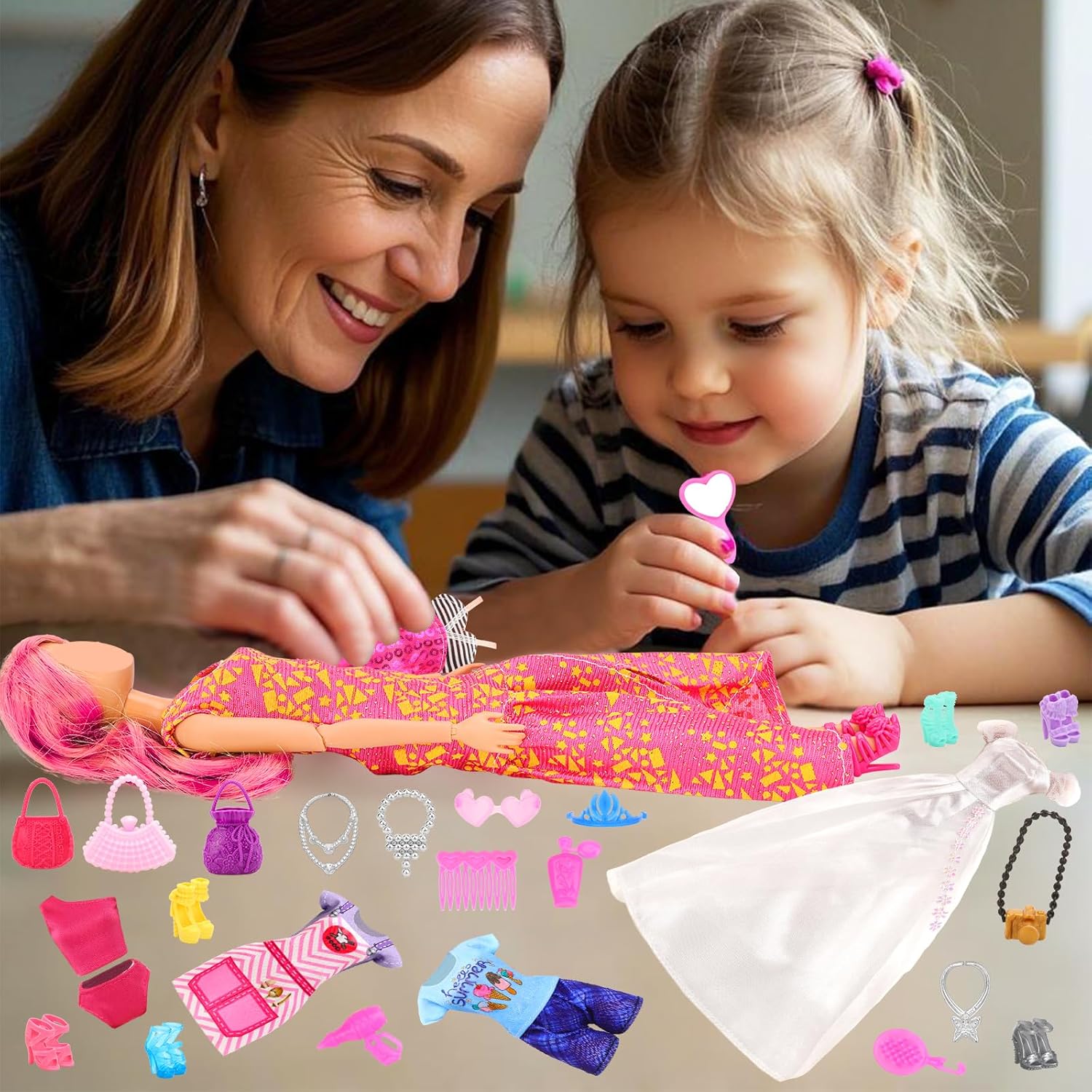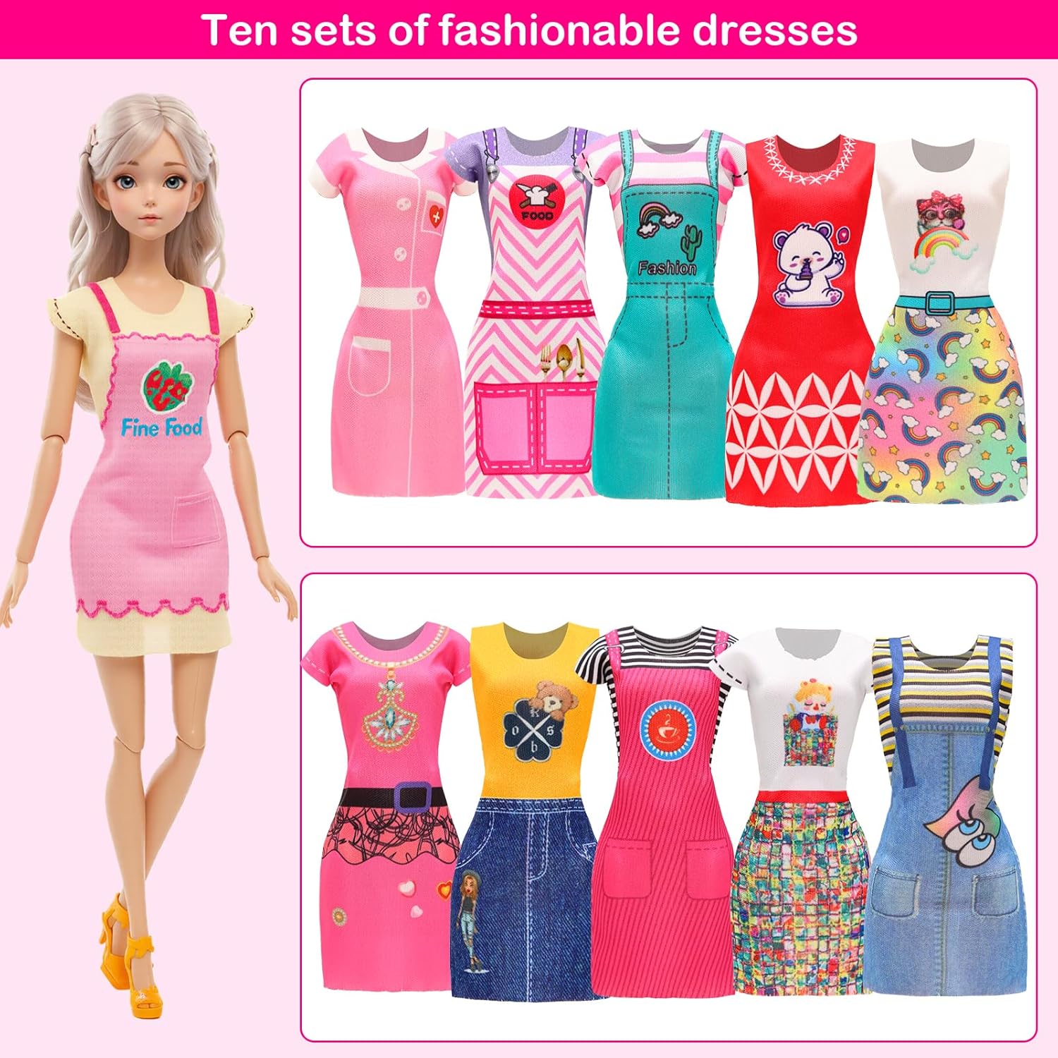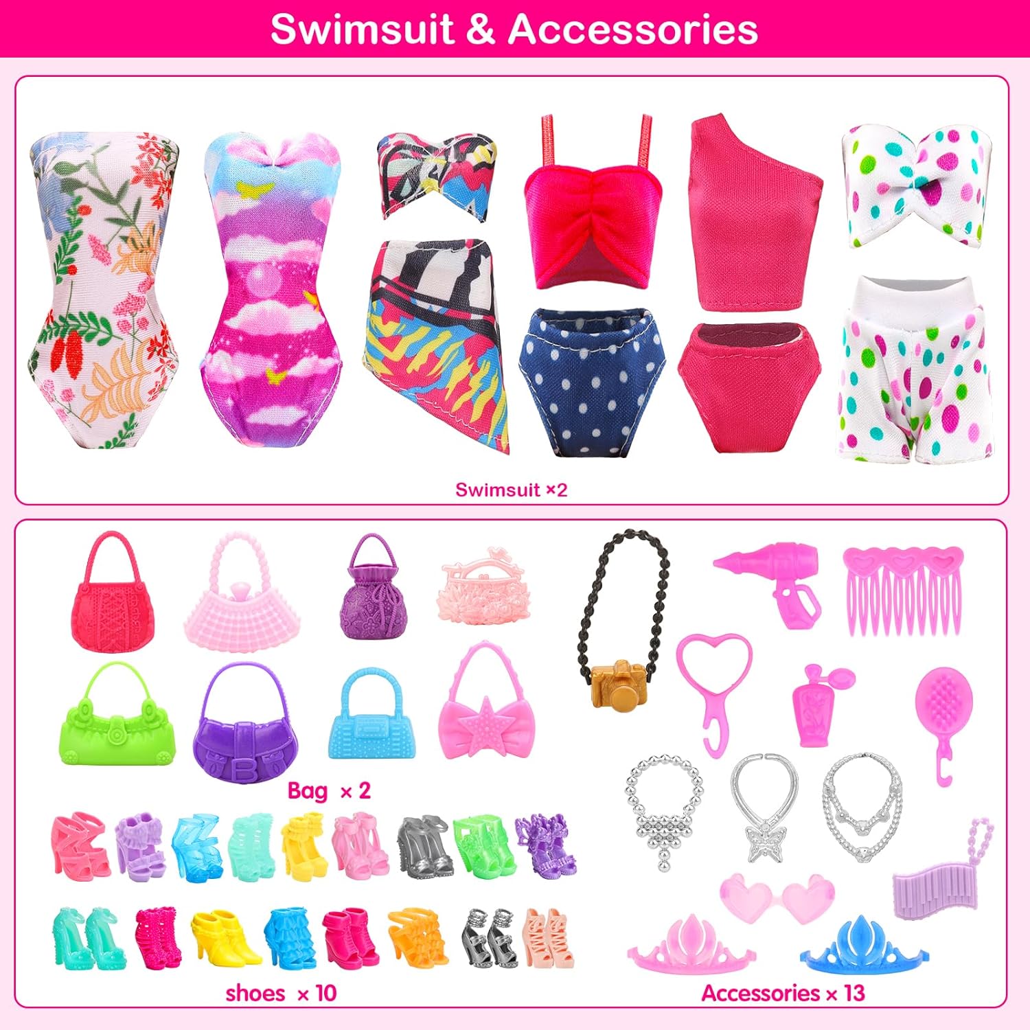 👗 Pacchetto Compreso: Vestiti e Accessori per bambole includono 2 pezzi di abiti giornalieri, 2 pezzi di abiti da festa, 2 pezzi di top, 2 pezzi di pantaloni, 2 pezzi di bikini, 10 pezzi di abiti alla moda, 13 pezzi accessori per gioielli, 5 pezzi di borse e 10 PCS (20 pezzi) di scarpe sono sufficienti per le esigenze decorative delle bambine per le bambole 11.5 Pollici 30cm. Nota: Spedito a caso. 👗 Design Conveniente: Tutti vestiti per bambole sono facili da indossare e da togliere grazie al design autoadesivo sul retro, che può far cambiare più facilmente alle tue ragazze i vestiti della bambola e mostrare meglio il fascino della bambola 11.5 Pollici 30cm. 👗 Qualità Premium: Tutti i vestiti bambole sono realizzati con tessuti morbidi e confortevoli, colorati e 100% fatto a mano. Perfetto per bambole da 11,5"/30 cm. Scarpe, borse, gioielli e altri accessori sono realizzati in plastica di alta qualità, resistente e sicura. 👗 Tempo di Divertimento: Le ragazze possono progettare diversi look di stile per le loro 11.5 Pollici bambole secondo i propri pensieri. Puoi anche giocare a questi vestiti per bambole con i loro amici in feste per creare abbinamenti più vari, migliorare le capacità pratiche del bambino e appesantire la loro immaginazione. 👗 Regalo Perfetto: Il set di abiti e accessori per bambole è un regalo perfetto per le ragazze che vogliono essere una principessa o come abbinare i vestiti. E questo set è anche un regalo ideale per le ragazze per compleanno, Natale, festa dei bambini e feste.