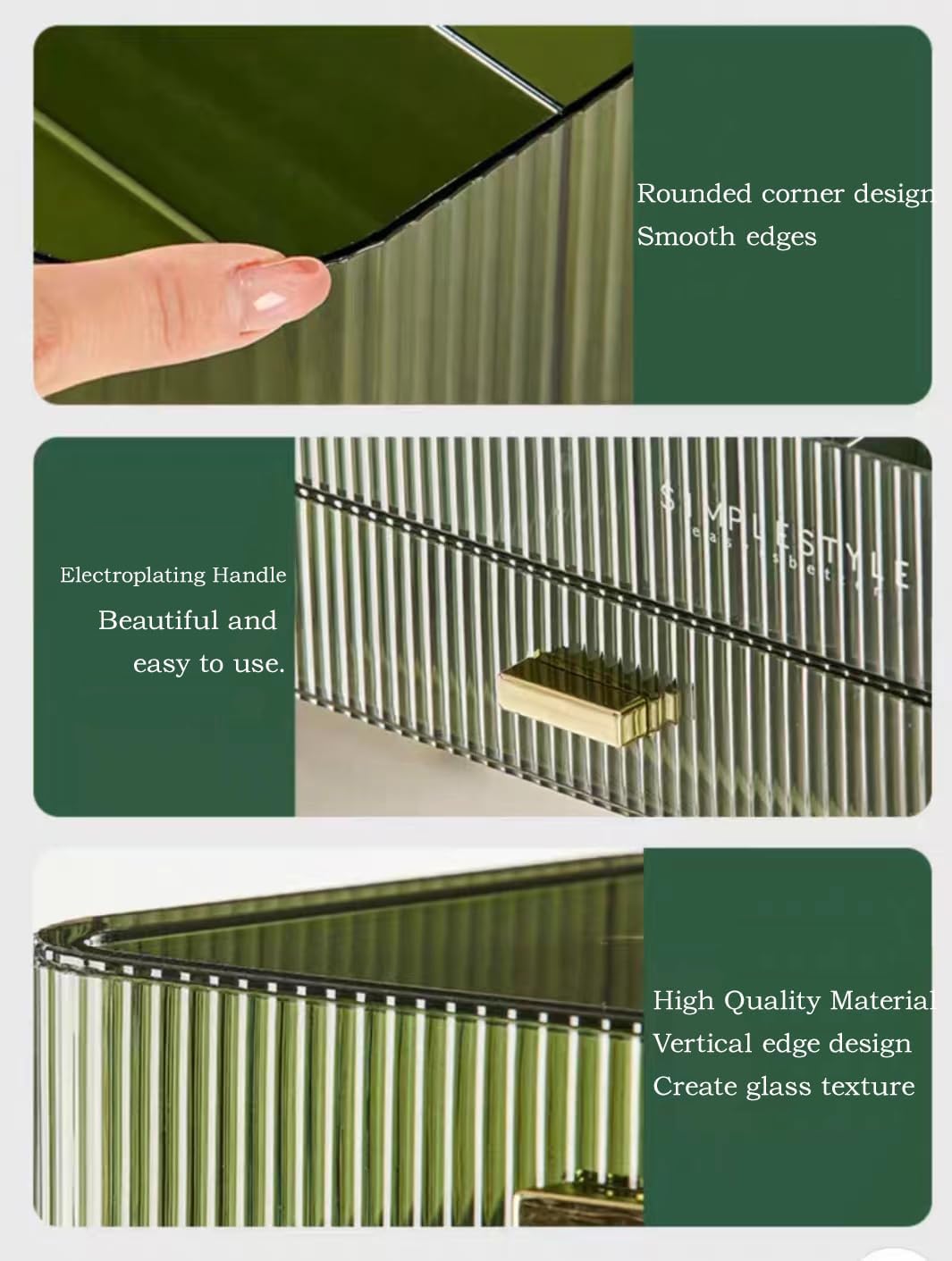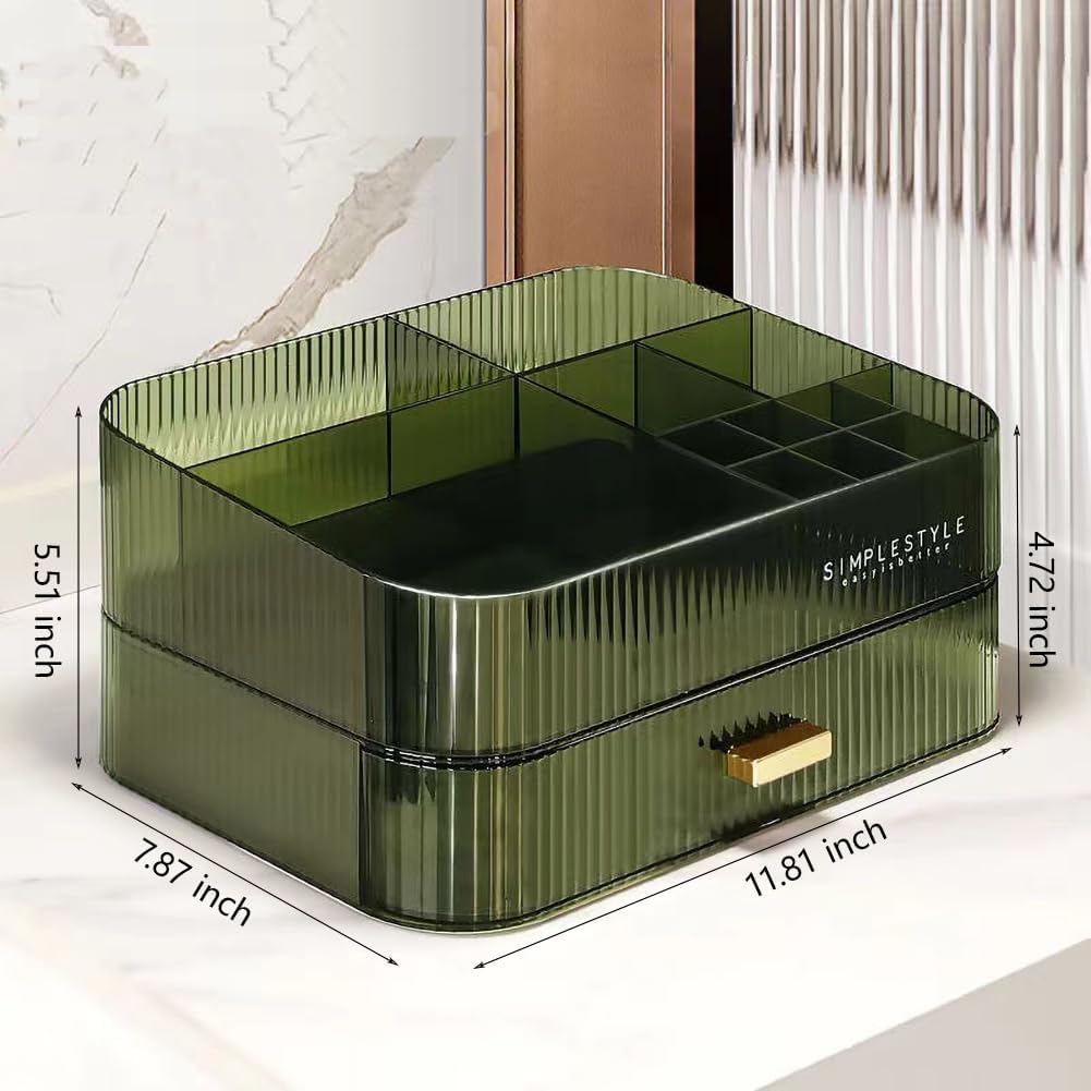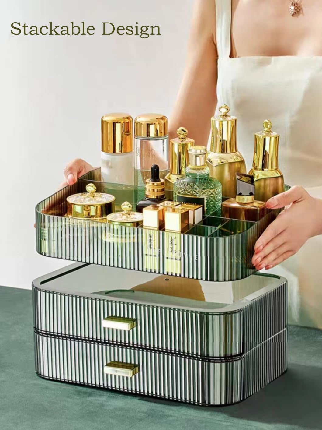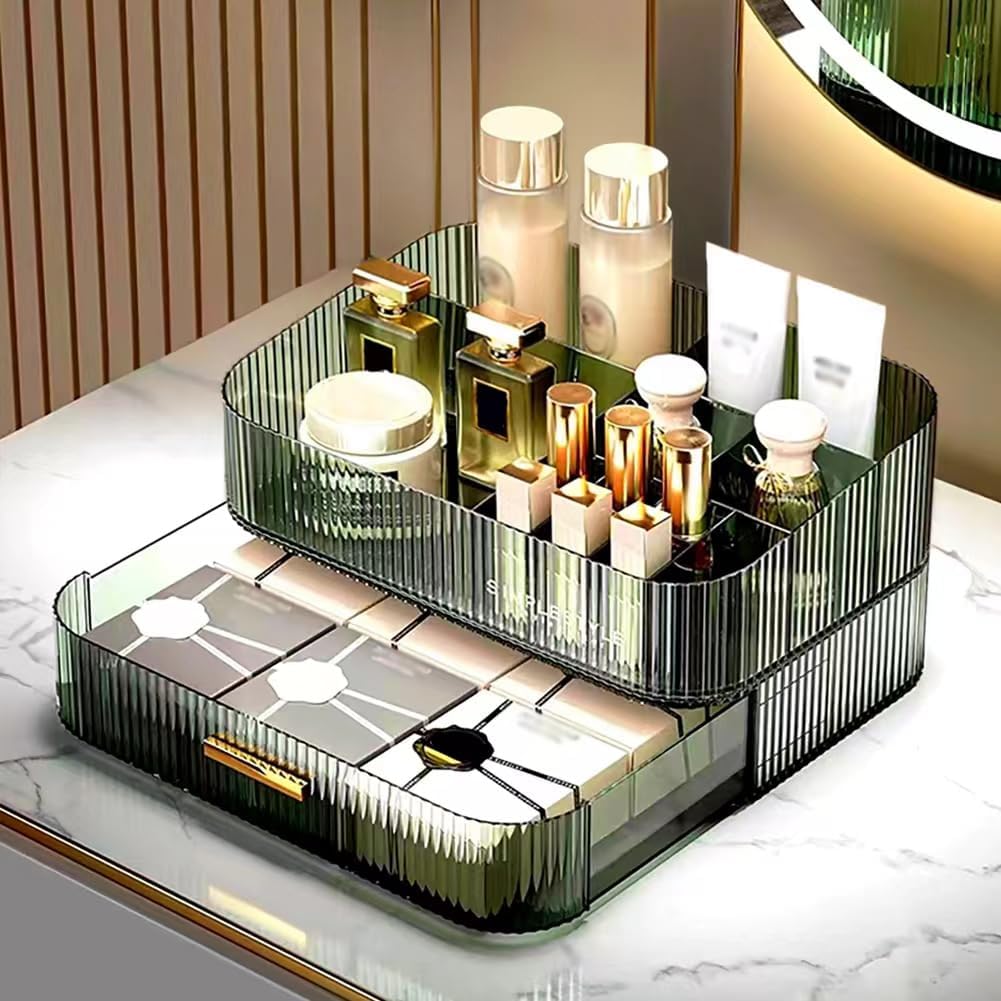 Design alla moda: vassoio e cassetti di 4 colori possono essere combinati arbitrariamente. È possibile combinare liberamente in base alle proprie esigenze e preferenze per mantenere tutto in ordine. Esterno chic ed elegante. Lo stile chiaro crea un display visivamente accattivante che si coordina magnificamente con la maggior parte degli interni. Organizza tutti i tuoi trucchi, cosmetici e accessori in un abbagliante bancone di bellezza personalizzato o espositore. Design impilabile: il design impilabile consente di riporre più oggetti in uno spazio limitato, mantenendo in ordine i controsoffitti disordinati. Sia il vassoio superiore che il fondo della scatola del cassetto hanno 4 piedini antiscivolo e la parte superiore di ogni cassetto è incassata in modo che il vassoio o la scatola possano essere bloccati sulla scatola del cassetto sottostante. Un bellissimo ed eccellente organizer che mantiene la scrivania pulita e ordinata. Archiviazione classificata di grande capacità: il vassoio superiore e il cassetto a sovrapposizione arbitraria sono sufficienti per soddisfare le tue esigenze personali. Ad esempio lozione, lozione, maschera per il viso, batuffolo di cotone, pennello da trucco, rossetto, rossetto, fondotinta liquido, mascara, eyeliner, palette di ombretti e altri cosmetici quotidiani. Utilizzando l'organizer per trucchi MIUOPUR puoi trovare rapidamente i cosmetici di cui hai bisogno. Materiali di alta qualità: la scatola organizer MIUOPUR è realizzata in materiale PET di alta qualità, sicuro e rispettoso dell'ambiente. Non tossico e inodore, puoi conservare in modo sicuro cosmetici delicati, non cadrà mai. Mai fuori moda! Progettato per l'uso quotidiano: l'organizer è meticolosamente in ogni dettaglio, considerato per offrirti la più intuitiva e comoda conservazione dei trucchi. I nostri organizer versatili sono progettati magnificamente. Si adatta alle tue diverse esigenze di archiviazione: organizer per trucchi, organizer per cosmetici, organizer da bagno, organizer da scrivania, ecc
