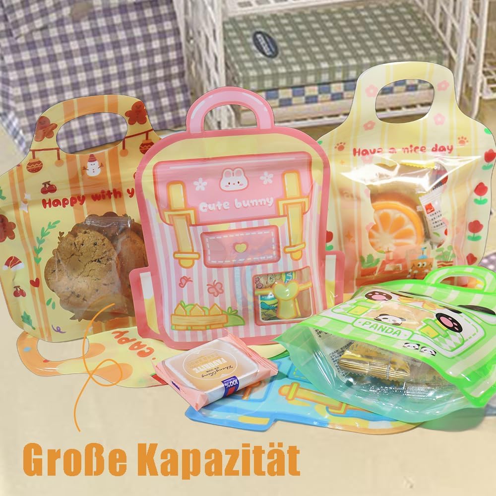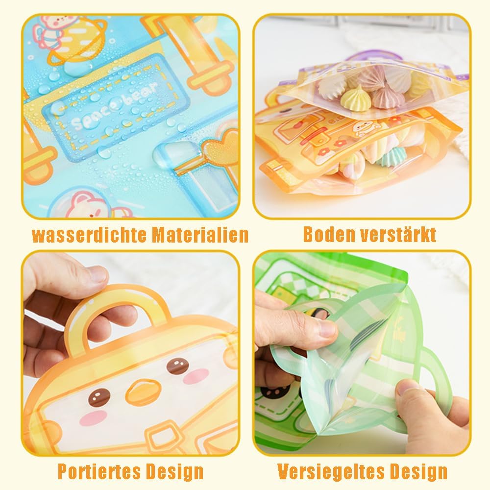 【Design con striscia autosigillante】 Ogni borsa riutilizzabile ha una striscia autosigillante per mantenere gli articoli nella confezione asciutti e ermetici in modo che possano essere conservati più a lungo. 【Bellissimo design】 I graziosi motivi a fumetti, accattivanti, i sacchetti per biscotti sono i preferiti dei bambini. Il design elegante e confortevole della finestra trasparente facilita la visualizzazione degli oggetti nella borsa ed è ideale per riporli e rifinirli. 【Design in piedi】 I sacchetti per biscotti verticali ti aiutano a risparmiare più spazio e a mantenere il tuo tavolo organizzato. 【Adatto a tutte le scene】 I sacchetti di caramelle sono adatti per Natale, Halloween, Pasqua e altre festività, ma anche per feste di compleanno per bambini, riunioni di famiglia, picnic e altre scene. Applicazione: i sacchetti di plastica sigillati riutilizzabili sono adatti per conservare noci, caramelle, cereali, biscotti, cioccolato, foglie di tè, spezie, ecc. Ideale per famiglie, affari e viaggi.