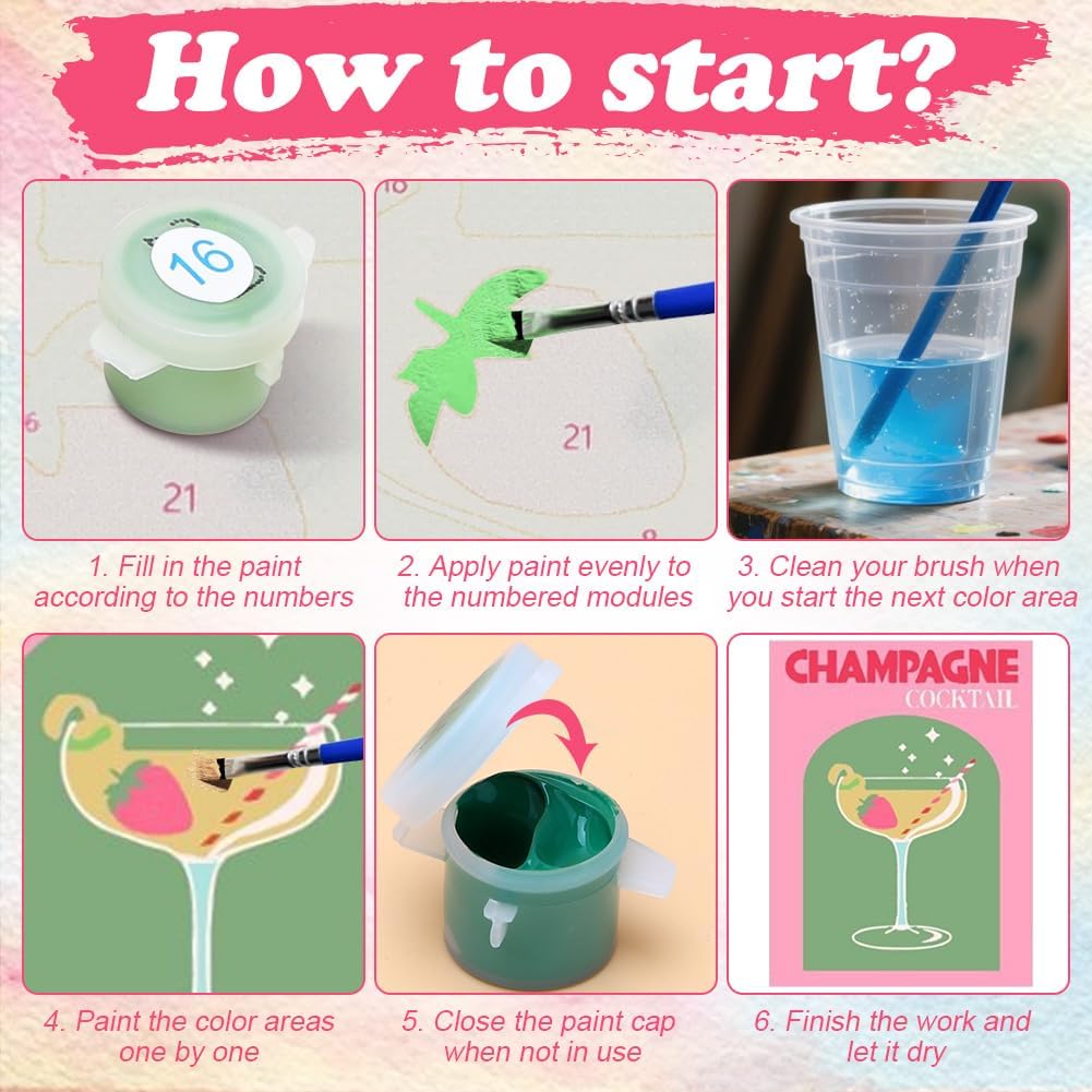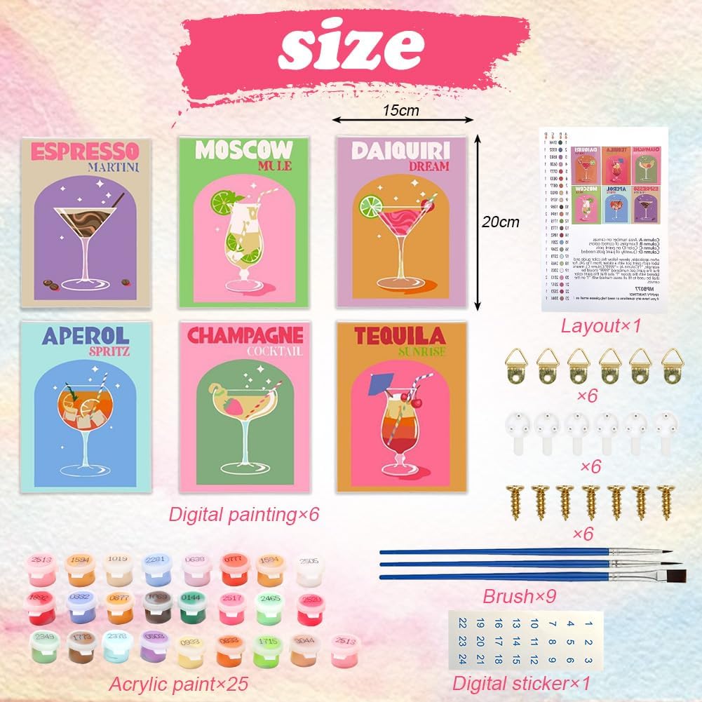 Materiali di alta qualità: la pittura dopo i numeri cocktail è fatta di colori acrilici sicuri, colorati e facili da dipingere, tela di cotone è finemente e chiaramente stampato, e pennelli sono comodi da tenere e dipingere liscio, rendendo il processo di creazione più piacevole. Il set comprende: 6 tele a olio acrilico dipinte a mano fai da te in formato 15 x 20 cm, 3 pennelli, colori sufficienti, 6 set di strumenti di montaggio. È possibile completare e decorare facilmente le immagini una volta terminate, senza strumenti aggiuntivi. Facile da dipingere: i set da cocktail sono adatti per tutti gli adulti e i bambini, seguire le istruzioni per dipingere digitalmente con i colori, è possibile completare facilmente l'opera d'arte per qualsiasi dipinto. E la dimensione della pittura a olio è compatta, facile da trasportare e posizionare, non importa a casa, in ufficio o in viaggio, puoi facilmente dipingere e creare. Pittura digitale a olio fai da te: Paint By Numbers è un'attività rilassante e antistress, un processo interessante può distrarre l'attenzione dalla vita e dal lavoro, lontano dalle radiazioni dei prodotti elettronici, è possibile completare questo set di dipinti a olio con la famiglia e i bambini, promuovere il rapporto genitore-figlio, migliorare la capacità e la creatività dei bambini. Regalo ideale: dopo che la pittura digitale a olio per adulti è pronta, può essere utilizzata per decorare la tua stanza o come regalo per amici, familiari e amanti per compleanni, matrimoni, Natale e Ringraziamento.