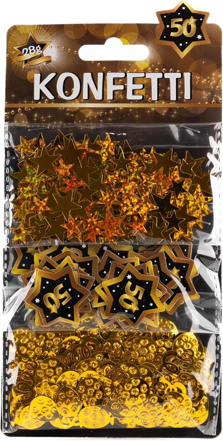Decorazione divertente per le feste: ca. 800 pezzi di coriandoli di plastica in un'armoniosa combinazione di diversi motivi. Semplicemente una bellissima decorazione per il cinquantesimo compleanno. Tutto da un unico fornitore: gli altri articoli da noi offerti, come stelle filanti, ghirlande o nastri barriera, sono ideali per creare una bellissima atmosfera ad ogni festa di compleanno. Cattura l'attenzione: il numero 50 su sfondo nero e oro è una decorazione di compleanno aggraziata, elegante e distinta. Per un arredo indimenticabile per il cinquantesimo compleanno. Per uomini e donne: adatto come decorazione per il 50° compleanno per uomini e come decorazione per il 50° compleanno per donne. Adatto anche come regalo per il cinquantesimo compleanno! Facile da usare: tutti gli articoli decorativi sono rapidi da installare e da rimuovere e vengono smaltiti in modo rispettoso dell'ambiente. Per una decorazione da uomo per il cinquantesimo compleanno di successo.