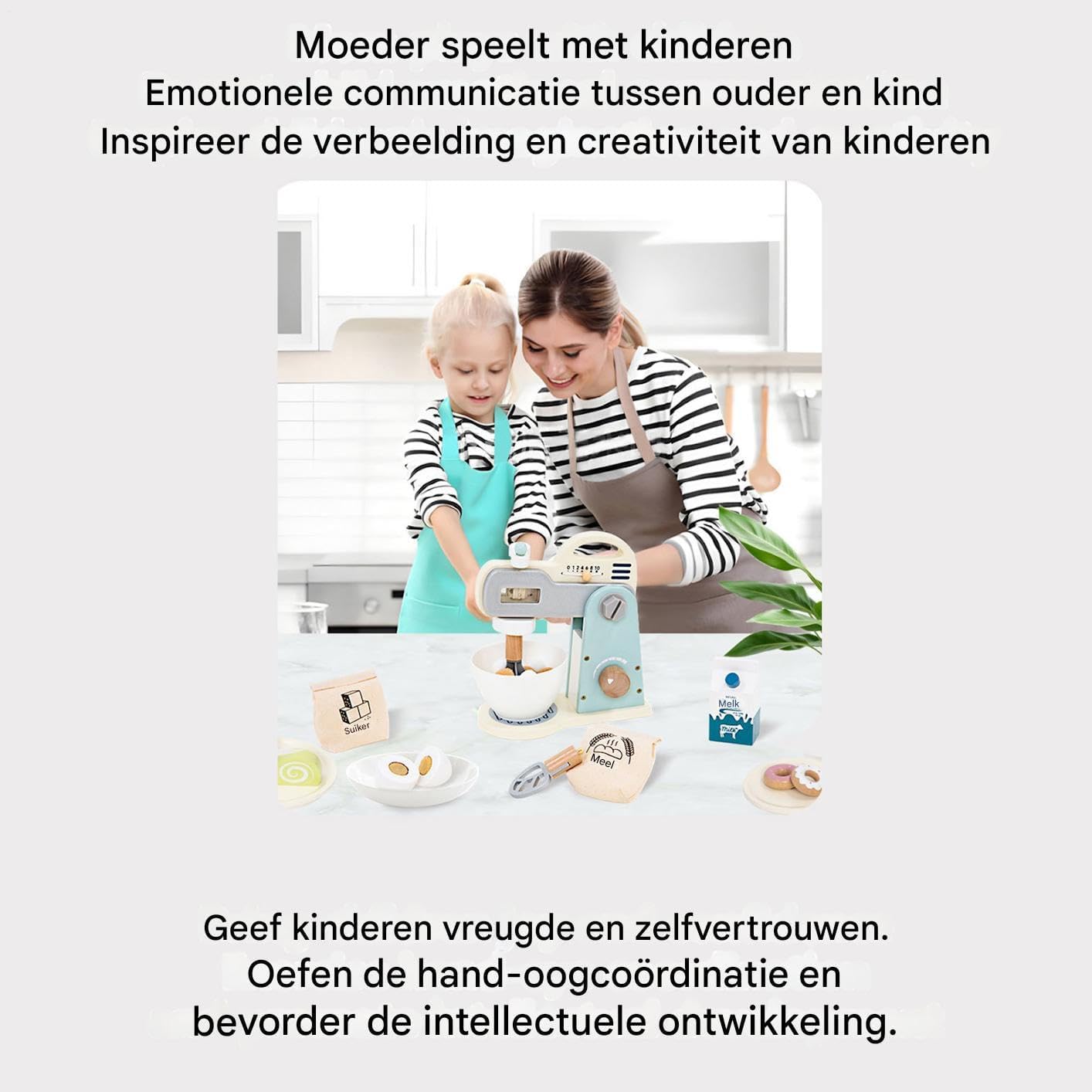 Esplorazione educativa: promuove la scoperta creativa con autentiche funzioni di miscelazione, sviluppa abilità pratiche attraverso il gioco tangibile. Coltiva la curiosità sulle basi culinarie e sostiene la crescita cognitiva durante le giocose avventure in cucina Aspetto elegante: con superfici lucide e accessori dall'aspetto reale, questo mixer giocattolo aumenta l'esperienza di realtà quando si finge di giocare. Le fruste scorrevoli e i pulsanti tattili offrono un'esperienza sensoriale coinvolgente. Materiale sicuro: realizzato in robusto legno innocuo con bordi lisci, questo mixer giocattolo garantisce un gioco sicuro per bambini. La struttura robusta mantiene i giochi entusiasti al sicuro per un divertimento fantasioso. Set da forno completo: questo mixer giocattolo include un mixer, una confezione, uova e diversi accessori per imitare i passaggi di cottura finti. I bambini possono mescolare ingredienti, rompere e versare le uova, stimolando il gioco di ruolo fantasioso come mini panettieri e sviluppa la creatività in cucina attraverso il gioco pratico Comodo da portare in viaggio: gioco fantasy sempre e ovunque con questo leggero mixer giocattolo. Il design salvaspazio consente una facile conservazione in scatole di giocattoli o zaini, ideale per casa, feste o giochi all'aperto. La costruzione compatta garantisce portabilità e durata organizzate per le avventure creative dei bambini.