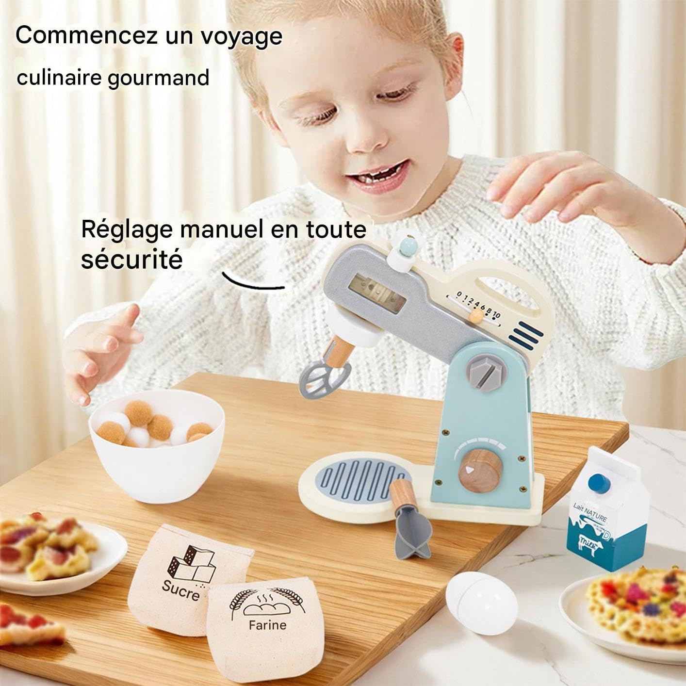 Gioco d'imitazione immersivo: risveglia la curiosità culinaria con un mixer giocattolo e accessori vivi tra cui uova e contenitori di latte. I giovani chef ricreano scenari di pasticceria, imparando la sequenza e la coordinazione attraverso movimenti realistici di rata, rottura e mescolando in fantasiose avventure culinarie. Design accattivante: colori vivaci che stimolano la creatività, texture dettagliate e proporzioni realistiche per giochi d'imitazione culinaria immersivi. Struttura compatta adatta per mani piccole. Materiale Premium: realizzato in legno naturale con una finitura sicura, questo robusto mixer giocattolo garantisce una maneggevolezza sicura. La sua struttura rigida evita qualsiasi flessione, stabilità durante i giochi di imitazione culinaria interattivi per. Sviluppo creativo: stimola l'immaginazione e la curiosità culinaria attraverso giochi di ruolo interattivi. Rafforza l'apprendimento pratico attraverso movimenti di miscelazione realistici, sviluppando le prime abilità culinarie risvegliando l'interesse per la preparazione alimentare tra i giovani. Facile da trasportare: frullatore leggero per giochi spontanei a casa o all'aperto. Profilo sottile scivola in contenitori e bagagli, costruzione leggera per autonomia durante le avventure immaginarie.
