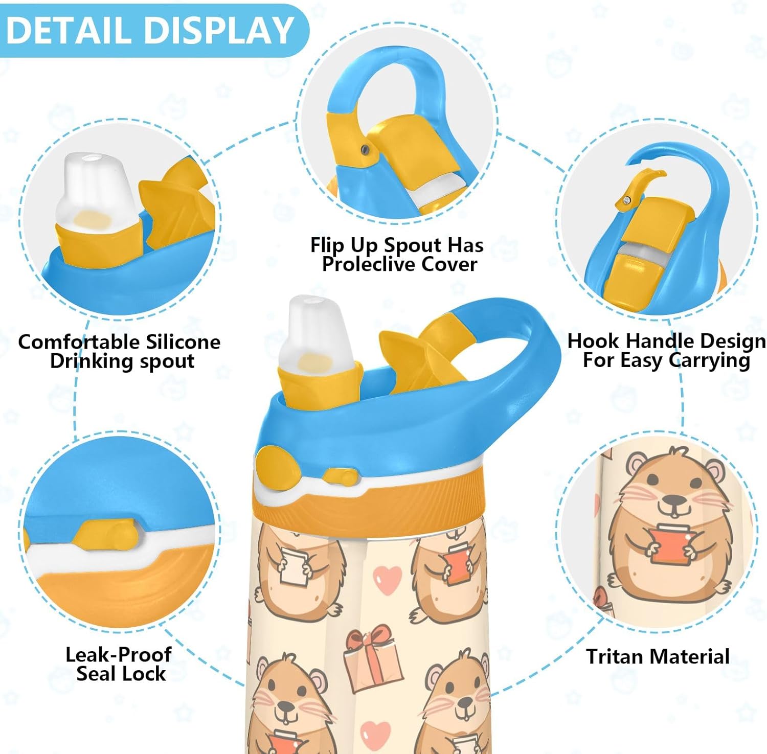 Materiale salutare: realizzato in tritan sicuro, può essere completamente smontato per una facile pulizia. Design funzionale: il boccaglio con cannuccia in silicone si adatta alla forma della bocca dei bambini per sorseggiare comodamente. La copertura antipolvere mantiene il boccaglio pulito e igienico. Portatile: la nostra borraccia è leggera con manico a gancio per un facile utilizzo a scuola, adatta per tutti i tipi di attività all'aperto e al chiuso. Copertura igienica del beccuccio: il coperchio del beccuccio protegge le superfici di contatto e ha una chiusura a scatto per tenerlo chiuso, evitando perdite e fuoriuscite. Quando è il momento di bere, il coperchio di azione consente il funzionamento con una sola mano e il beccuccio si apre facilmente premendo un pulsante. Rimani istrutti tutto il giorno: le nostre borracce trasparenti da 473,6 ml sono perfette per le esigenze quotidiane dei tuoi bambini. Perfetto per escursioni, ciclismo, ciclismo, campeggio, corsa, picnic o qualsiasi altro sport a casa, in palestra e a scuola.
