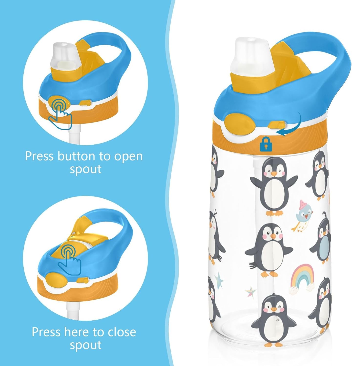 Materiale salutare: realizzato in tritan sicuro, può essere completamente smontato per una facile pulizia. Design funzionale: il boccaglio con cannuccia in silicone si adatta alla forma della bocca dei bambini per sorseggiare comodamente. La copertura antipolvere mantiene il boccaglio pulito e igienico. Portatile: la nostra borraccia è leggera con manico a gancio per un facile utilizzo a scuola, adatta per tutti i tipi di attività all'aperto e al chiuso. Copertura igienica del beccuccio: il coperchio del beccuccio protegge le superfici di contatto e ha una chiusura a scatto per tenerlo chiuso, evitando perdite e fuoriuscite. Quando è il momento di bere, il coperchio di azione consente il funzionamento con una sola mano e il beccuccio si apre facilmente premendo un pulsante. Rimani istrutti tutto il giorno: le nostre borracce trasparenti da 473,6 ml sono perfette per le esigenze quotidiane dei tuoi bambini. Perfetto per escursioni, ciclismo, ciclismo, campeggio, corsa, picnic o qualsiasi altro sport a casa, in palestra e a scuola.