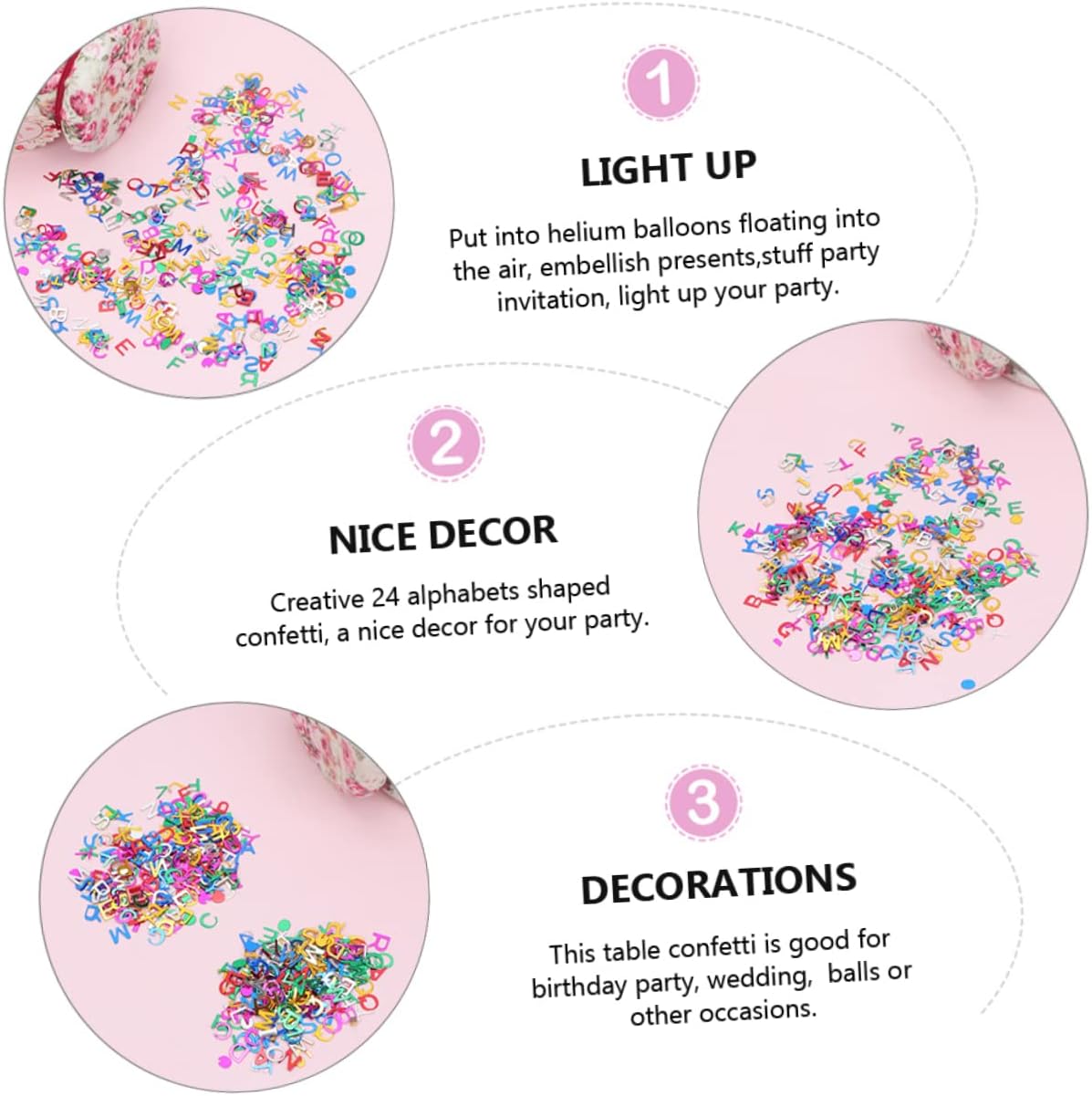 Cospargere alfabeti: con pregevole fattura, ed , un bel decoro per tue feste, decorazioni Articoli per feste compleanno: design caratteristico colori e luminosità piacevoli, per feste matrimonio Decorazioni per matrimoni: con questi meravigliosi colorati che saranno un'aggiunta al tuo compleanno o festa, decorazioni da tavola Da tavola: hanno una superficie e bordi lisci, con una lavorazione squisita, da festa Decorazione per matrimoni: leggera e portatile, da usare e facile da trasportare, matrimonio