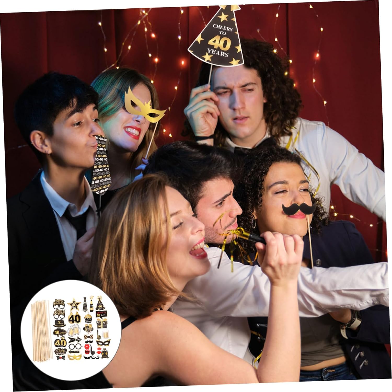 Accessori portatili: il set include diversi stili creativi di accessori fotografici, così puoi sceglierne uno in base alle tue esigenze, articoli per feste Ampia applicazione: ideale per la tua festa di compleanno, auto-fotografia, fotografia fotografica o ovunque tu voglia, adatto a tutte le persone, decorazione per feste, oggetti di scena per photo booth Accessori per cabine fotografiche: bellissimi e divertenti accessori per foto che renderanno la festa ancora più speciale!, accessori portatili Decorazione per torta: ottimo sfondo fotografico o oggetti di scena per servizi fotografici con la famiglia e gli amici, oggetti di scena per photo booth Accessori per foto di compleanno: colori vivaci, un'atmosfera e rendono ogni luogo bello e unico, accessori per photo booth