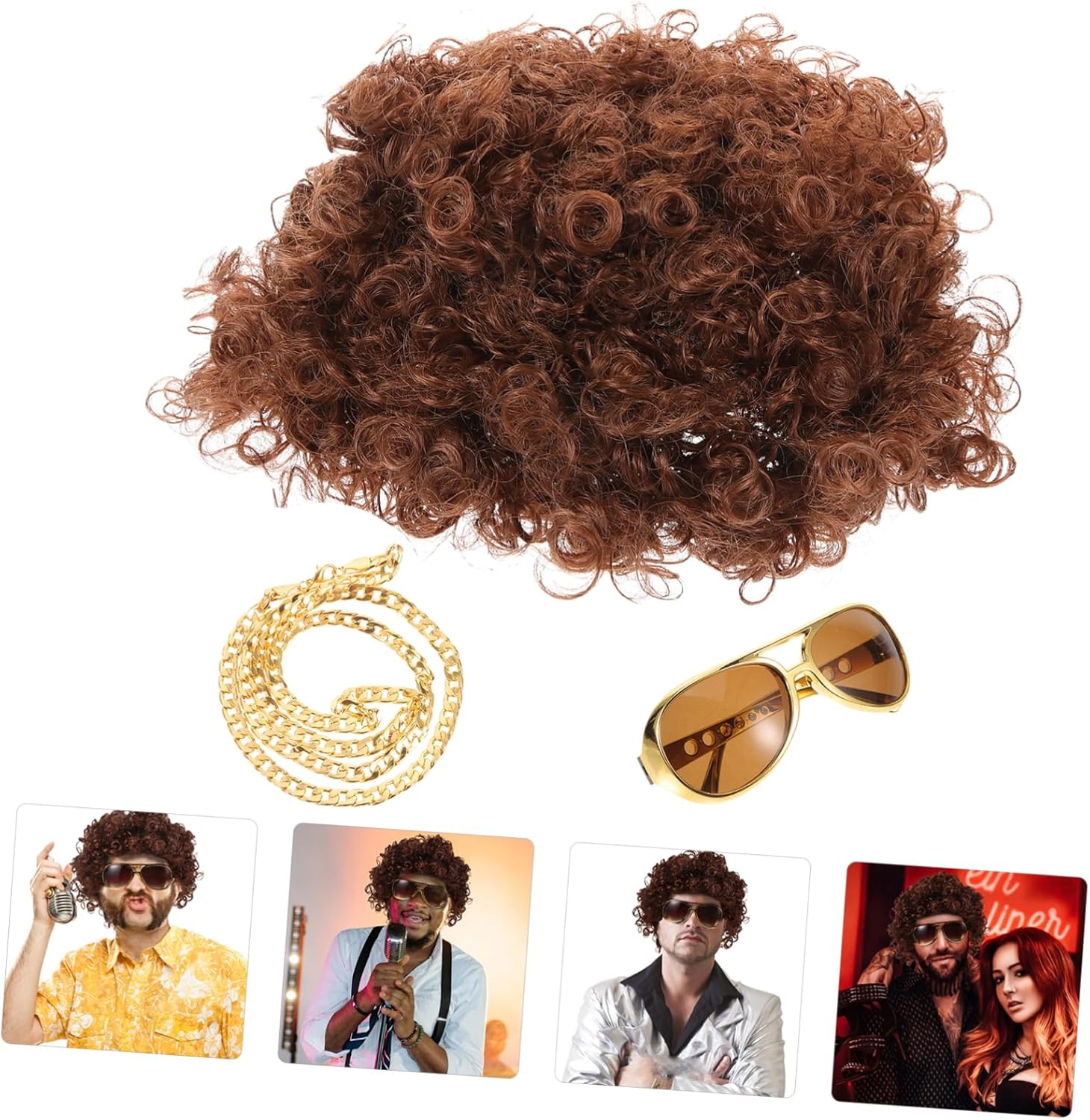 Stile disco alla moda: gli accessori disco anni '70 per uomo sono accattivanti e unici, adatti per feste a tema discoteca, accessori disco uomo, anni '70 per uomo Parrucca afro da uomo: il set cosplay può essere ampiamente utilizzato in molte occasioni come feste di halloween, feste cosplay, carnevale ecc., parrucca anni '70 Stile disco: gli accessori per costumi anni '70 sono pieni di stile disco alla moda, rendendoti il centro dell'attenzione alle feste, uomini in costume anni '70, accessori da discoteca Accessorio per cosplay: leggero e comodo da indossare, divertente e creativo, unico ed elegante, pratico per feste in maschera, accessori da discoteca anni '70 per uomo. Parrucca da uomo per feste cosplay: facile da indossare e da rimuovere, può essere riutilizzata più volte, per rendere la tua festa più divertente e goderti la tua festa divertente, parrucche anni '70 per uomo