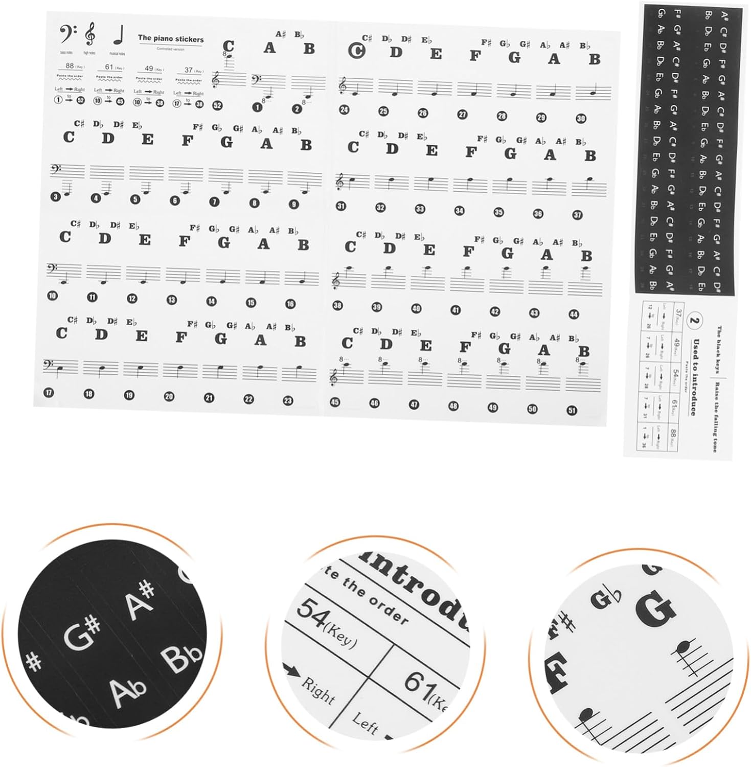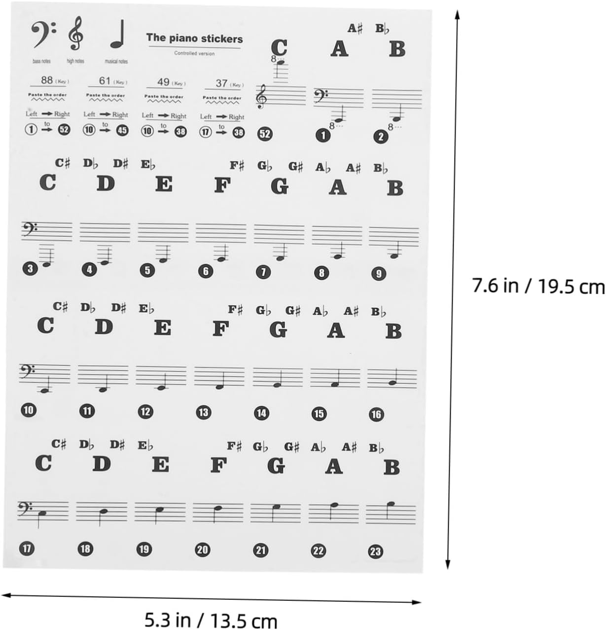 Adesivo autoadesivo per tastiera di pianoforte: ha un buon effetto visivo e facile da leggere, adesivo pratico per esercitarsi e padroneggiare rapidamente, etichette rimovibili per le note della tastiera di pianoforte Nota sugli adesivi per tasti di pianoforte: il design ragionevole rende le strisce della tastiera di pianoforte adatte agli organi elettronici, il che è molto comodo da usare. Adesivi sostitutivi della tastiera Note adesive per pianoforte: la funzione principale è aiutare i principianti a padroneggiare il pianoforte più velocemente, sviluppare buone abitudini per suonare il pianoforte per principianti Adesivi per note musicali: questi innovativi adesivi per tastiera di pianoforte per principianti possono aiutarti a padroneggiare rapidamente il pianoforte Adesivi per tasti di pianoforte: design professionale e pratico con un bell'aspetto, facile da installare e rimuovere, adesivi per principianti di pianoforte