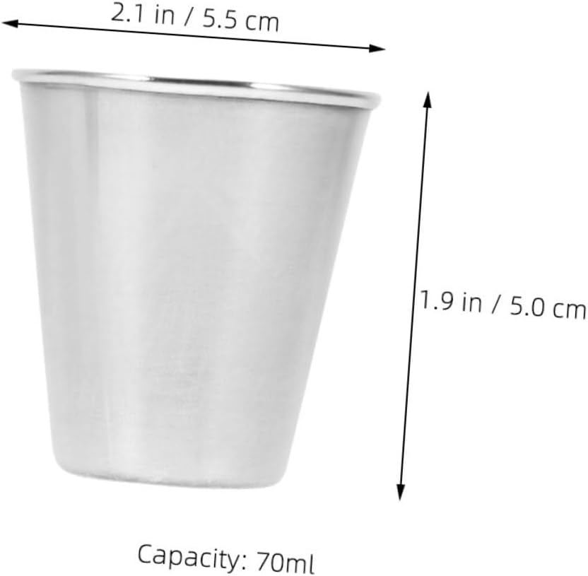 Mini tazze - realizzate con buona maestria e puoi usare tazze da festa - con una capacità di 70 ml, questo set di bicchierini è da utilizzare durante il picnic o per bere con un amico o la persona amata. Tazza per bevande: questo bicchierino è l'aggiunta perfetta alla tua attrezzatura da esterno per il campeggio, l'escursionismo o una mini tazza. Piccola: questa versatile tazza da vino può essere utilizzata sia per bere che come tazza per condimenti, rendendola un'ottima aggiunta a qualsiasi pasto o spuntino all'aperto. Bicchiere per porzioni in metallo per bevande: realizzato in acciaio inossidabile, questo bicchiere per bevande è costruito per resistere ai rigori delle attività all'aperto,