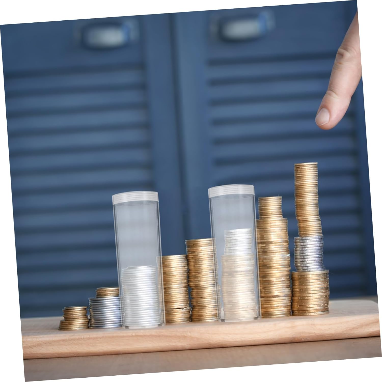 Ideale per i collezionisti: che tu sia un collezionista esperto o appena alle prime armi, questi tubi di stoccaggio sono essenziali per mantenere una collezione di monete organizzata e protetta, tubi per monete, tubo di stoccaggio Facile da pulire: la superficie liscia dei tubi è facile da pulire, mantenendo la soluzione di stoccaggio priva di sporco. Tubo protettivo, tubi rotondi per la conservazione in plastica trasparente. Organizzazione efficiente: puoi classificare le tue monete in base al taglio o al taglio, semplificando la gestione e l'accesso alla tua collezione. Tubo portamonete, contenitori portamonete per collezionisti di monete Soluzione salvaspazio: il design sottile di questi tubi portamonete consente un uso efficiente dello spazio, in modo che possano essere facilmente riposti in cassetti, scaffali o vetrine senza occupare molto spazio. Distributore di monete, contenitore per tubi per monete Barriera protettiva: i tappi ermetici formano una barriera protettiva contro lo sporco e garantiscono che le monete siano conservate in modo pulito e sicuro. tubo trasparente, tubi di stoccaggio