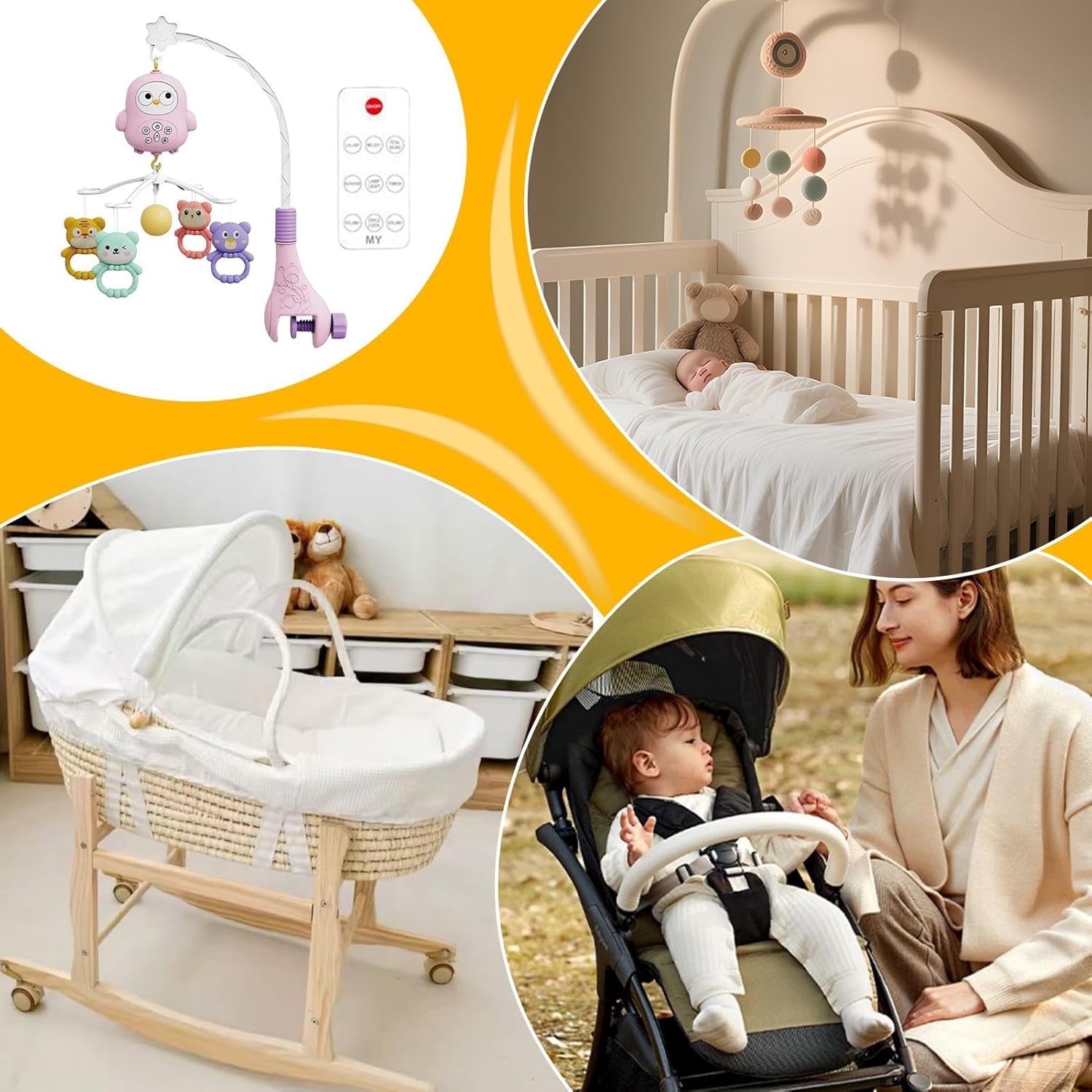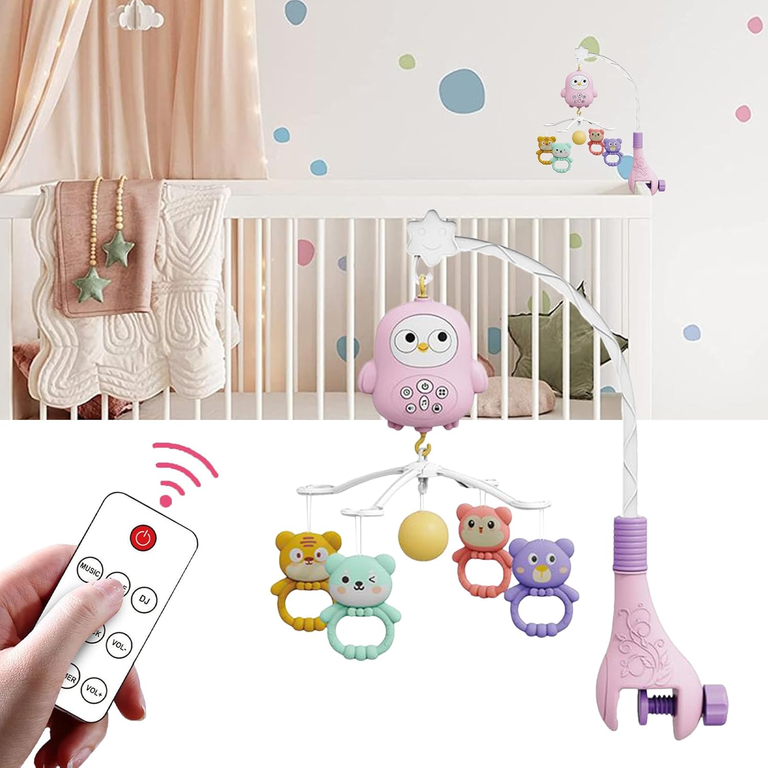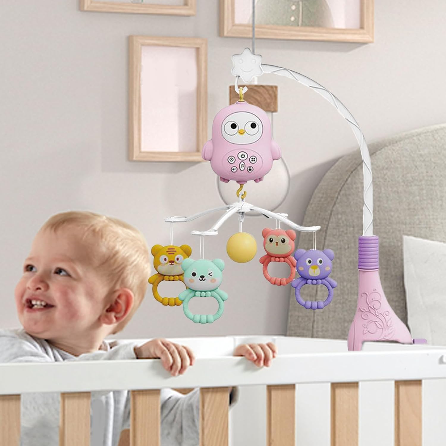 Calma le emozioni: il controllo sensibile al tocco combina melodie legate al ritmo con movimenti morbidi per rilassamento senza sforzo e fasi di sonno ininterrotte Compagno di sonno calmante: funge da piacevole luce a forma di utero con un bagliore che respira calmante, prolunga i cicli di sonno profondo grazie a movimenti rotatori fluidi per una delicata calma visiva Installazione flessibile: montaggio e smontaggio senza problemi con sistema a clip modulare. La sospensione regolabile garantisce compatibilità con diversi modelli di culle e si adatta allo sviluppo Struttura robusta: sospensione monopezzo con connettori senza chiusura per una stabilità duratura. Il blocco antiscivolo integrato mantiene il mobile saldamente in posizione. La struttura arrotondata supporta la protezione nel letto. Promozione dell'udito: supporta la capacità uditiva riducendo le reazioni di spavento; assicura tranquillità grazie alla riproduzione in loop di ninne nanne selezionate e suoni naturali per un'atmosfera rilassante