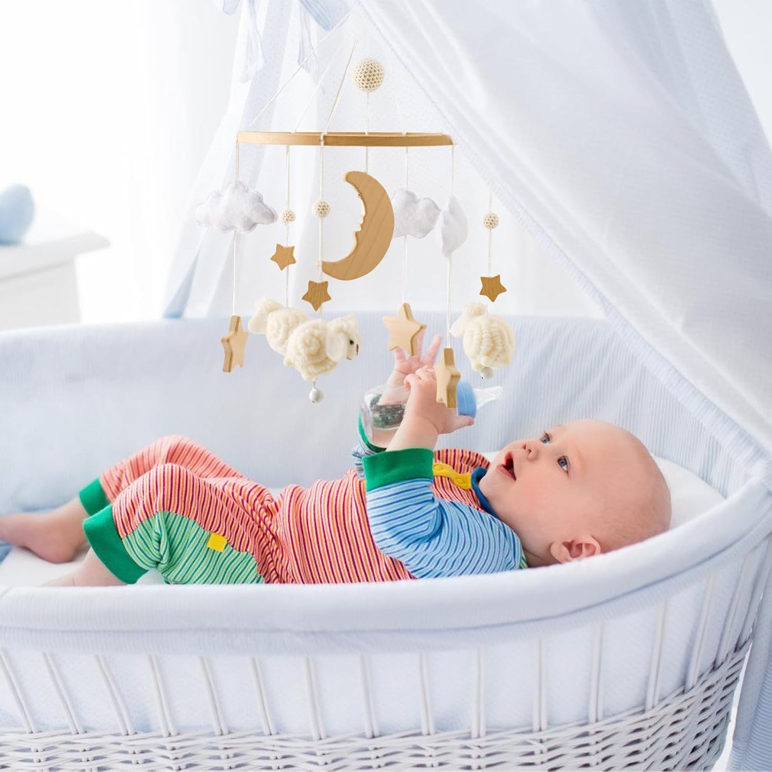 Regalo : Mobile per culla che unisce funzionalità e fascino, ideale come regalo per battesimi, compleanni o feste del primo mese. Aggiunge eleganza alla cameretta e crea momenti familiari felici con il suo design accattivante e utilità pratica Materiale di Qualità: Realizzato in legno anti-statico, offre texture delicata sulla pelle e design anti-scheggia per massima sicurezza, garantendo durabilità prolungata e comfort durante l'utilizzo Sviluppo Uditivo: Migliora le capacità uditive attraverso suoni delicati, combinati con colori vivaci che favoriscono un ambiente e potenziano la crescita sensoriale Stimolazione multisensoriale: Attrae l'attenzione di e bambini promuovendo la crescita cognitiva con elementi interattivi, mantenendo un'estetica versatile e adatta a tutti i generi. Decorazione ambientale: Arricchisce l'ambiente con design innovativo e calmante, promuovendo lo sviluppo infantile e l'apprendimento di forme e colori attraverso un'estetica piacevole e armoniosa.