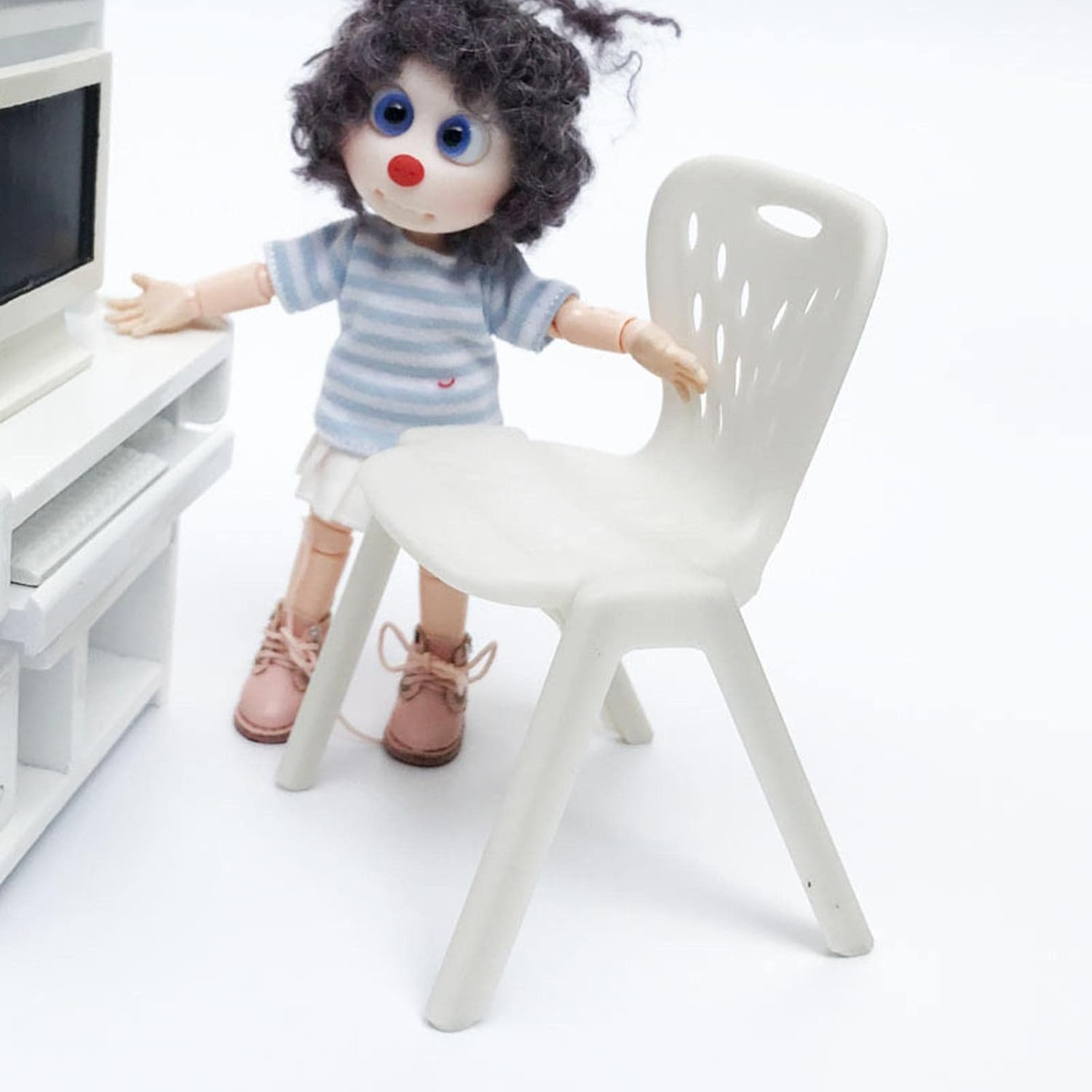 Scala: 1:10 Adatto per casa delle bambole in scala 1:10. Materiale: plastica Design squisito, perfetto per la tua casa delle bambole. Sedia in miniatura davvero carina.