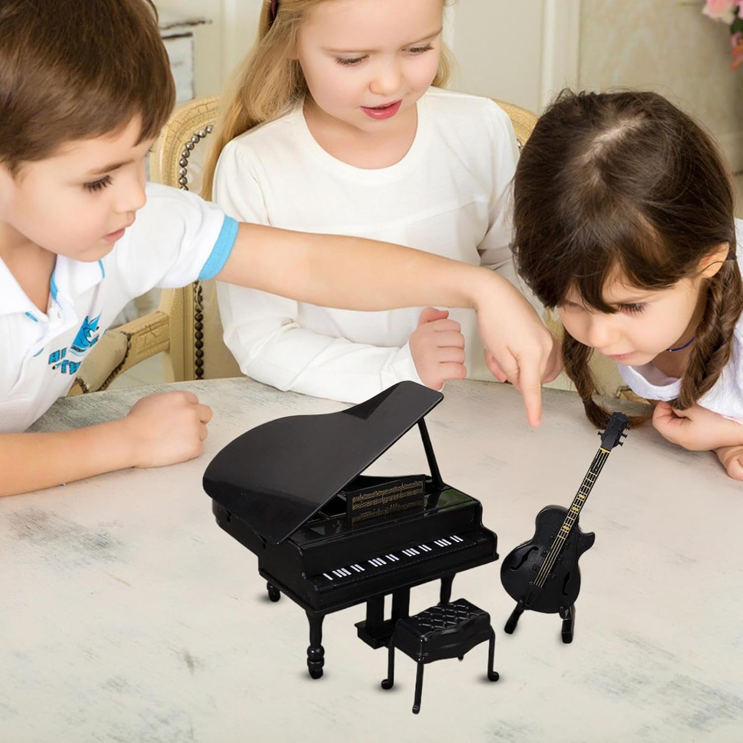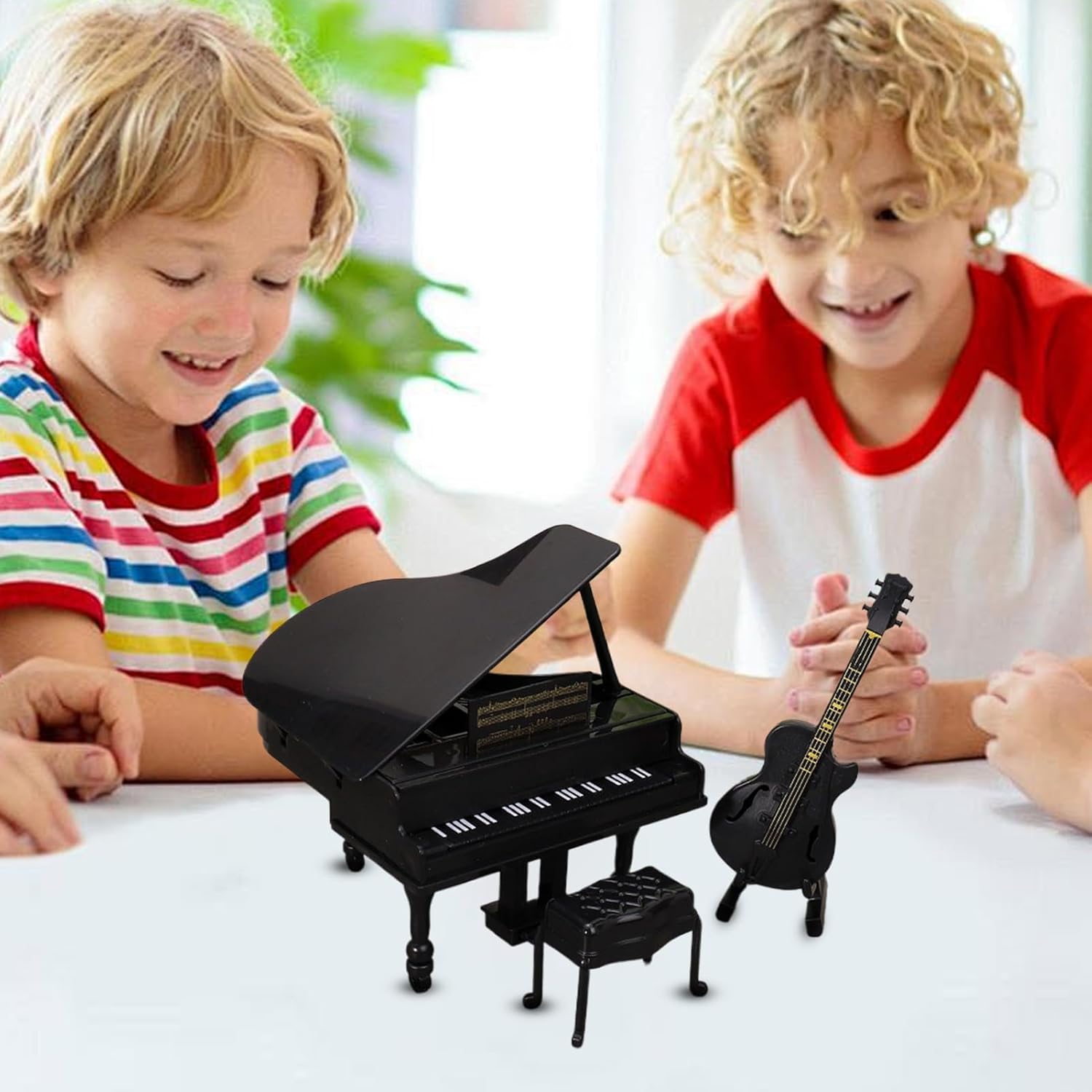 Squisita lavorazione: migliora la tua collezione in miniatura con questo giocattolo modello per pianoforte meticolosamente realizzato, con dettagli raffinati e squisiti che ricreano fedelmente l'aspetto di veri strumenti per un autentico tocco di arte Diversity di scena migliorata: aggiungi un tocco vibrante al tuo evento con il modello di piano. Questo pacchetto include vari musicali e oggetti di scena come una chitarra, sgabelli e altro, rendendo la scena più colorata e migliorando la giocabilità generale e la visibilità Dimensioni portatili: il design compatto ed elegante di questo modello di piano consente un posizionamento senza sforzo in qualsiasi stanza, rendendolo un'aggiunta eccellente all'arredamento della casa. Le sue dimensioni in miniatura lo rendono ottimo per spazi più piccoli, come camere per bambini, scrivanie e armadi per esposizioni Aumenta la creatività di tuo figlio: il nostro modello per pianoforte per bambini è ottimo per sviluppare creatività e immaginazione, con un design unico che incorpora stoviglie di lino e motivi giocosi. Indossare resistenti: la costruzione sicura e di lunga durata di questo modello per pianoforte rende ottimo per le aree giocattoli o le stanze dei bambini. Realizzato con materiali eccellenti che confermano l'uso sostenibile