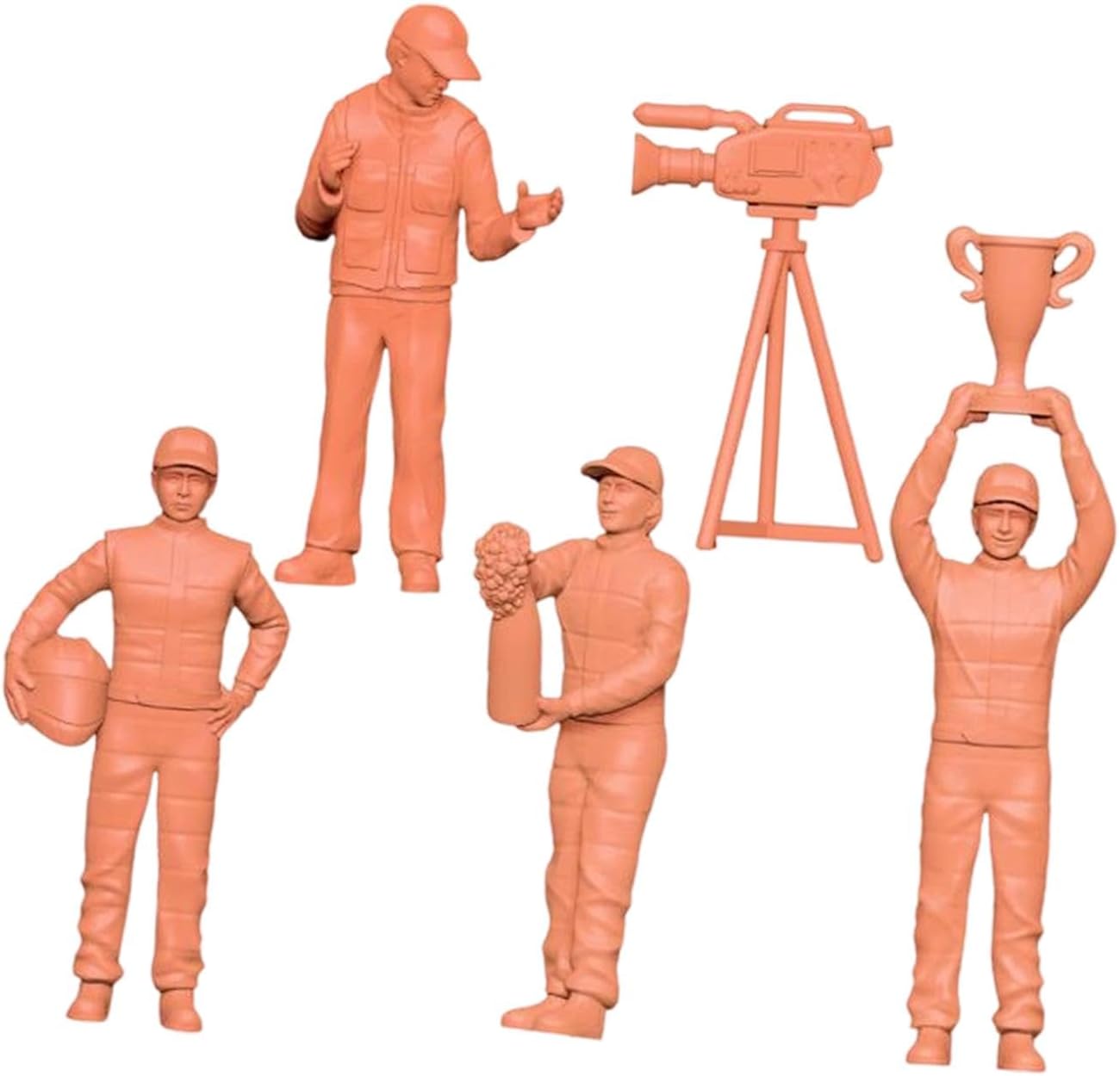 【Qualità Premium】: Realizzate in materiale di resina di qualità con meticolosa attenzione ai dettagli, queste statuette in miniatura sono perfette sia per essere esposte che per essere collezionate 【 Artigianato】: tecniche di alta precisione, i personaggi in miniatura presentano finiture estremamente dettagliate e realistiche per un'impressionante esposizione in miniatura 【Esperienza di scena realistica】: include tre personaggi di da corsa, un personaggio di fotografo e un modello di macchina fotografica, che ti consentono di costruire micro paesaggi dinamici che aumentano il divertimento e il valore collezionabile 【Alta simulazione】: ogni aspetto è accuratamente realizzato per offrire una realistica, rendendo questo set di da corsa ideale per appassionati di modelli che cercano autenticità 【Opzioni di visualizzazione versatili】: le figure del e del fotografo con modalità fotocamera sono ideali per vetrine di modelli o come decorazioni uniche per la scrivania dell'ufficio, aggiungendo carattere a qualsiasi spazio