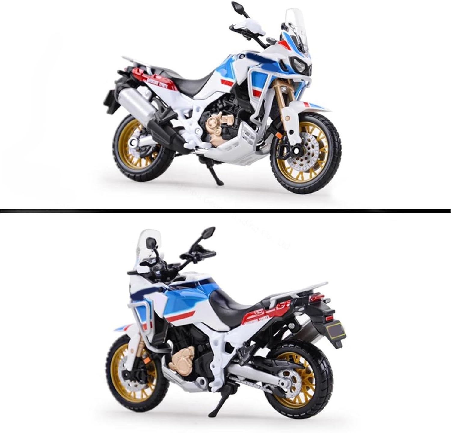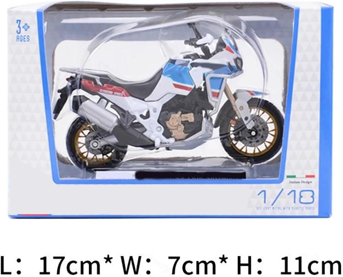 Modellini di motociclette giocattolo in scala 1:18 per Africa Twin Adventure Ruota anteriore e manubrio oscillanti da un lato all'altro, cavalletto mobile, ruote libere, modello di motocicletta simulata Modello di motocicletta, che lo rende un regalo unico e innovativo per adolescenti e adulti a Natale, Ringraziamento, compleanni, festa del papà, ritorno a casa e altre occasioni. Ottimo come regalo, collezione, souvenir, arredamento, casa, ufficio e sala studio. La finitura liscia e senza sbavature e la vernice lucida e uniforme dimostrano una maestria artigianale eccezionale. Questo modello incarna lo stile di una motocicletta, soddisfacendo l'amore degli appassionati per i modelli nostalgici.