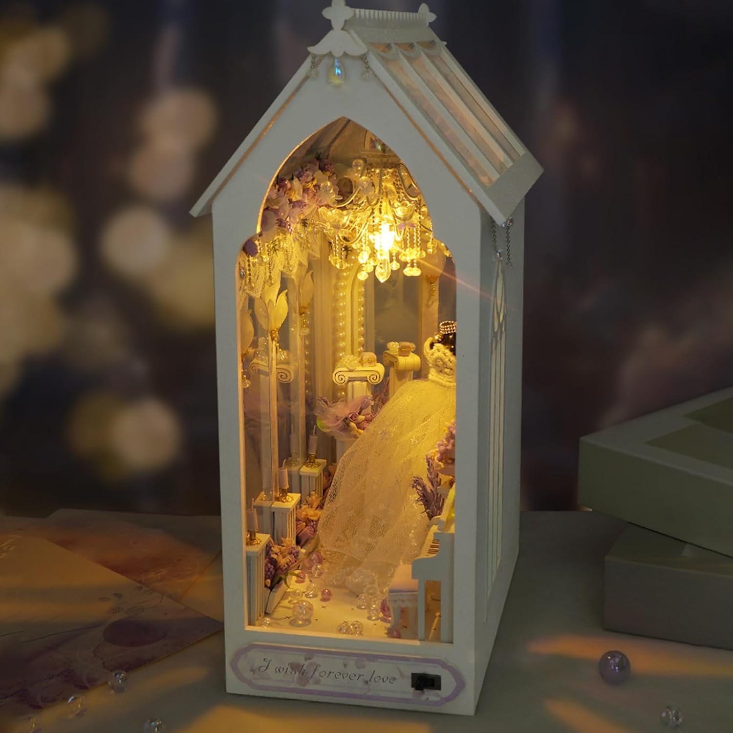 Regalo elegante: perfetto per feste ed eventi memorabili. Delizia clienti o parenti con la sua fede di artigianato e fascino letterario. Design compatto ma impatto, adatto per regali informali o regali aziendali professionali. Atmosfera luminosa da sogno: i LED caldi integrati offrono un'atmosfera romantica al tuo scaffale. La loro sottile lucentezza dona stile alla tua decorazione ed elimina la monotonia dei classici reggilibri. Design accattivante: elementi architettonici europei meticolosamente lavorati si fondono con concetti decorativi asiatici per ridefinire lo spazio degli scaffali. Questa miscela coesiva arricchisce gli interni moderni con ricchezza culturale. Assemblaggio Valorer: questo kit di modellini libro richiede un attento assemblaggio manuale che sviluppa pazienza e concentrazione, offrendo una profonda soddisfazione man mano che ogni pezzo si incastra perfettamente per creare un diorama letterario unico. Design Incantato: il layout nuziale in chiesa di questo kit è artisticamente realizzato. Genera una presenza magica che migliora l'attrattiva visiva delle biblioteche attraverso una sottile espressione di romanticismo stravagante.