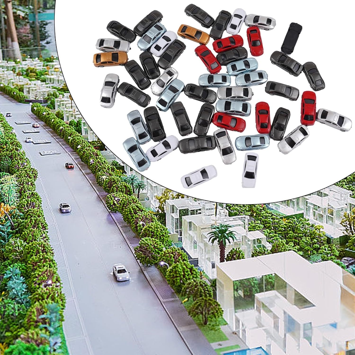 Modellino di auto in plastica, 50 pezzi, per scala N 1 150, layout di scena ferroviaria, modelli di costruzione, paesaggi esterni e uso educativo