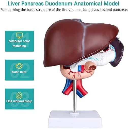 PRECISIONE ANATOMICA: Rappresentazione altamente dettagliata del fegato, del pancreas e del duodeno che mostra precise relazioni strutturali e caratteristiche anatomiche chiave Valore educativo: perfetto aiuto didattico per studenti di medicina, professionisti sanitari e educazione dei pazienti con strutture anatomiche chiaramente etichettate Costruzione: il materiale resistente di grado medico garantisce una qualità duratura e un aspetto realistico per visualizzazione professionale e apprendimento pratico CARATTERISTICHE DEL DISPLAY: Montato su una base robusta con parti rimovibili per dimostrare strutture interne e relazioni di organi DIMENSIONI: Modello a grandezza naturale con rappresentazione dettagliata dei vasi sanguigni, dei dotti biliari e dei tessuti circostanti per uno studio completo