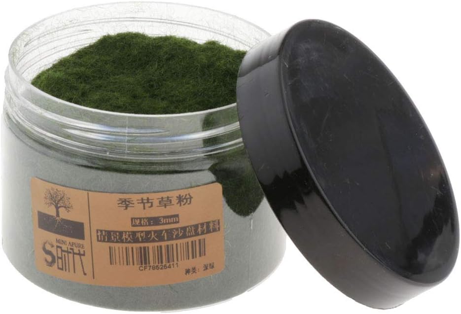Perfetto per ferrovia e layout di edifici. Utilizzare per vari modelli di tavoli da sabbia, modelli di costruzione, creazione di scene, albero modello fai da te. Metrial: resina, imballaggio: bottiglia trasparente da 260 ml. L'erba è lunga circa 3 mm, l'erba in bottiglia da 260 ml può diffondersi su un piano di 50 x 50 cm. Prodotto di alta qualità.