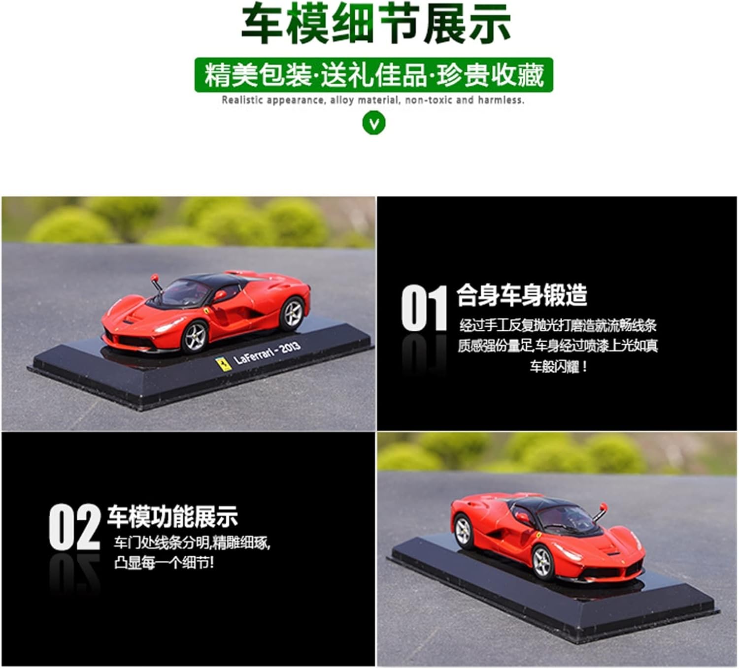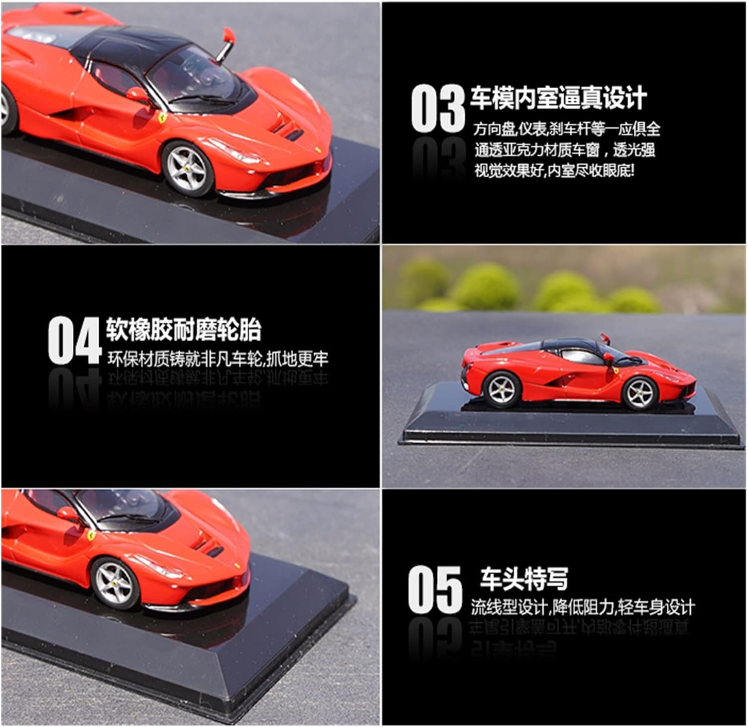Materiale del modello: il corpo principale del modello è realizzato in materiale in lega, robusto e non facilmente deformabile.Le ruote squisite e le gomme in gomma sono elastiche e le linee sono chiare.Il modello generale dà una sensazione pesante. Funzione di dettaglio: l'auto modello ha una decorazione interna ricca e delicata e dettagli di proporzioni reali;il corpo alla moda e raffinato presta attenzione ai dettagli, ripristina lo stile della vera macchina e l'aspetto prepotente è accuratamente realizzato e lucidato ripetutamente ed è delicato come le mani! Buon regalo o collezione: questo modello è molto simile alla vera auto in apparenza, puoi regalarlo ad amici o familiari, aumentare l'affetto con la famiglia e gli amici, portare una conoscenza dell'auto più corretta;Modellini d'atmosfera ed eleganti Le auto sono l'ideale per gli amanti dei modellini di auto, come decorazioni o espositori da collezione. Un bellissimo ricordo: questo modellino di auto è realizzato con vernice spray colorata, delicata sulla pelle ed ecologica, con una riproduzione squisita e perfetta di tutti i dettagli dell'auto reale. Adatto agli appassionati di modellismo, da acquistare e collezionare, come decorazione per la casa, per auto e anche come regalo perfetto per esprimere il tuo cuore alla persona amata. Venite a trovarci: questo è un venditore di macchinine che opera nel settore da molti anni. I proprietari dei nostri negozi hanno un cuore infantile, pieno di amore, gentilezza e dolcezza. Buona qualità e prezzi bassi sono i punti di forza di questo negozio. Per qualsiasi domanda o esigenza, non esitate a contattarci.