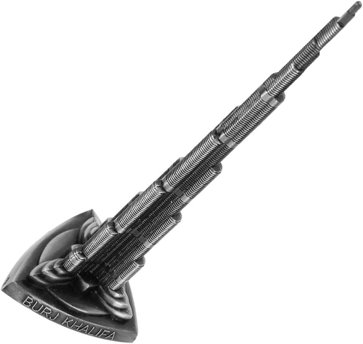 Accento domestico elegante: posiziona questo modello della Torre di Dubai in una camera da letto, in casa o su un tavolo da festa per creare un'atmosfera sofisticata. Il suo bellissimo aspetto funge da elemento d'arredo decorativo autonomo per un luogo romantico o elegante. Design vintage distinto: il design unico e delicato ha una trama vintage che è allo stesso tempo elegante e attraente. Questo modello della Torre Burj Khalifa si distingue come un raffinato pezzo di arredamento per la scrivania. Lega metallica resistente: realizzata in lega metallica solida per una struttura durevole e sostanziale. Il peso e la creazione del modello danno un senso tangibile della sua forma permanente, rendendolo più di un semplice accessorio. Un souvenir premuroso: può essere inviato come regalo elegante o souvenir ad amici, amanti o familiari. È un modo significativo per condividere un ricordo o una passione per l'arte e l'architettura, rendendolo un ricordo prezioso. Artigianato dettagliato: questo modello in miniatura mostra una lavorazione squisita e cattura un bell'aspetto. L'attenzione ai dettagli garantisce che questo sia un display fedele e attraente per il tuo ufficio o casa.
