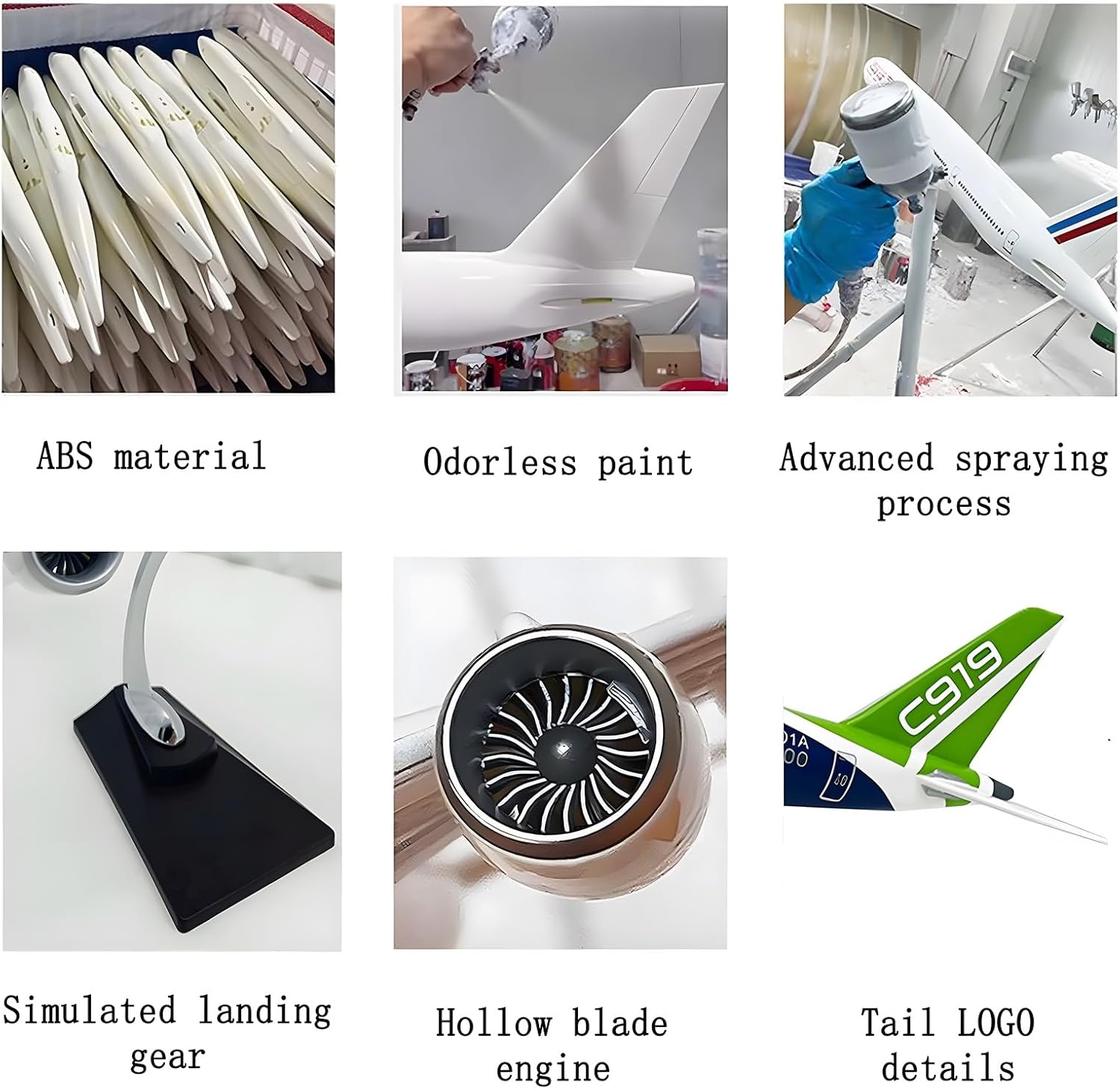 Autentico modello di aereo COMAC C-919: questo modello in scala 1:100, realizzato con cura, rappresenta fedelmente l'aereo COMAC C-919, misurando 15 pollici di lunghezza, 14,5 pollici di larghezza e 9 pollici di altezza, il che lo rende una straordinaria aggiunta alla collezione di qualsiasi appassionato di aviazione. Costruzione di qualità premium: il nostro modello di aereo COMAC C-919 è caratterizzato da una resistente carrozzeria in metallo con intricati dettagli in plastica, che garantisce un aspetto realistico pur mantenendo una struttura leggera di circa 950 g. Il design a scatto consente un facile assemblaggio senza bisogno di incollaggio. Regalo for gli amanti dell'aviazione: questo modello di aereo COMAC C-919 estremamente dettagliato non è solo un oggetto da collezione, ma è anche un ottimo regalo di compleanno o di Natale for amici e parenti che apprezzano la storia dell'aviazione e i modelli di aerei. Confezione raffinata: ogni modello di aereo COMAC C-919 viene fornito in una confezione di alta qualità che garantisce un trasporto e un'esposizione sicuri. La scatola del modello, ben protetta, include un supporto espositivo, che consente di esporre magnificamente questo modello in miniatura volante. Oggetto altamente collezionabile: con la sua straordinaria attenzione ai dettagli e l'autenticità, il modello dell'aereo COMAC C-919 è un must for i collezionisti. Il suo design raffinato e la qualità costruttiva lo rendono un pezzo ideale da esporre in qualsiasi casa, ufficio o spazio espositivo.
