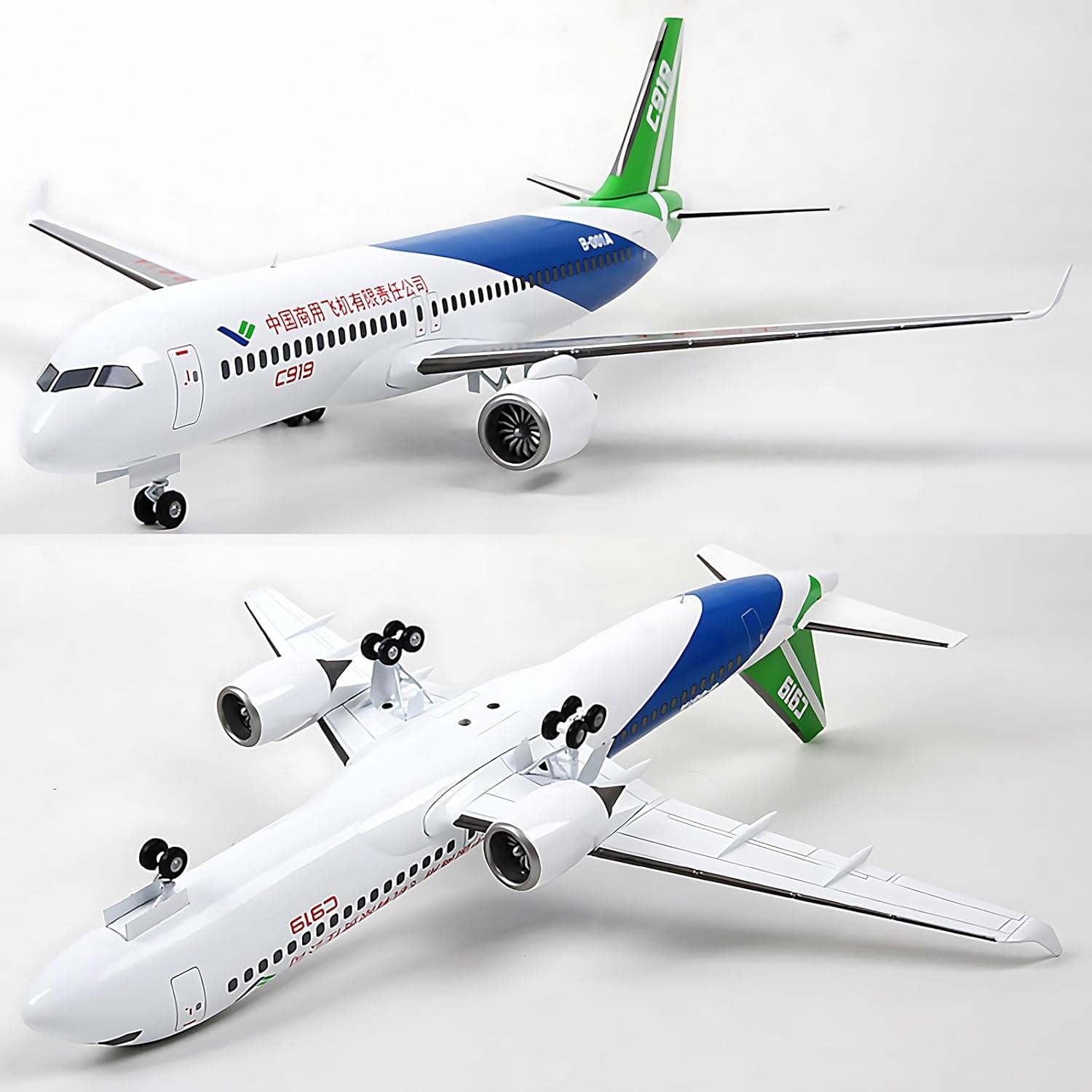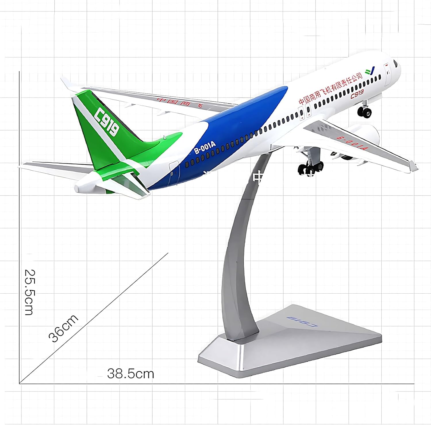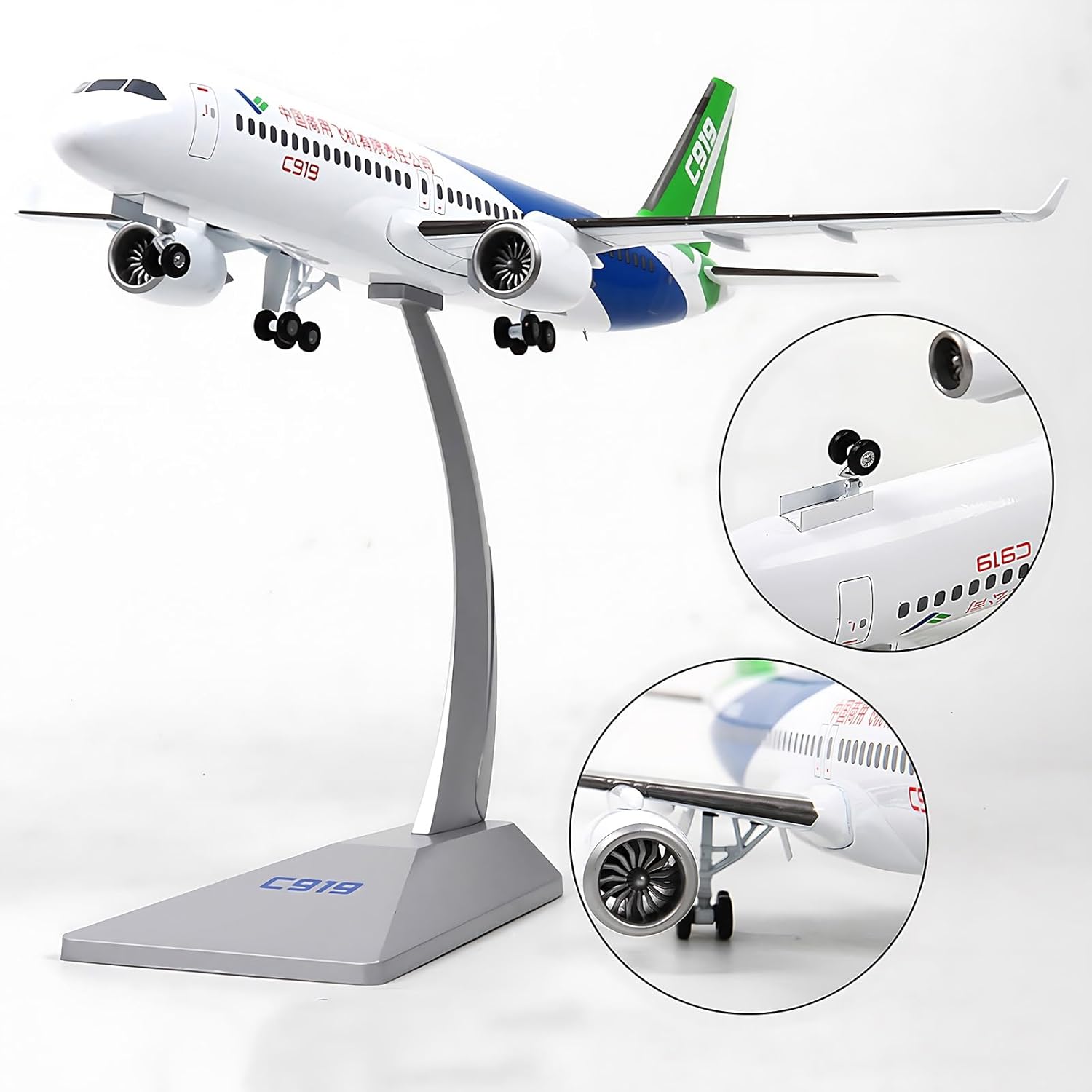 **Design innovativo**: il velivolo COMAC C-919 è progettato in conformità con i nuovi standard internazionali di aeronavigabilità, mettendo in mostra i progressi tecnologici e le caratteristiche uniche della Cina nel campo dell'aviazione. **Materiale di alta qualità**: caratterizzato da un modello in lega simulata, il corpo del velivolo COMAC C-919 è realizzato con un rivestimento in lega di alluminio con vernice elettrostatica argentata, che offre una sorprendente texture metallica che regala un'esperienza visiva accattivante. **Finitura di alta qualità**: Grazie all'utilizzo di un processo di verniciatura elettrostatica multistrato e di una serigrafia ad alta precisione, il COMAC C-919 Aircraft mantiene una consistenza e una durezza eccezionali, garantendo una finitura superiore che mette in risalto i dettagli intricati e la qualità artigianale. **Produzione artigianale**: ogni modello di aereo COMAC C-919 viene sottoposto a processi di fusione a gravità e rettifica manuale, rifiutando le tecniche di produzione di massa for creare oggetti da collezione di qualità da boutique, ognuno dei quali è un capolavoro unico. **Dettagli squisiti**: con una fusione meticolosa e una verniciatura a tampografia, il velivolo COMAC C-919 presenta stampi raffinati che dimostrano la dedizione all'eccellenza in ogni aspetto, rendendolo non solo un modello ma un tesoro da collezione.