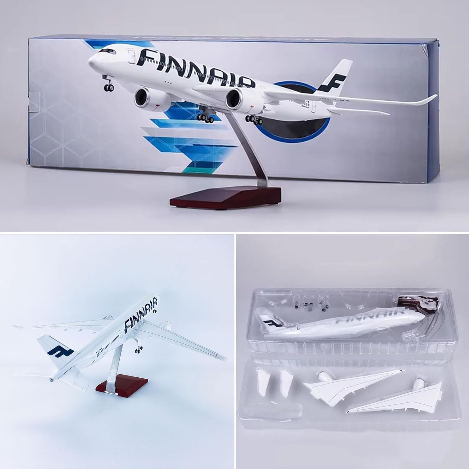 Aeromodello: 18,5 pollici 1:144 scala modello Jet modello aereo Finlandia A350-900 con ruote modello aereo, 18,5 x 17,3 x 8,3 pollici. Materiale Resina Lega ABS Collezionabili pressofusi: meticolosa attenzione ai dettagli, dalla piastra motore alla vernice, utilizzando resina di alta qualità, base solida e staffe metalliche. I modelli sono fedeli alla scala, i modelli sono realizzati in materiale di resina pesante di alta qualità che ha un aspetto fantastico, i modelli sono fusoliera solida Facile da montare: il modello con design a scatto semplice può essere facilmente installato in soli tre passaggi, il design a scatto consente di assemblare i nostri modelli con facilità, meno tempo for montarli e più tempo for mostrarli, i modelli sono dotati di un supporto espositivo, i modelli sono fantastici come souvenir o regali for una persona speciale Dimensioni in scala realistiche: stampo di vernice di prima classe accurata, rifinita secondo rigorosi dettagli alle proporzioni originali, utilizzando la tecnologia di modellazione 3D prefabbricata monoblocco, processo di abbinamento dei colori di placcatura anodizzata, dettagli visibili Regalo da collezione: il modello di aeroplano simulato è dotato di una staffa a piedistallo, che può essere esposta in qualsiasi momento. È un'eccellente collezione for gli appassionati di veri modelli di aeroplani, un'eccellente decorazione for la tua casa, ufficio e bancone e un eccellente regalo di compleanno di Natale for gli amici
