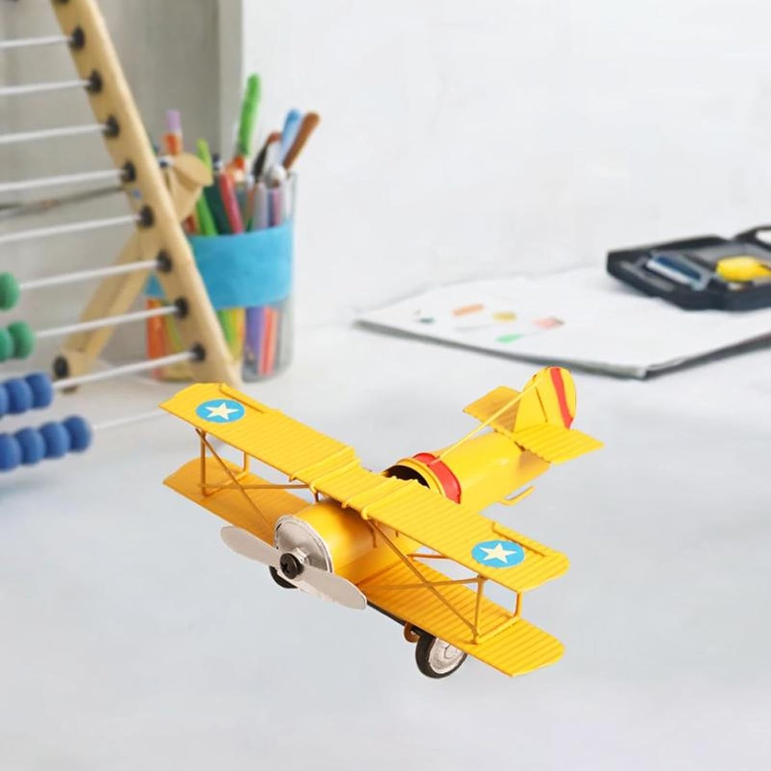 La confezione include: il pacchetto include un modello di aeroplano, per essere esposto nel tuo soggiorno o su un mobile TV come elemento creativo di arredamento per la casa Materiale: realizzato in ferro, questo modello artigianale di aeromobile garantisce durata e longevità, rendendolo un pezzo decorativo per la tua casa Collezione: Un must per aerei, questo modello è una aggiunta a qualsiasi collezione, celebrando lo spirito pionieristico della dell'aviazione Dimensioni del prodotto: con dimensioni di 16,5 cm x 13 cm x 6 cm, questo modello di aereo è dimensionato in modo da adattarsi a scaffali o vetrine senza occupare troppo spazio Modello di aeroplano fatto a mano: questo modello di aeroplano è un pezzo meticolosamente realizzato a mano, adatto agli appassionati di cimeli dell'aviazione